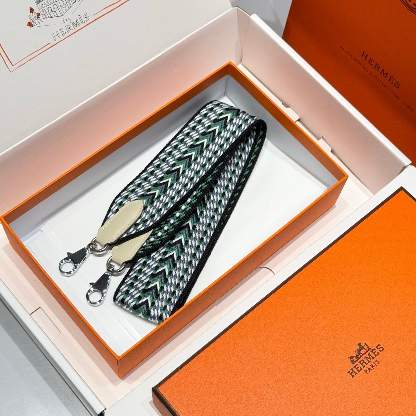 25S HERMES BAG STRAP BLACK AND GREEN PATTERN 85 IN CANVAS SILVER HARDWARE
