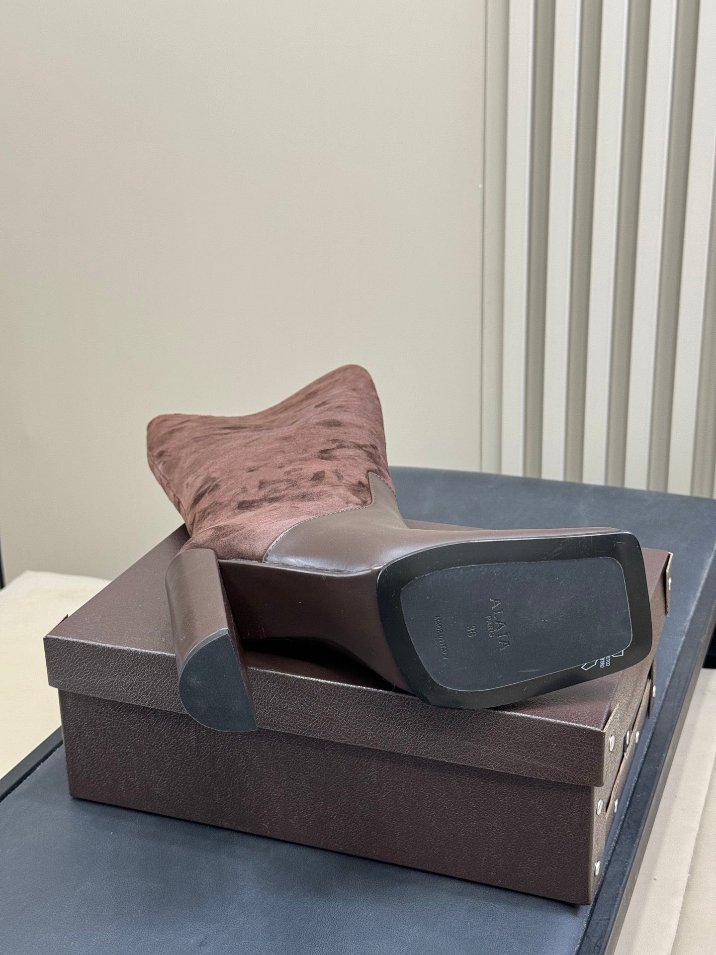 ALAIA 25S KNEE BOOTS IN BROWN CALFSKIN AND SUEDE