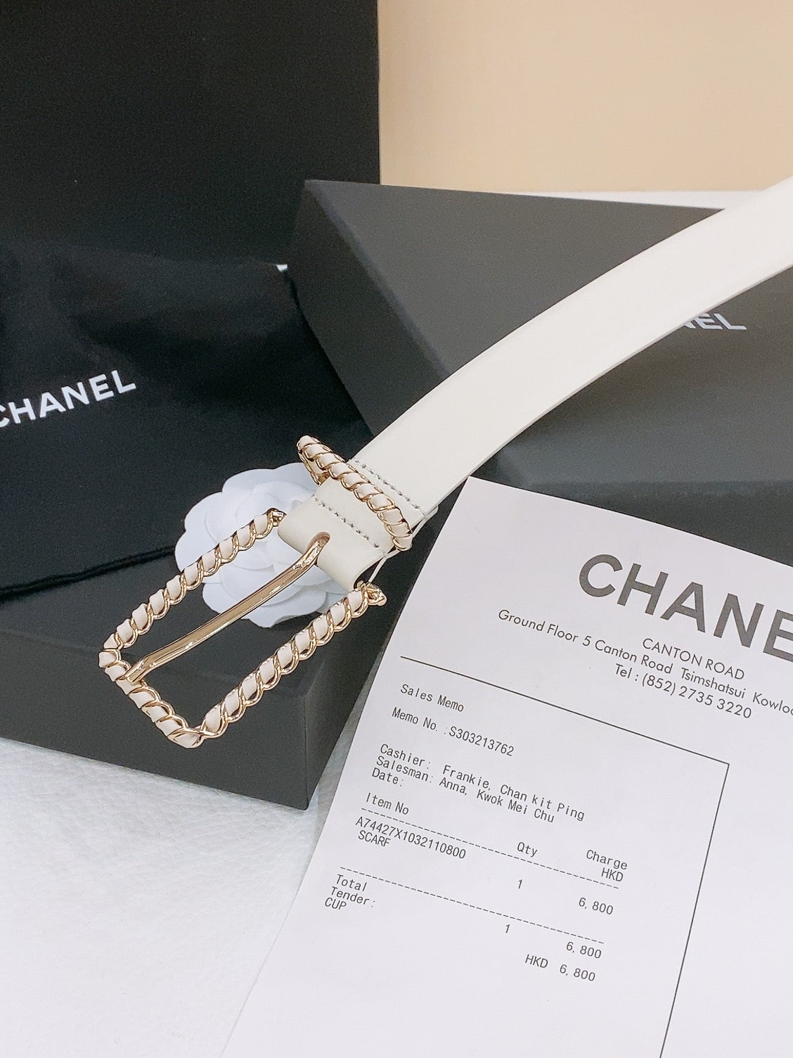 BELT 30MM IN BLACK AND WHITE CALFSKIN WITH INTERWOVEN GOLD CHAIN BUCKLE