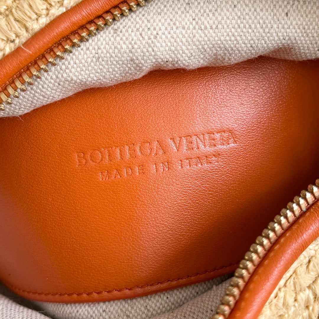 BOTTEGA VENETA 25S LOOP BAG 19 IN BURNT ORANGE RAFFIA AND CALFSKIN