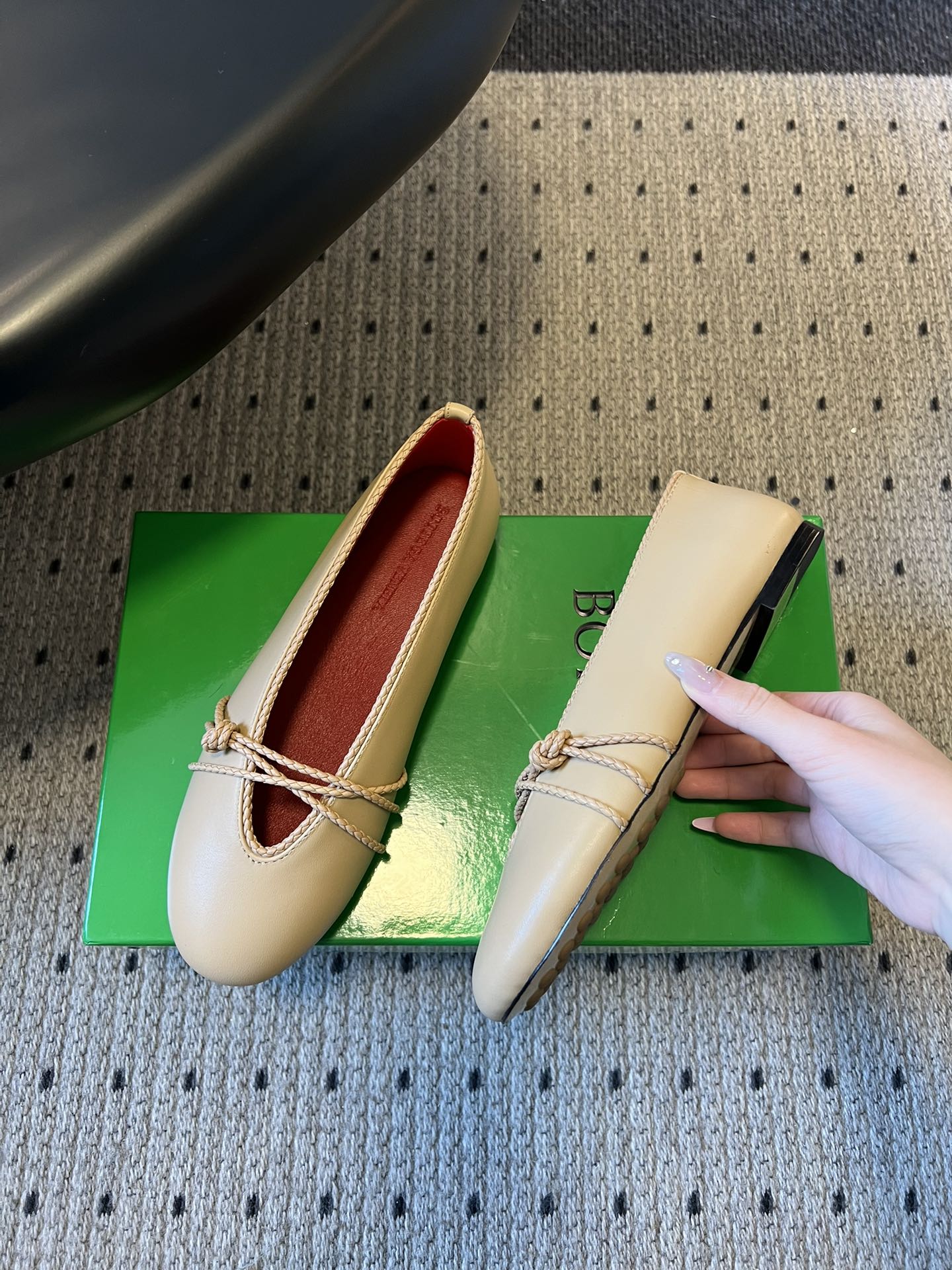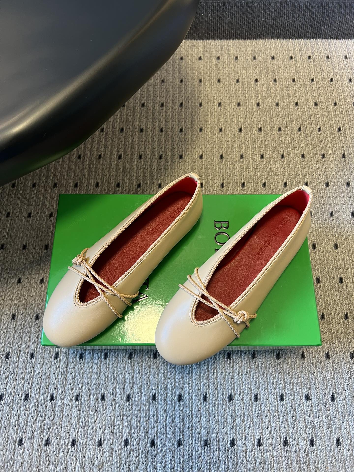 BOTTEGA VENETA 26S ESPADRILLE BALLET FLATS IN BEIGE LAMBSKIN