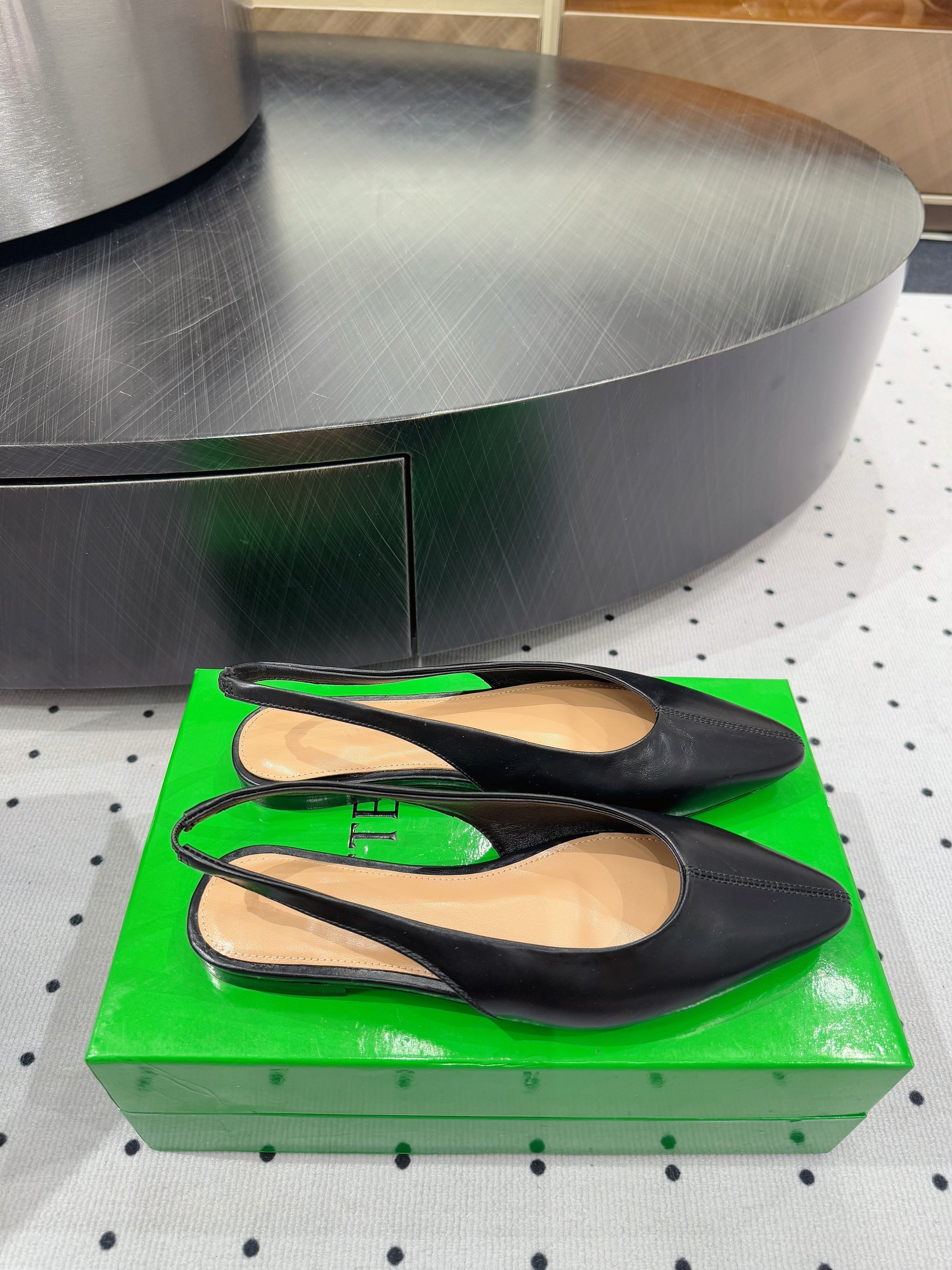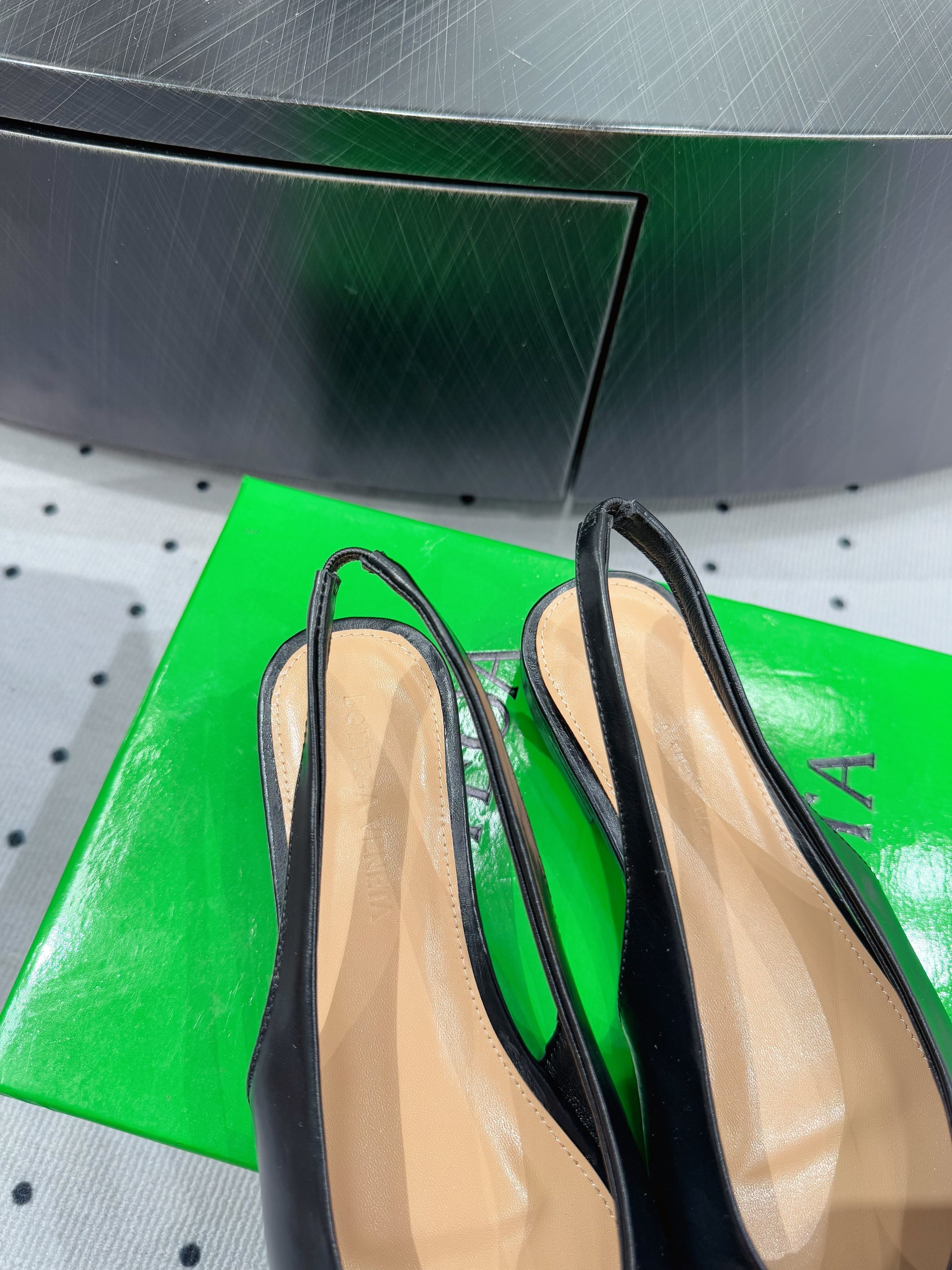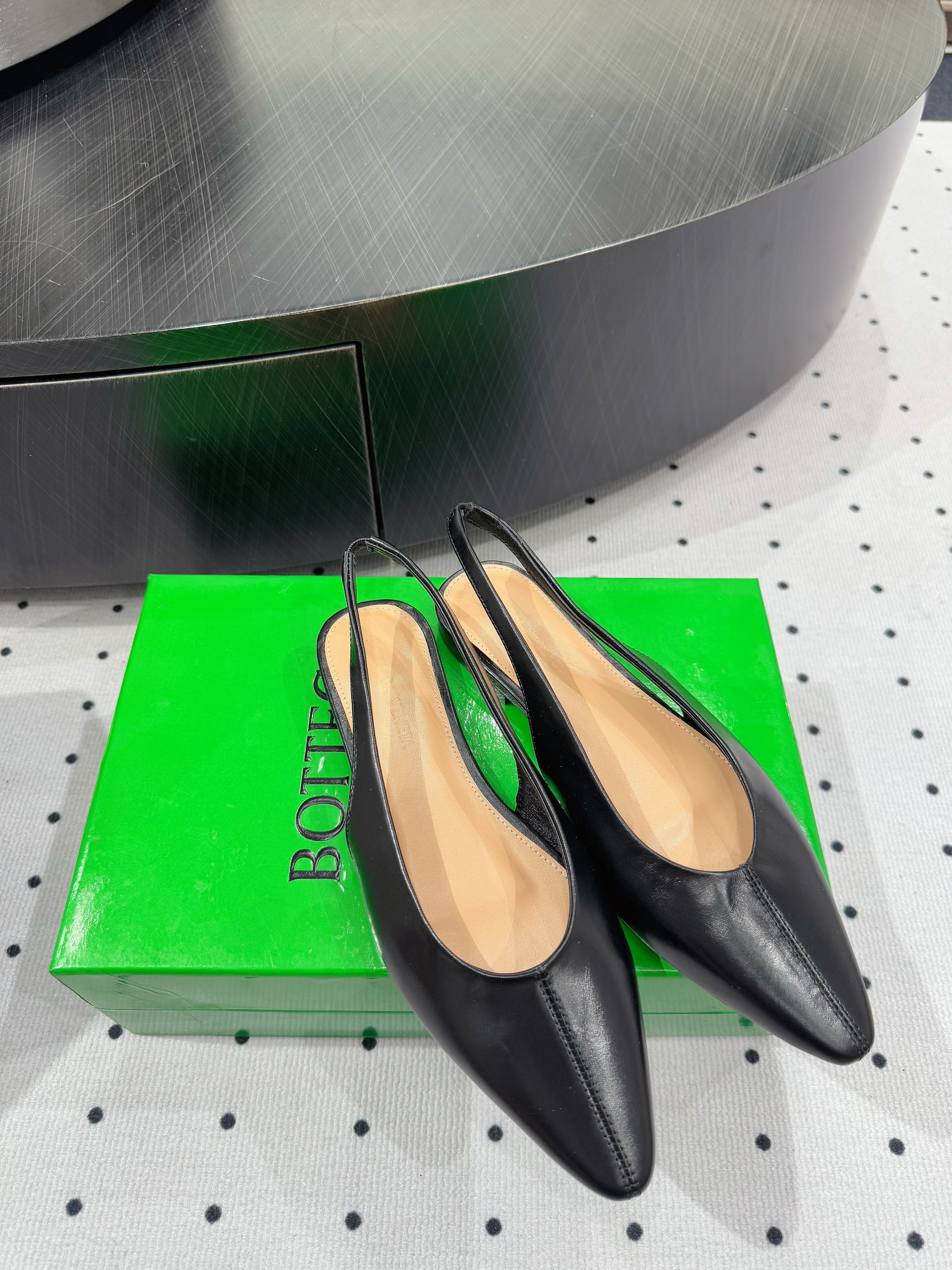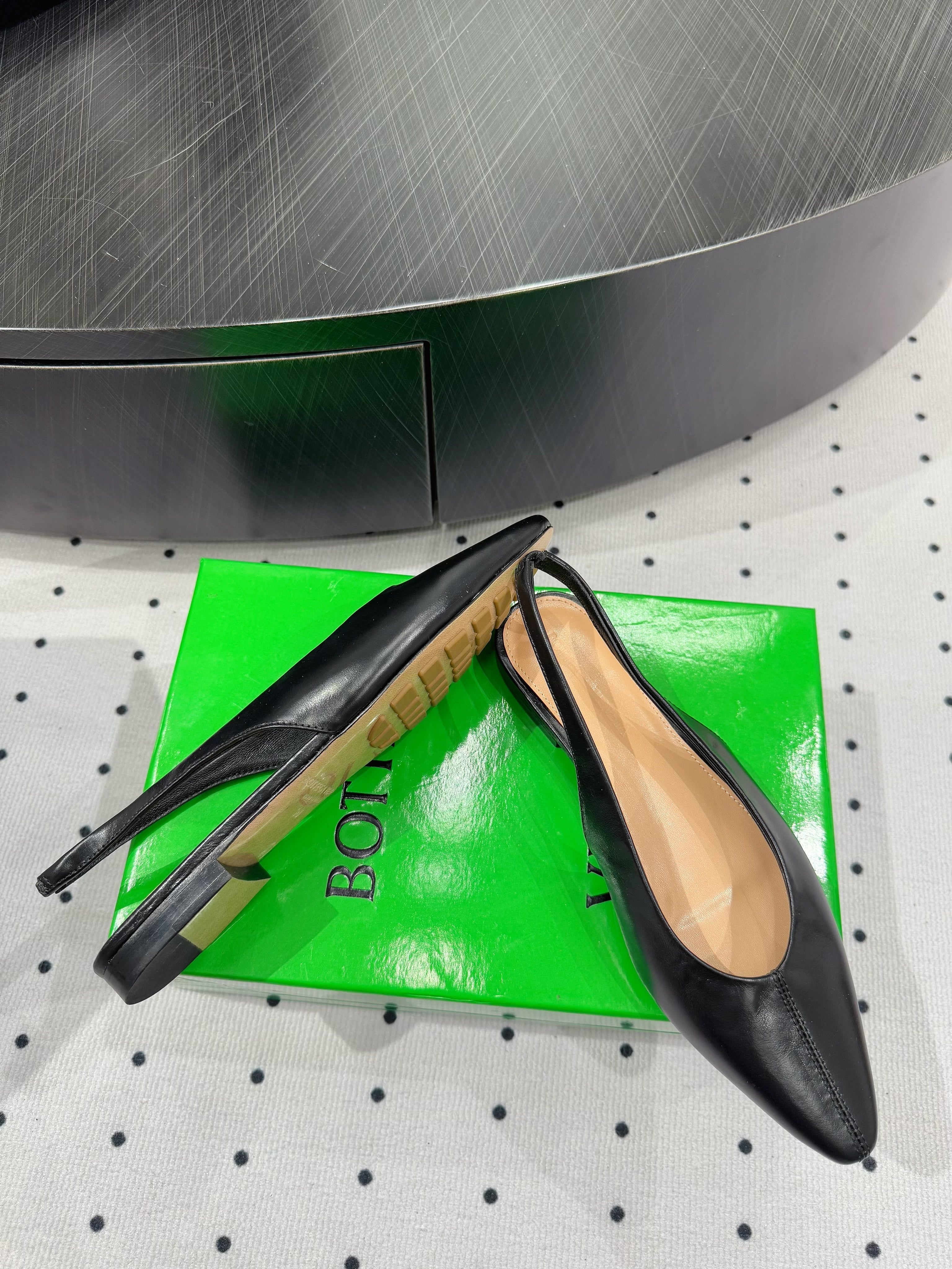 BOTTEGA VENETA 26S SLINGBACK FLATS IN BLACK CALFSKIN