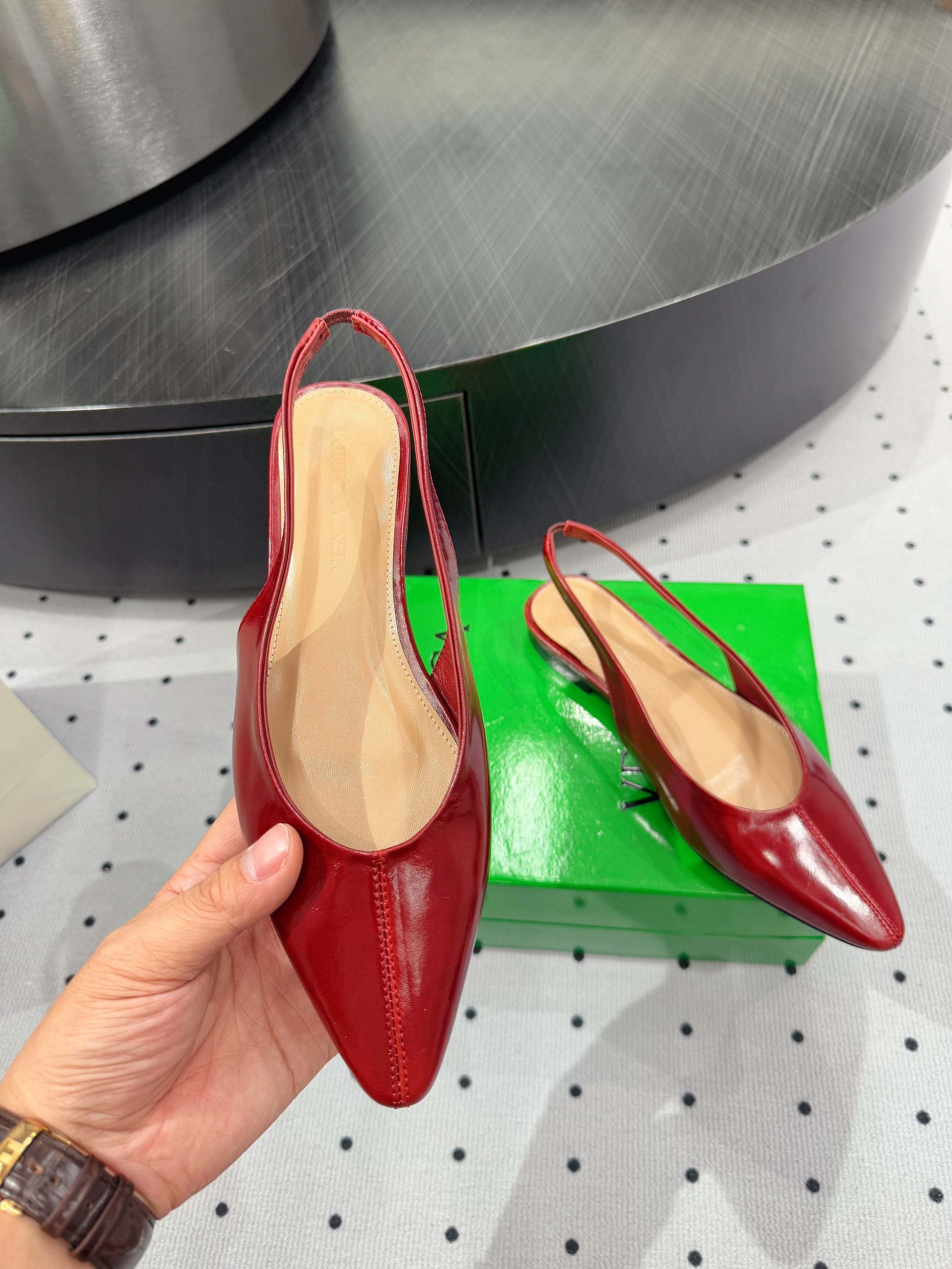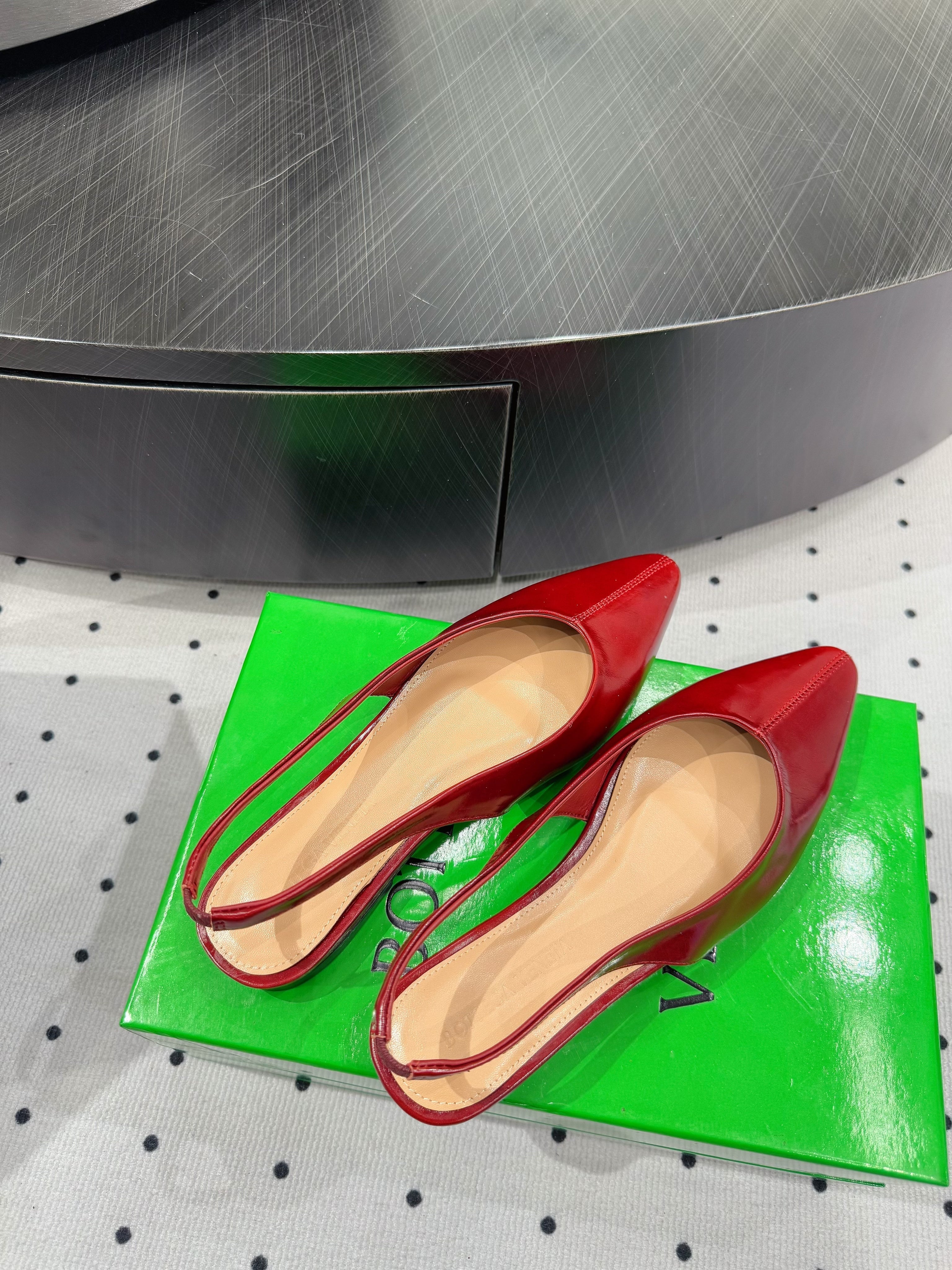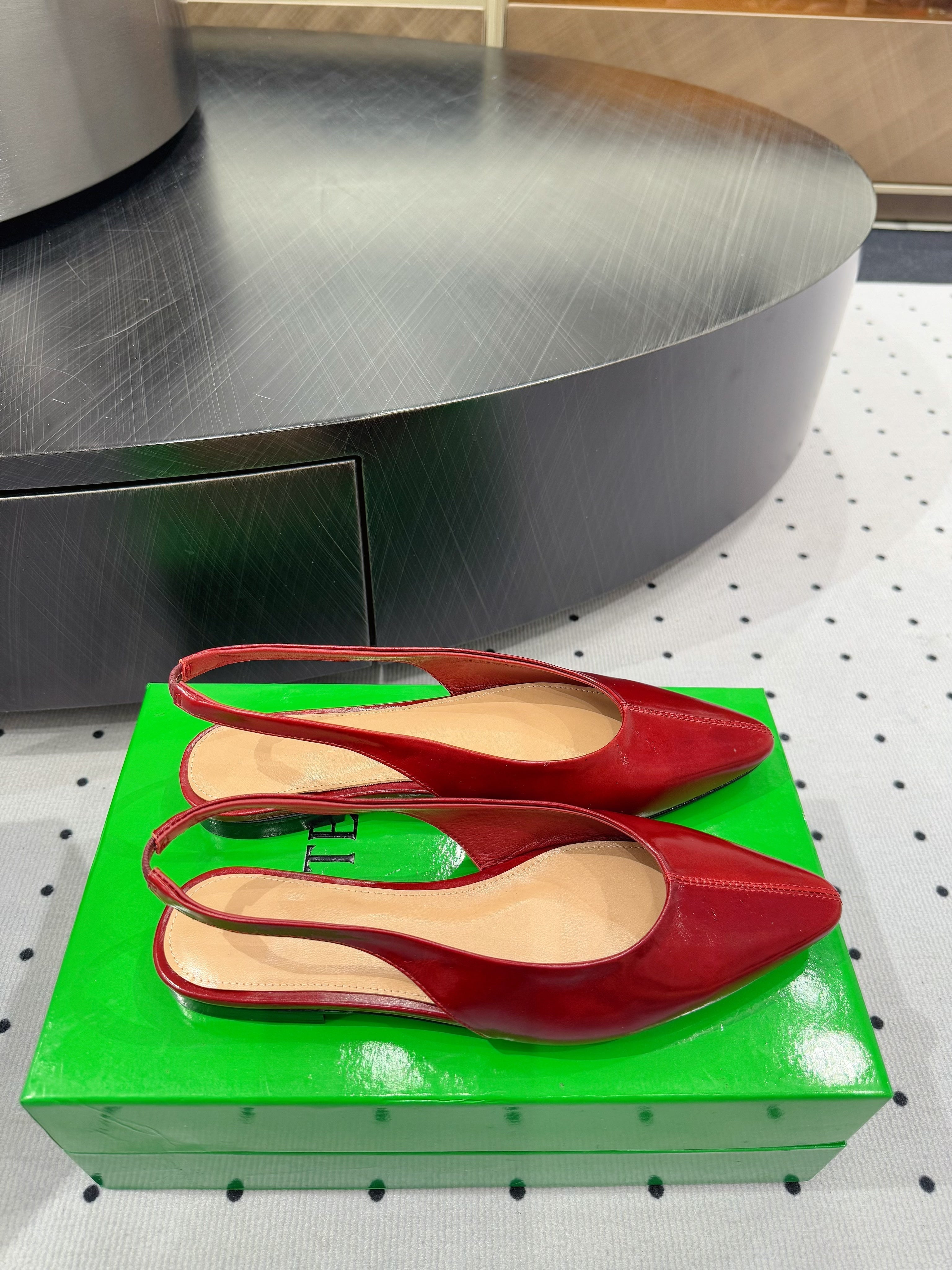 BOTTEGA VENETA 26S SLINGBACK FLATS IN RED CALFSKIN
