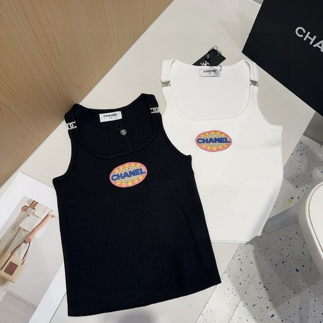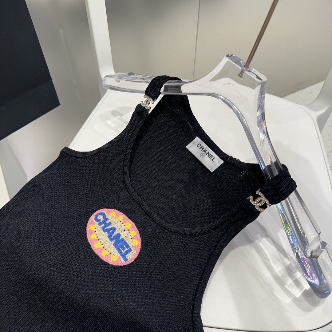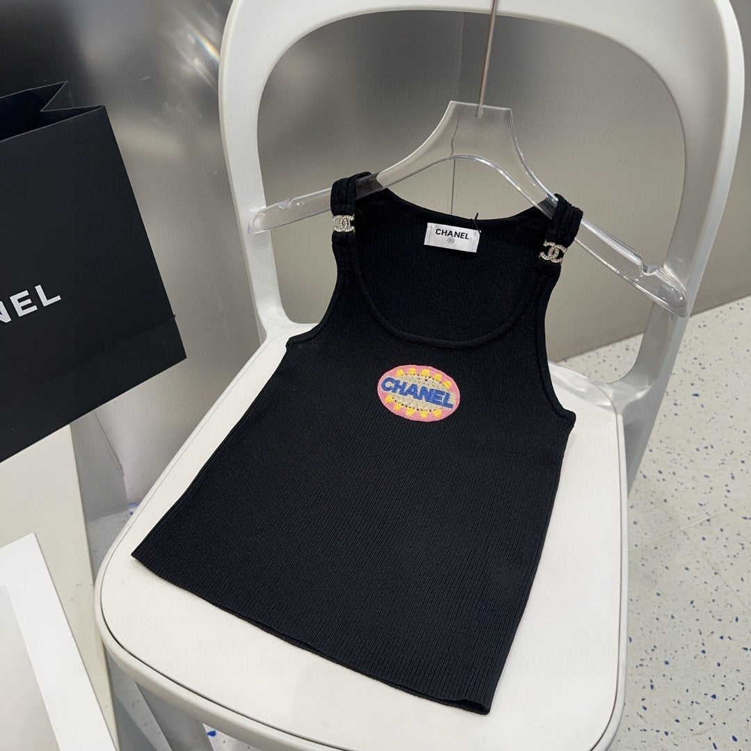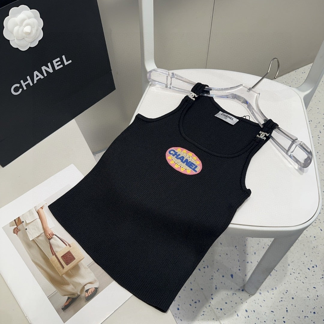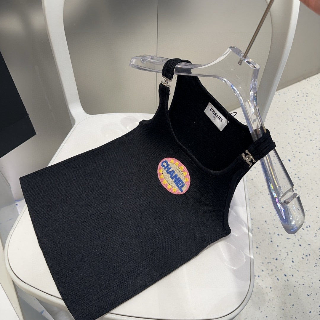 CAMISOLE 639170 IN BLACK COTTON RIBBED KNIT EMBOSSED LOGO ON STRAPS