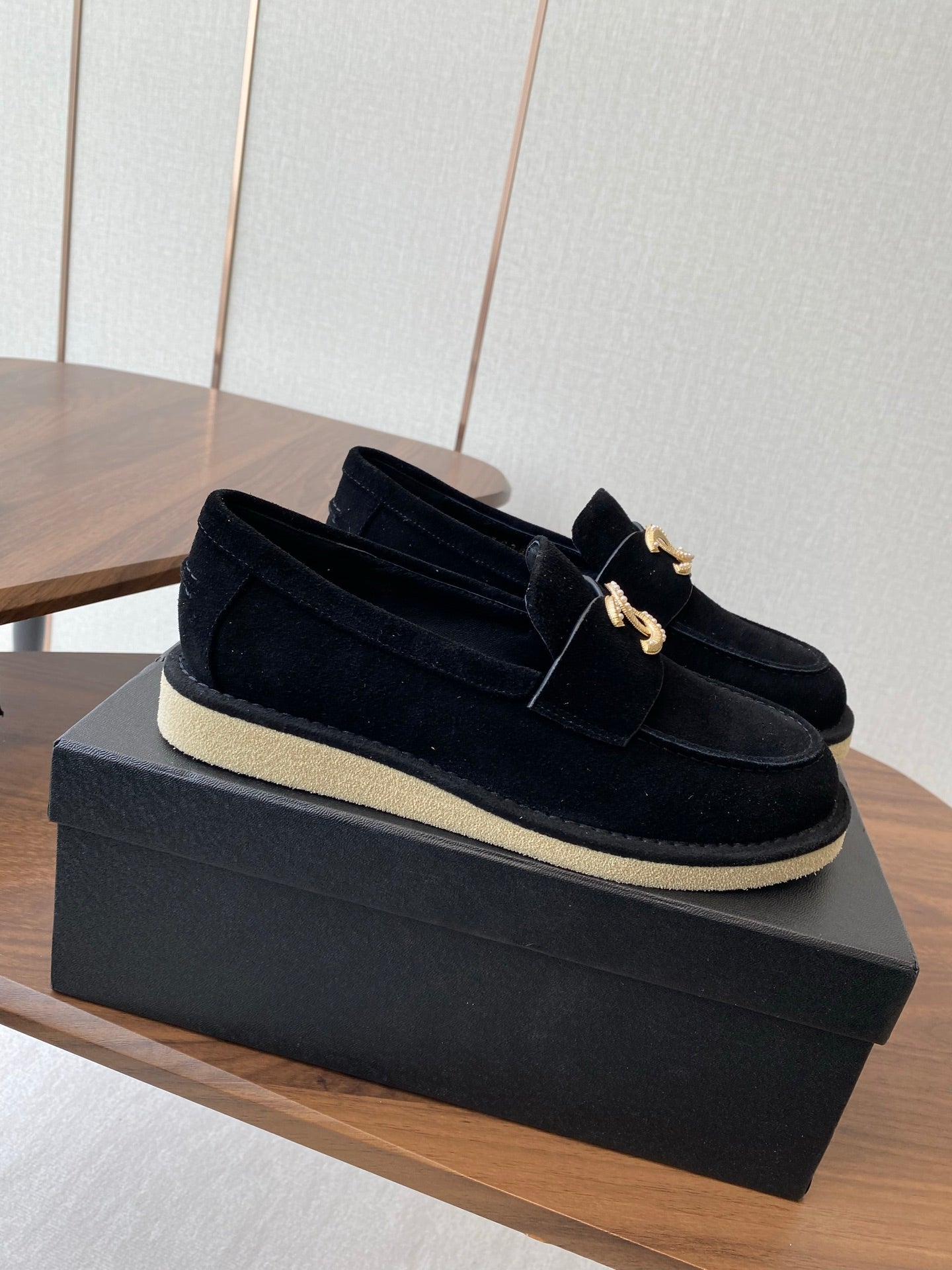 CC LOAFERS IN BLACK SUEDE GOLD HARDWARE