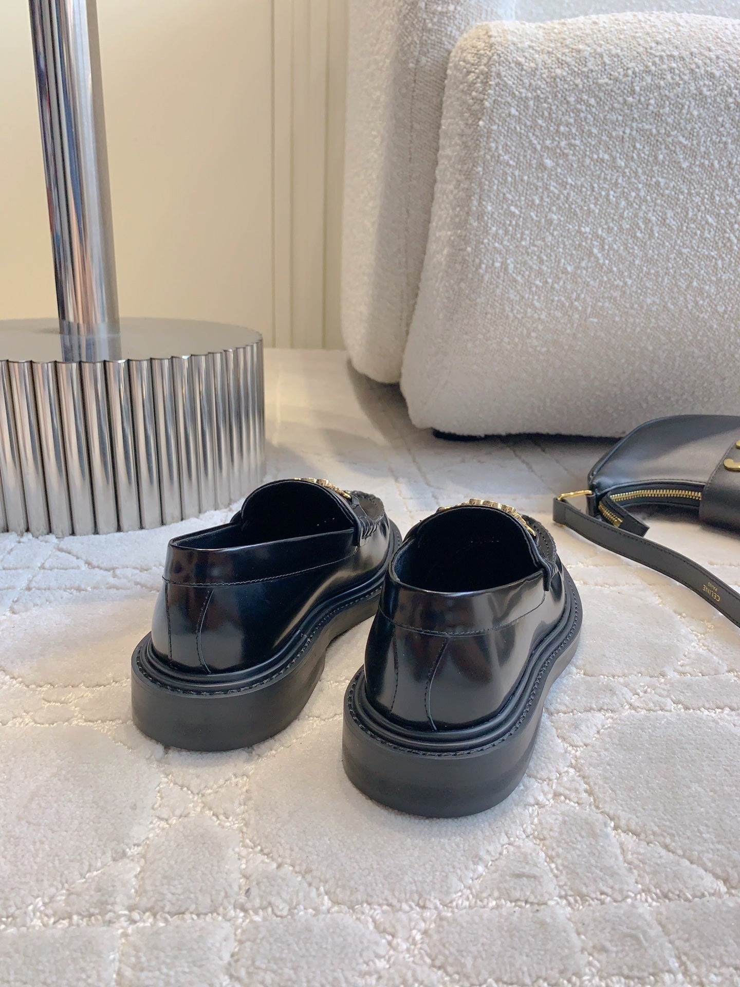 CELINE 25S ARC DE TRIOMPHE LOAFERS IN BLACK SHINY CALFSKIN GOLD HARDWARE