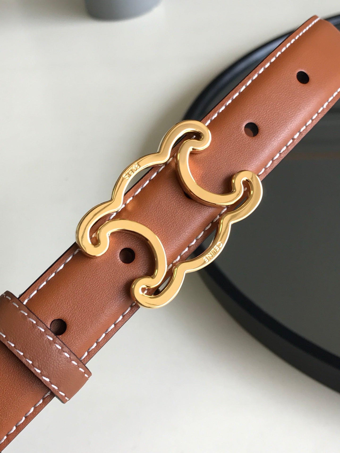 CELINE 25S BELT TRIOMPHE 25MM IN BROWN CALFSKIN 559676