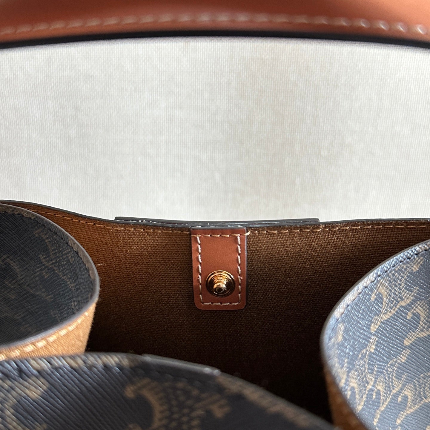 CELINE 25S CUBE BAG 18MM IN BLACK TRIOMPHE CANVAS AND DARK BORWN CALFSKIN