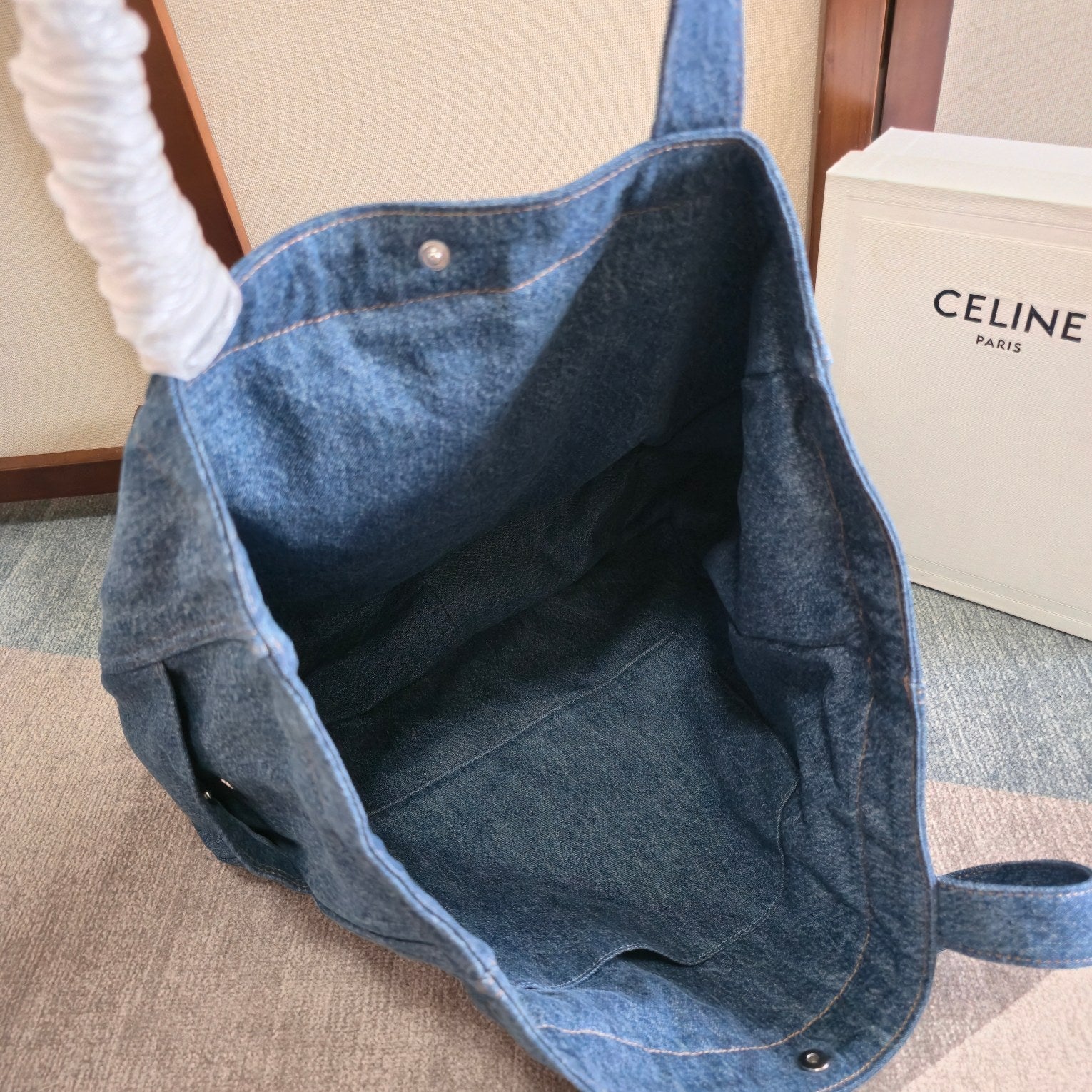 CELINE 25S DENIM CABAS BAG 50MM IN BLUE CANVAS