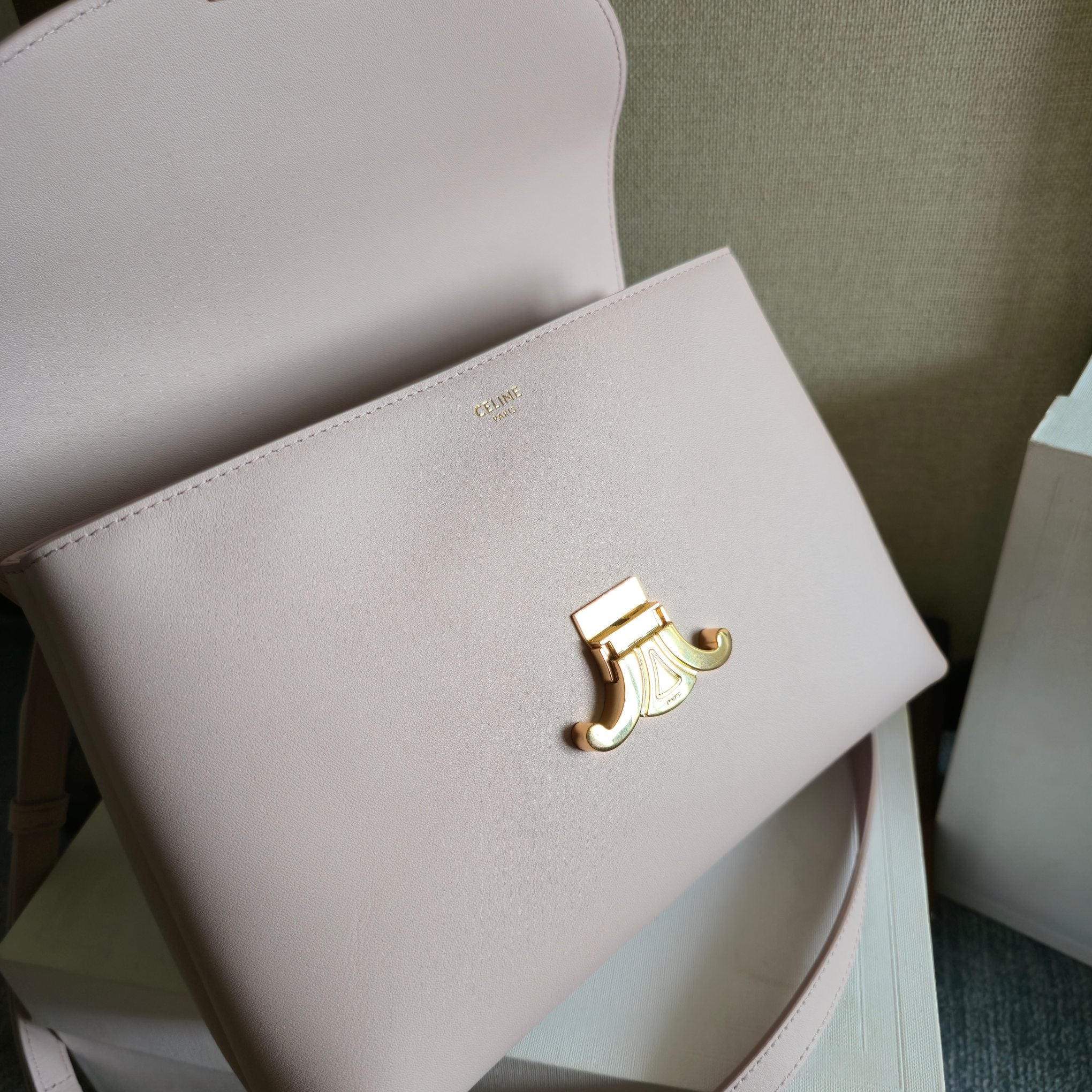 CELINE 25S MEDIUM NINO BAG 25MM IN LIGHT PINK CALFSKIN GOLD HARDWARE