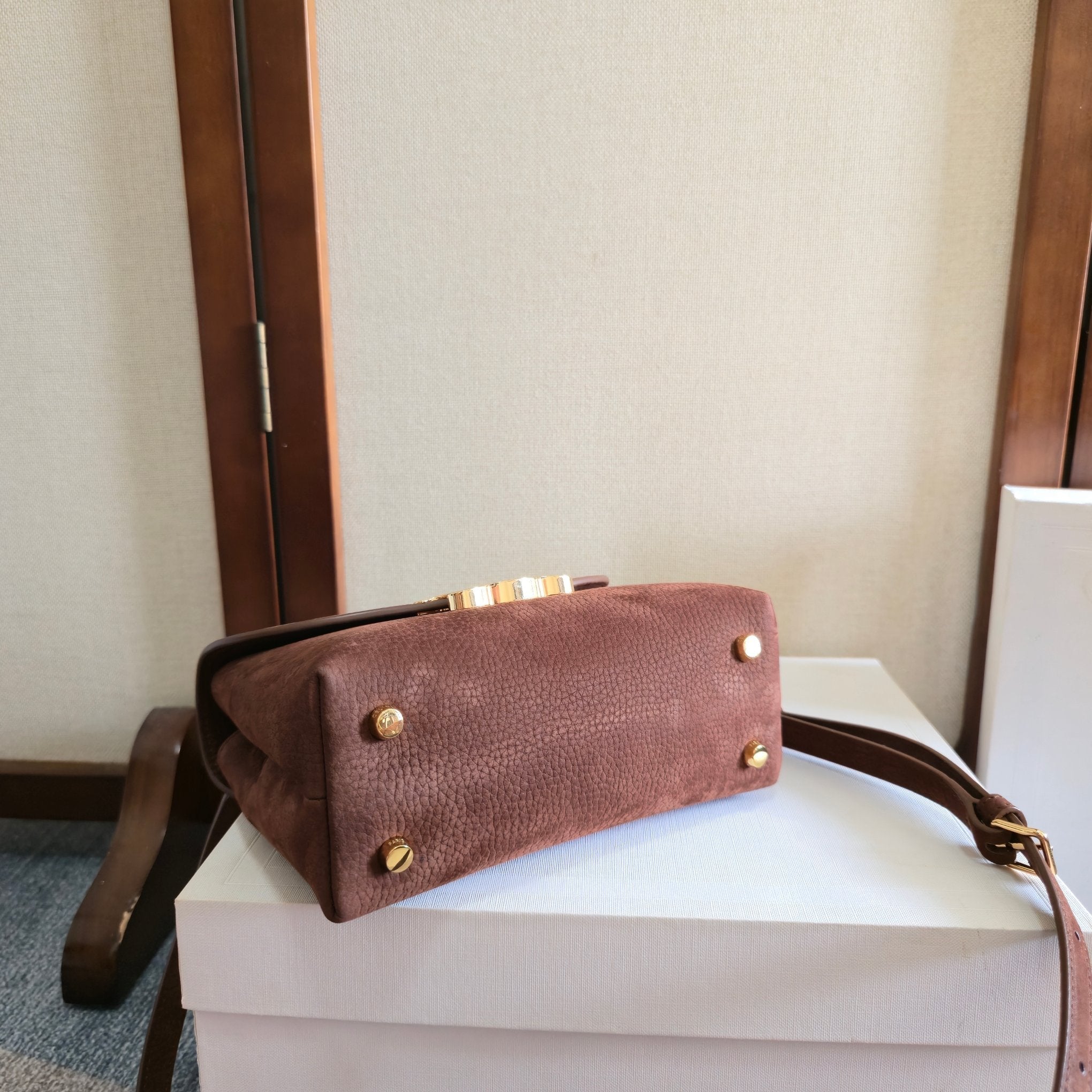 CELINE 25S NINO BAG 20MM IN DARK BROWN GRAINED CALFSKIN GOLD HARDWARE