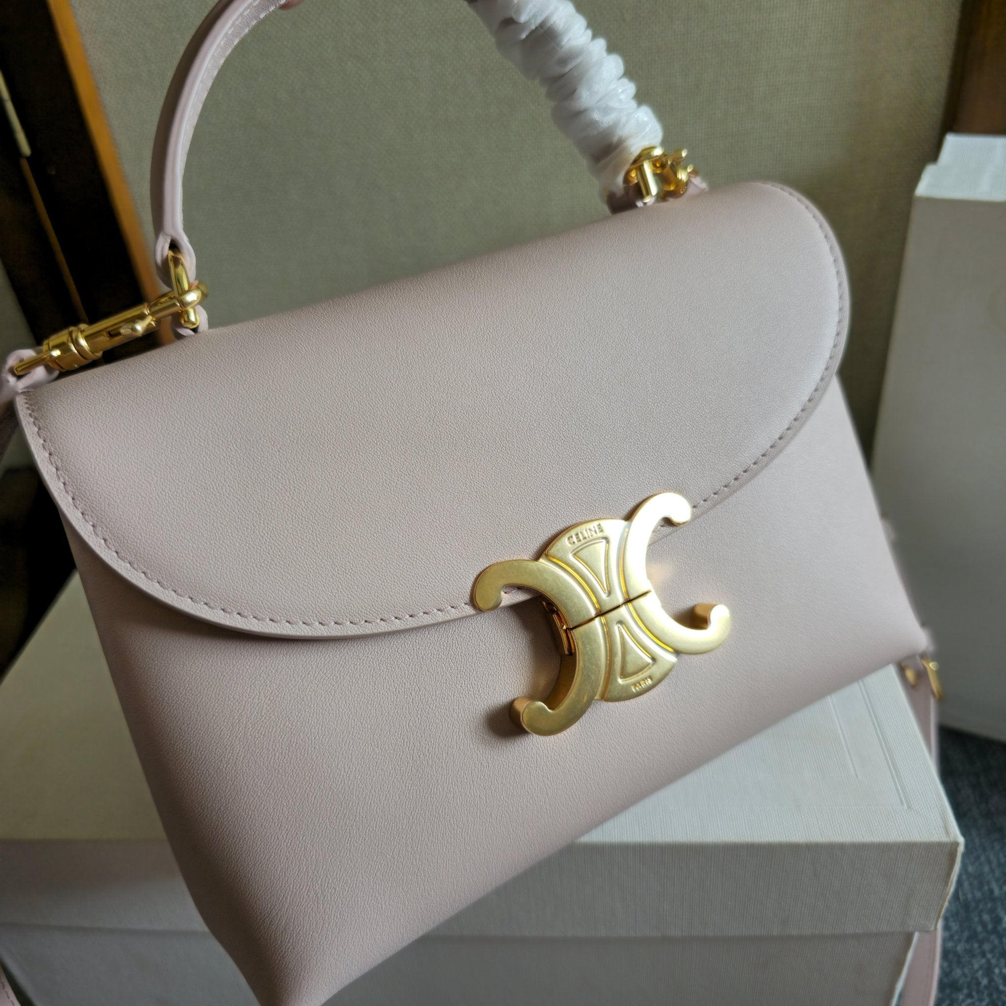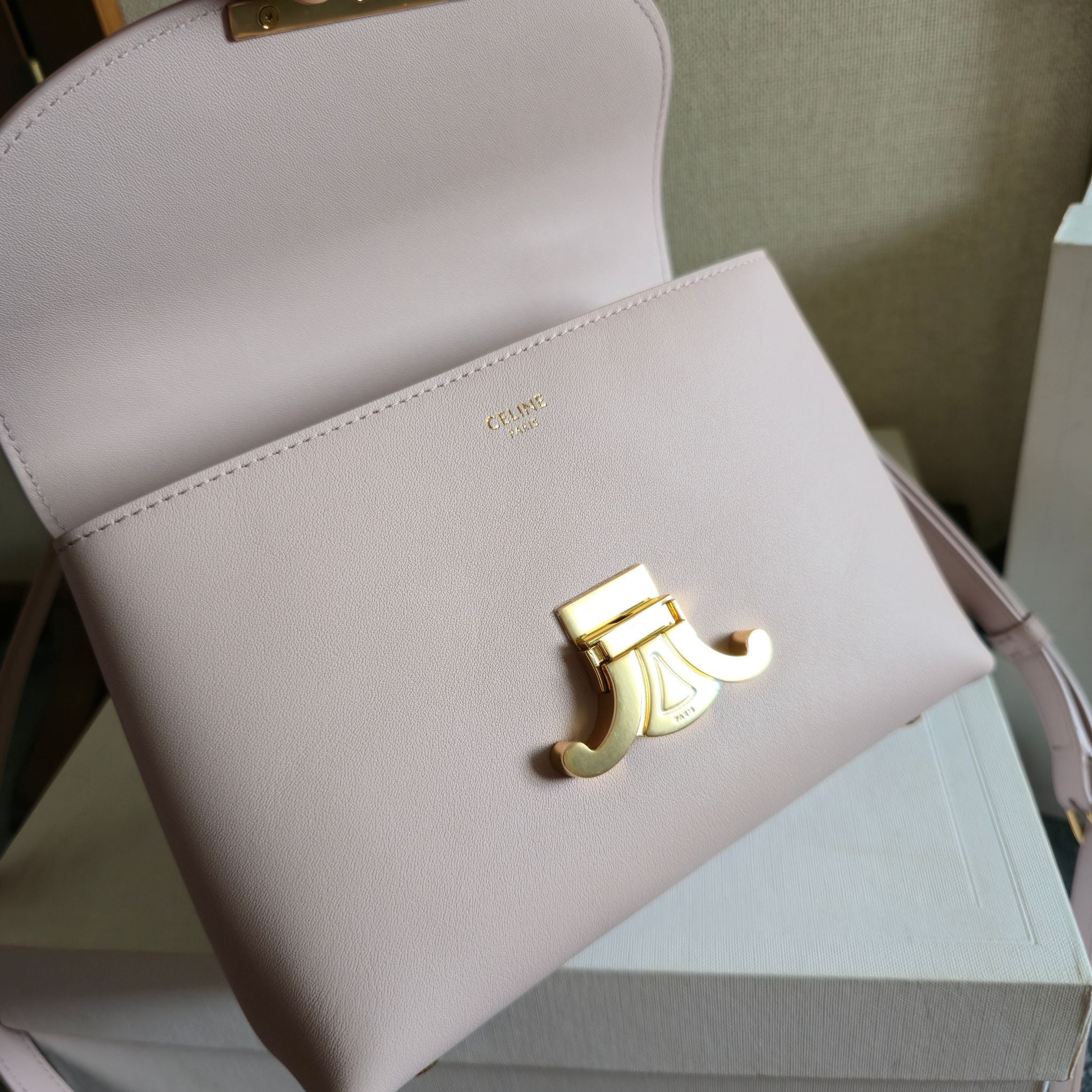 CELINE 25S NINO BAG 20MM IN LIGHT PINK GRAINED CALFSKIN GOLD HARDWARE