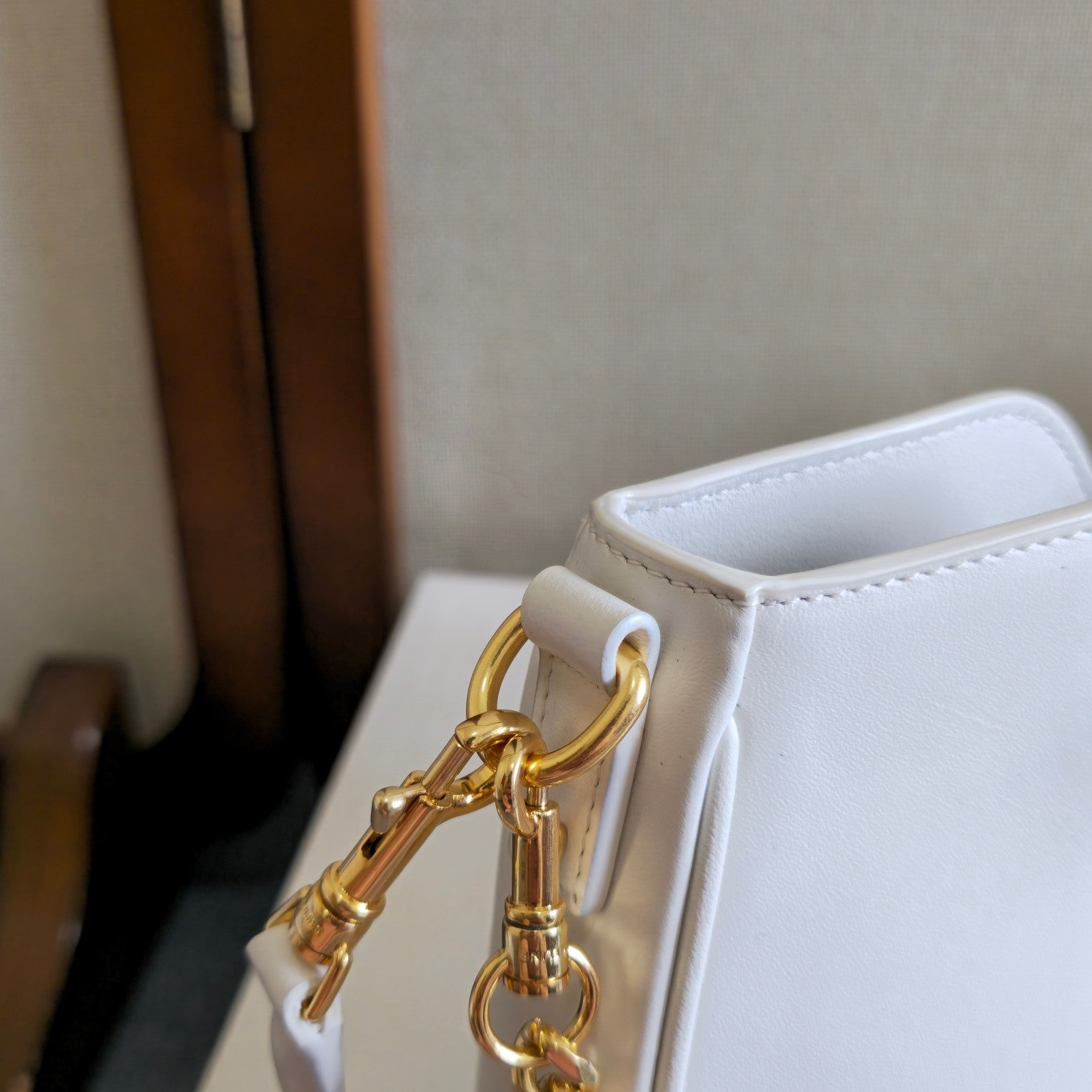 CELINE 25S SHOULDER CAMILLE 16 SOFT 27MM IN WHITE CALFSKIN GOLD HARDWARE