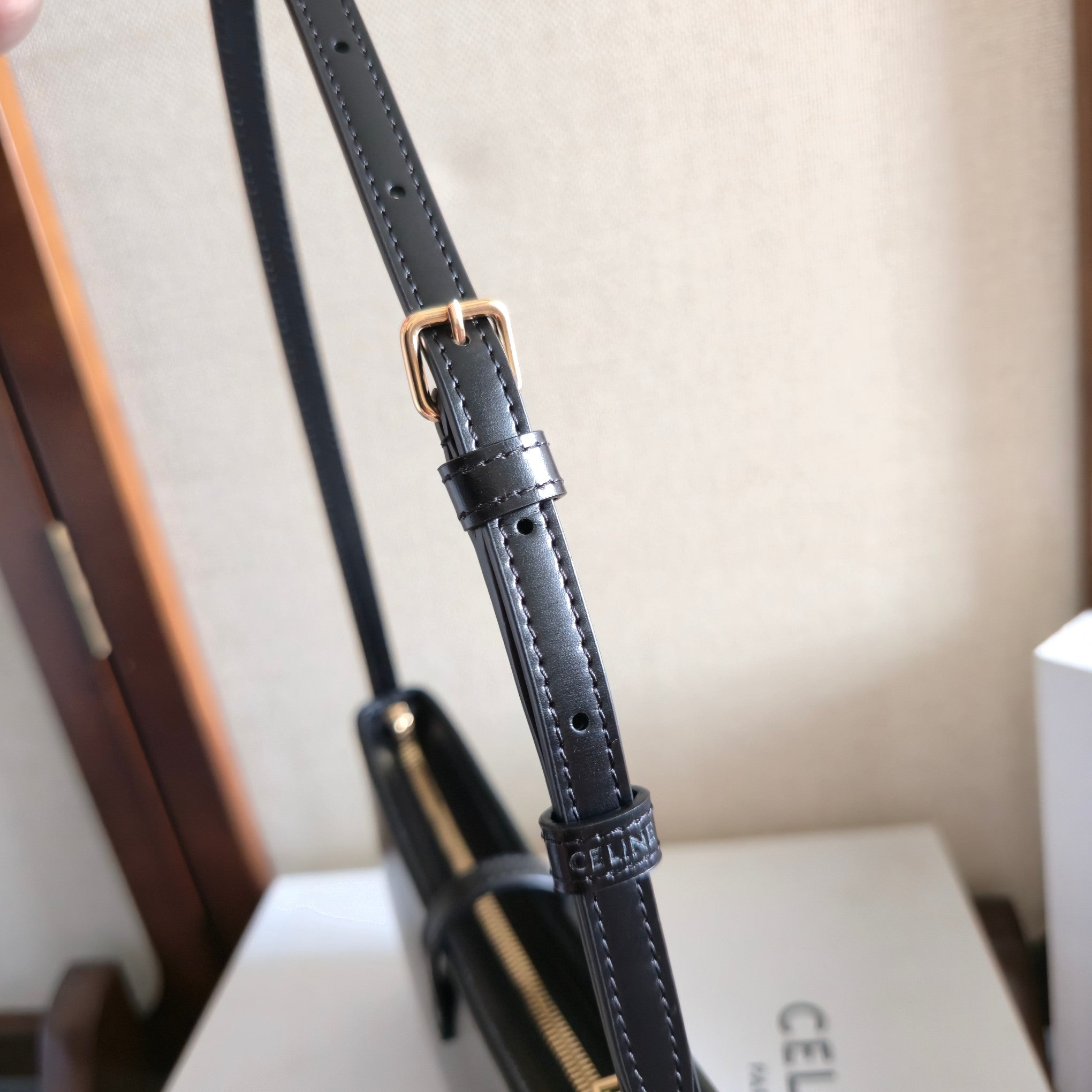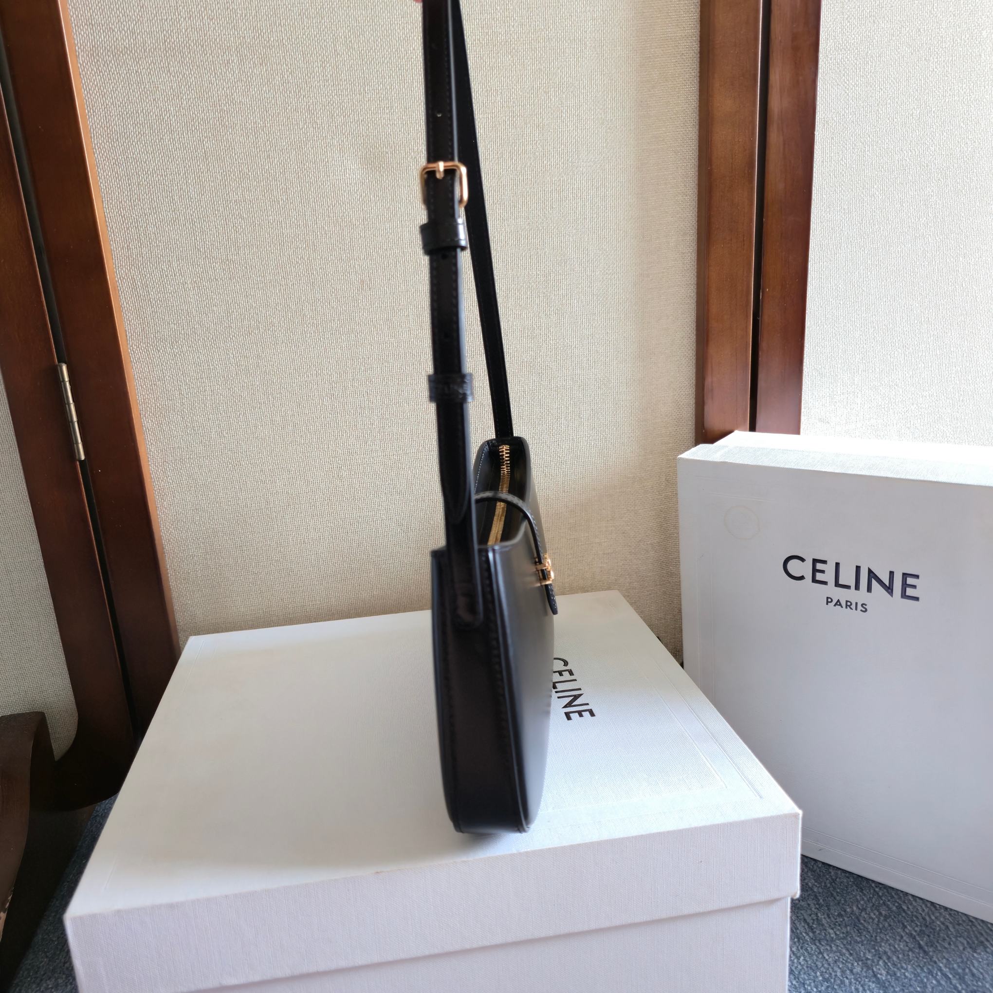 CELINE 25S TINA SHOULDER BAG 25MM IN BLACK CALFSKIN GOLD HARDWARE