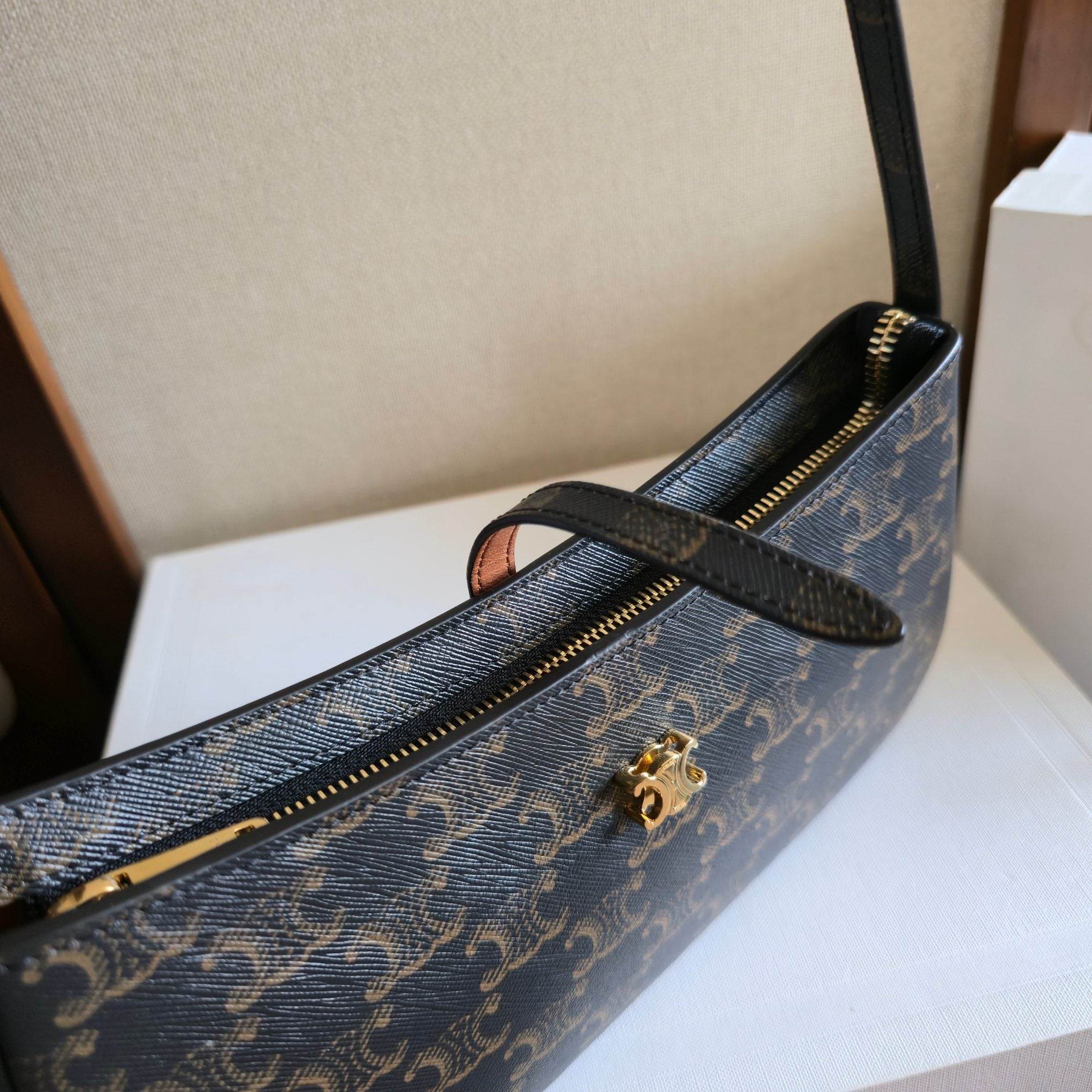 CELINE 25S TINA SHOULDER BAG 25MM IN BLACK TRIOMPHE CALFSKIN