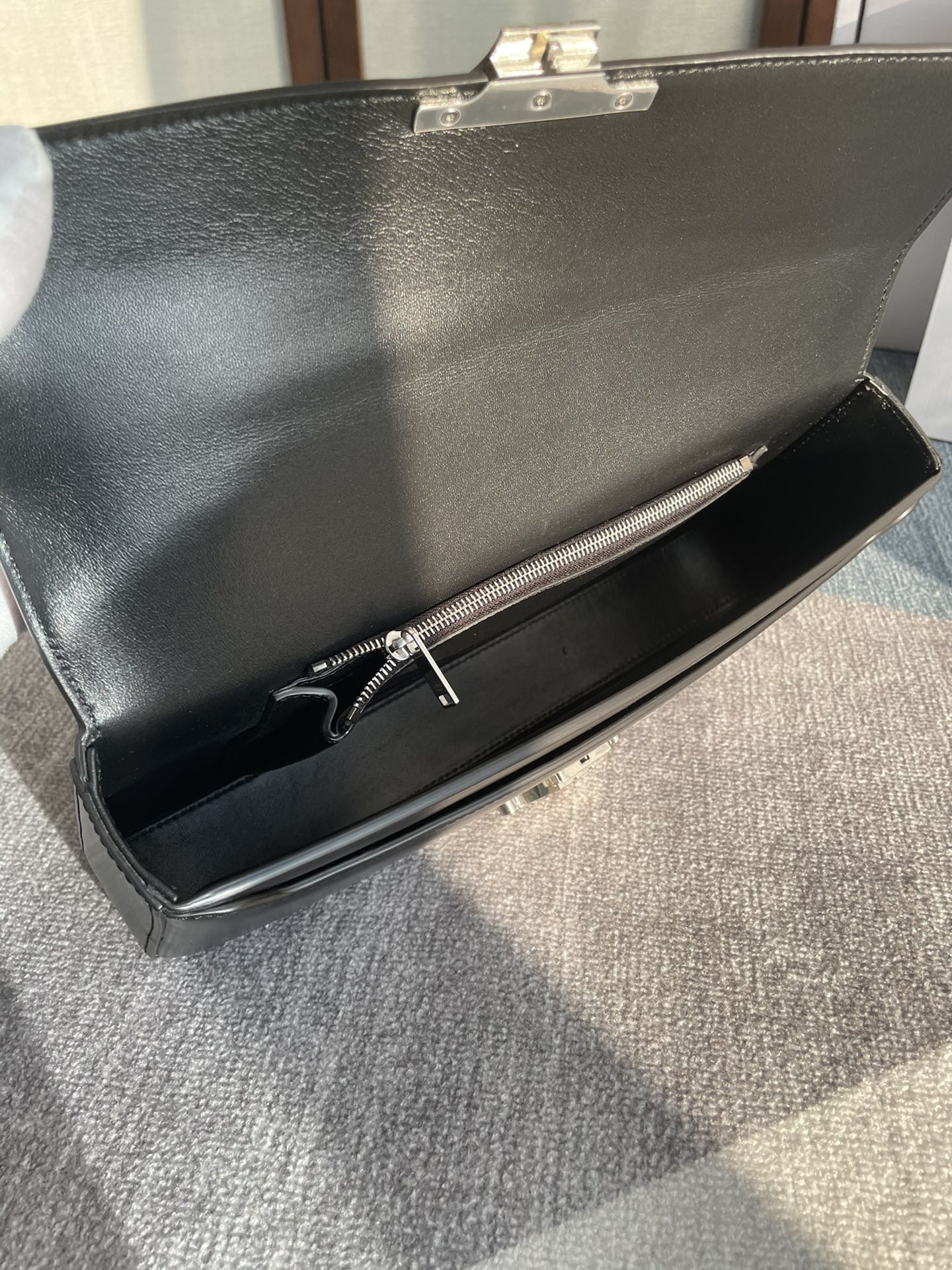 CHAIN SHOULDER BAG CLAUDE 33 IN BLACK CALFSKIN SILVER HARDWARE