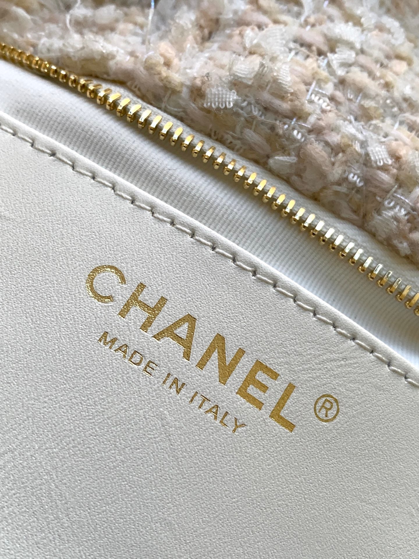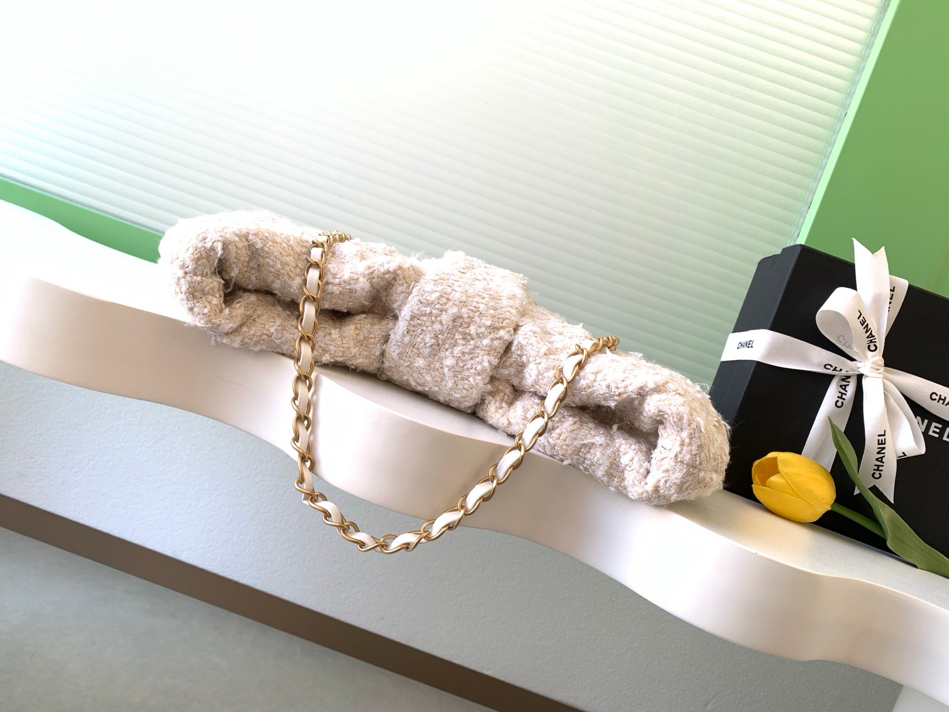 CHANEL 25S BOW BAG 38 IN CREAM WHITE TWEED WITH GOLD HARDWARE