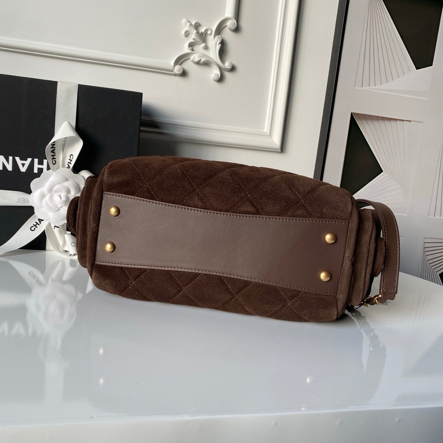 CHANEL 25S BOWLING BAG 24 IN DARK BROWN SUEDE GOLD HARDWARE