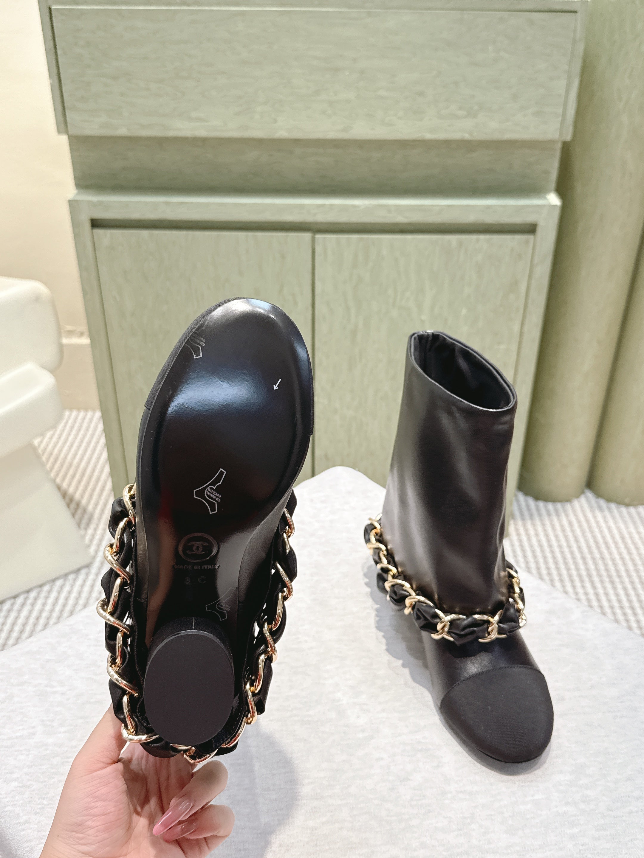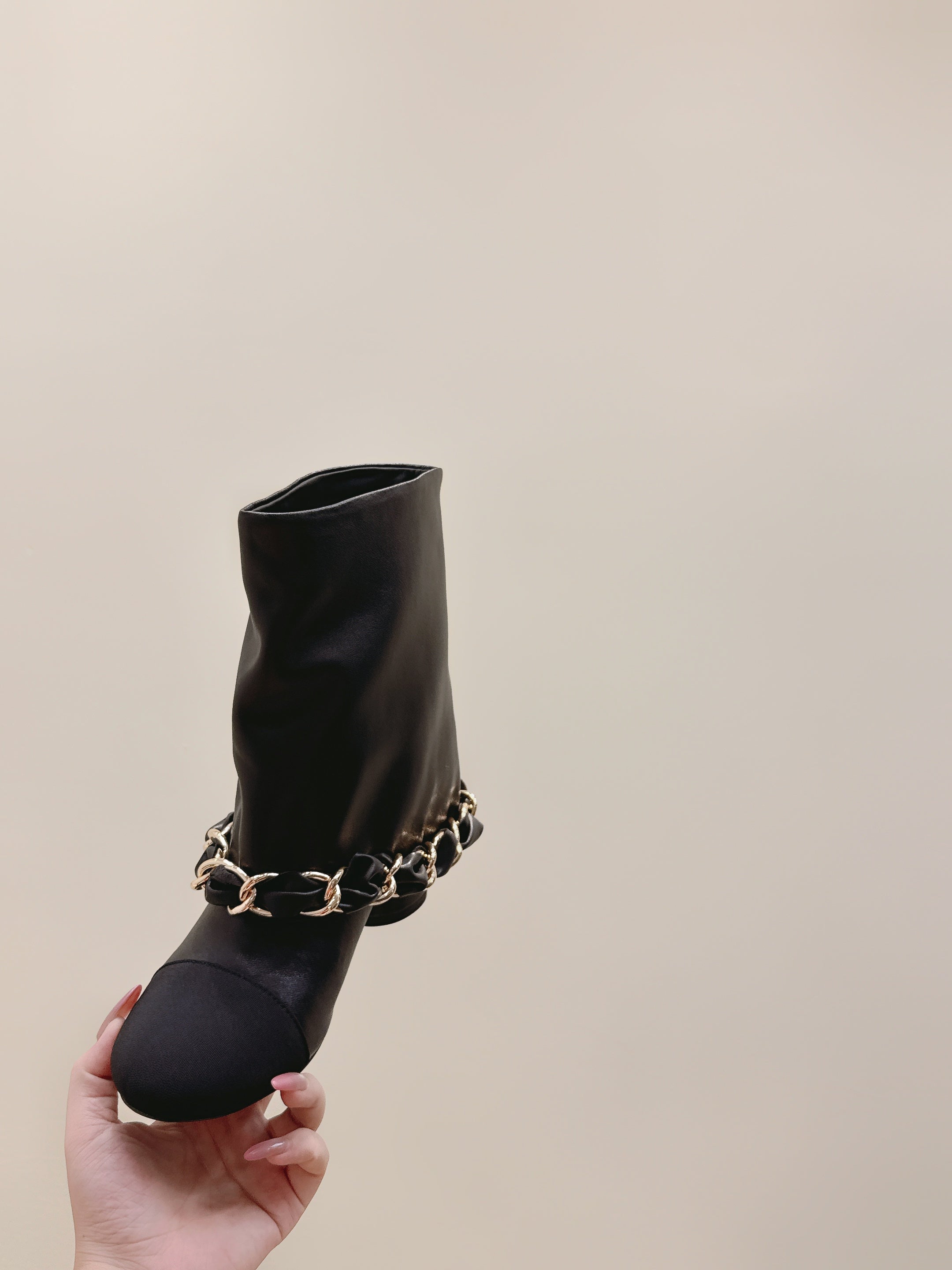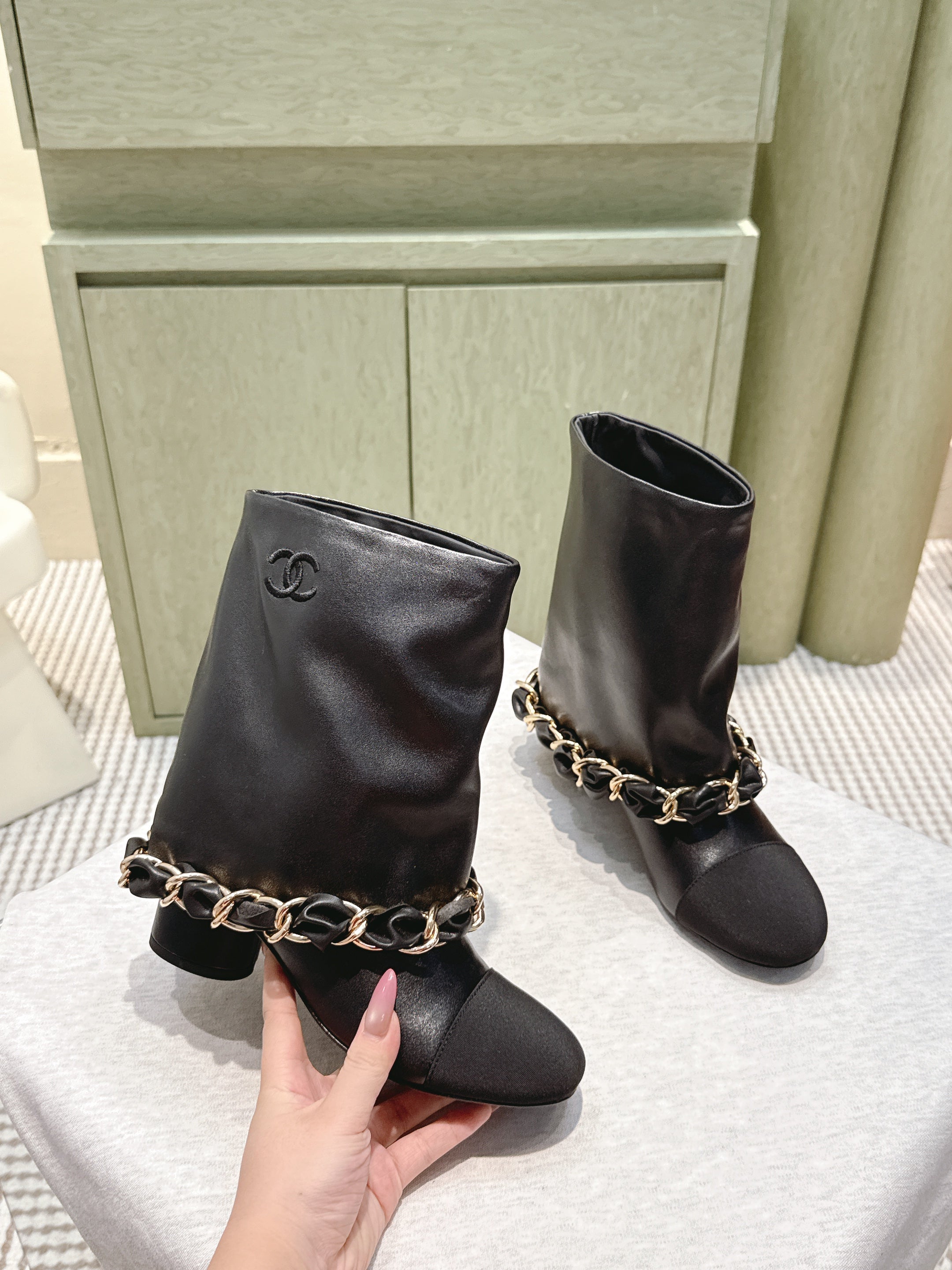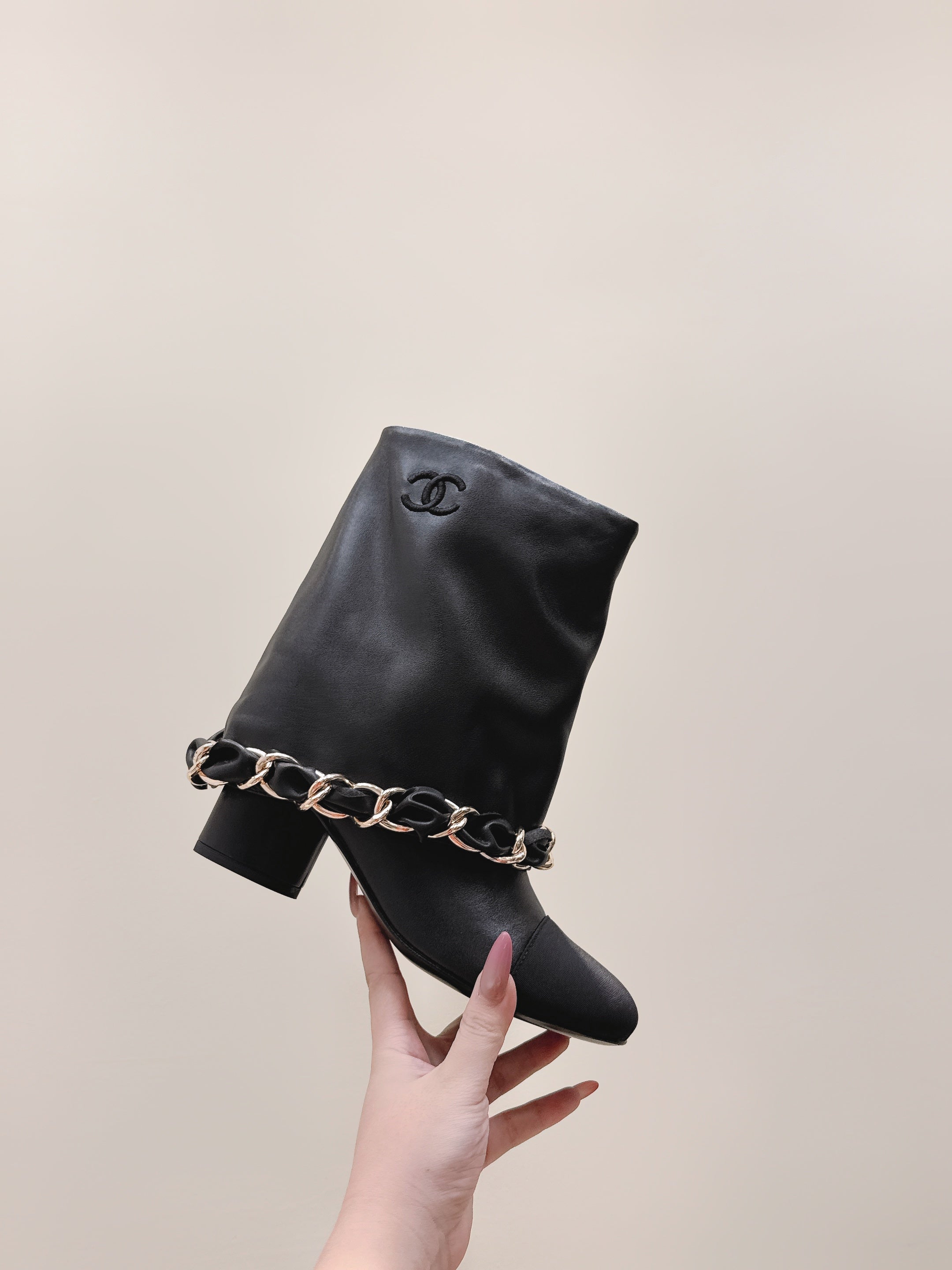 CHANEL 25S CALF-LENGTH BOOTS 45MM IN BLACK CALFSKIN GOLD HARDWARE