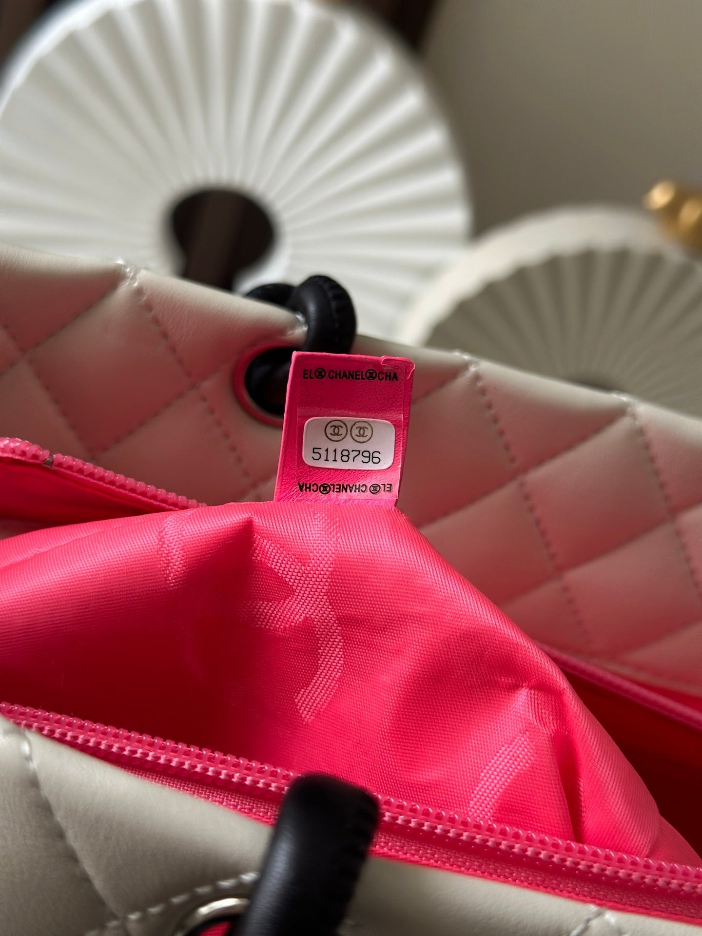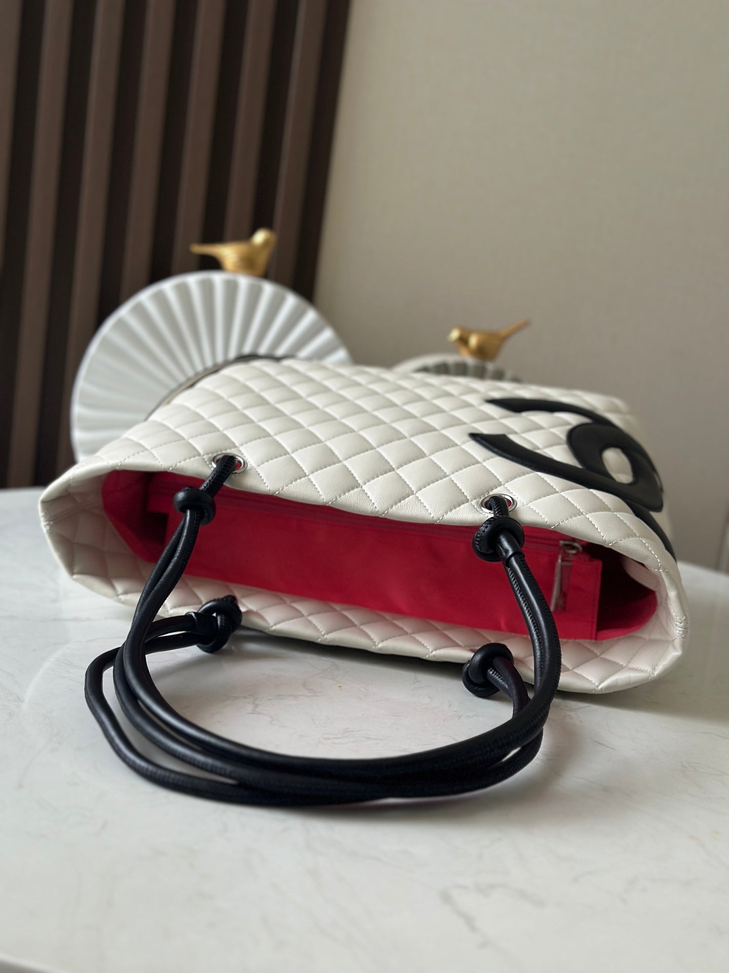 CHANEL 25S CAMBON LIGNE TOTE BAG 30 IN WHITE MIX BLACK CALFSKIN