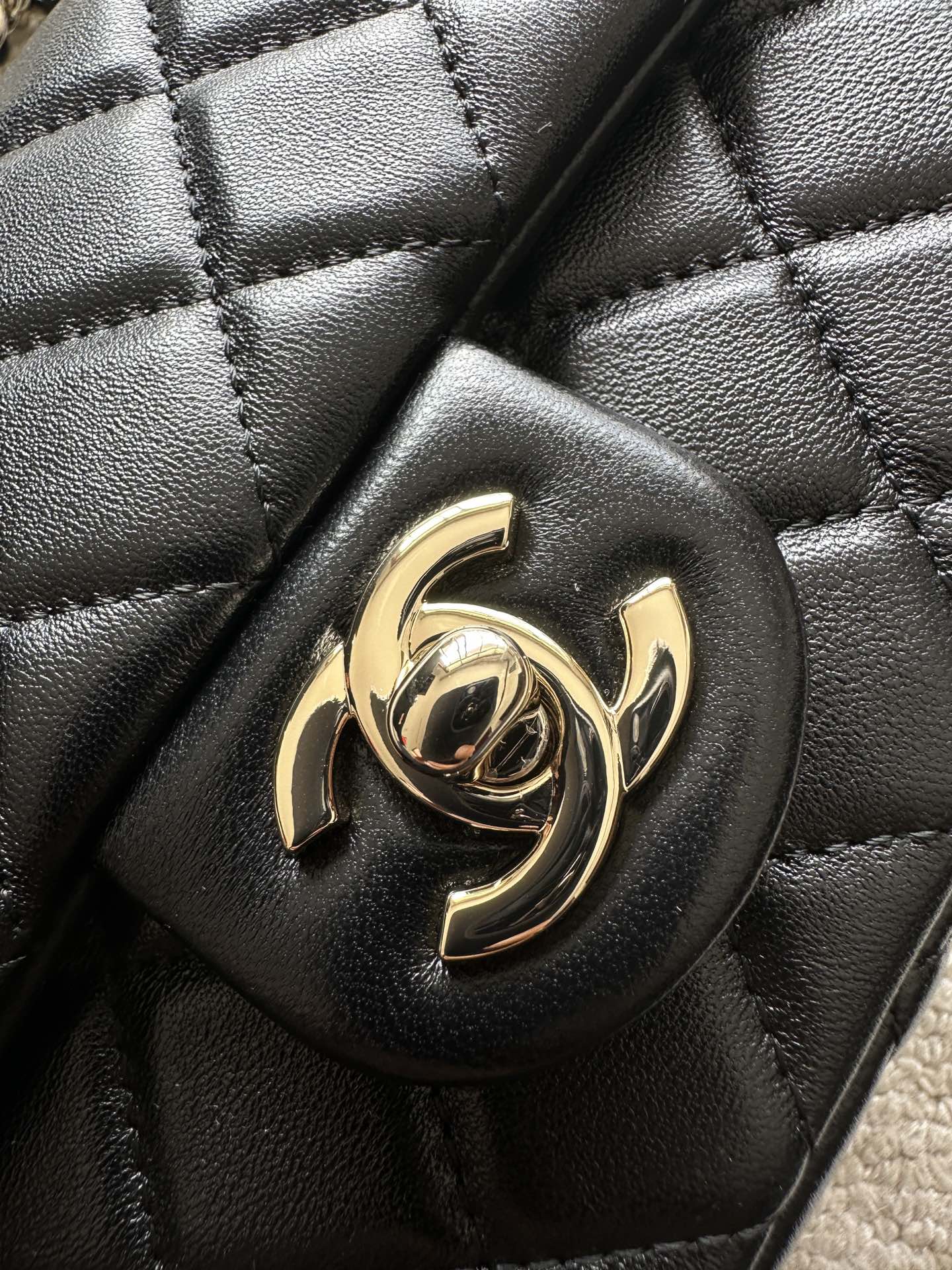 CHANEL 25S CLASSIC FLAP BAG MINI 20 IN BLACK LAMBSKIN WITH GOLD HARDWARE