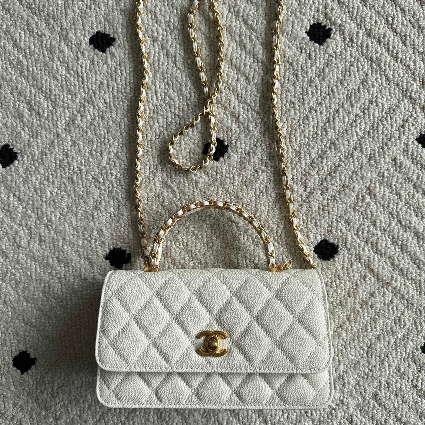 CHANEL 25S CLASSIC WALLET ON CHAIN 19 IN WHITE LAMBSKIN WITH GOLD HARDWARE