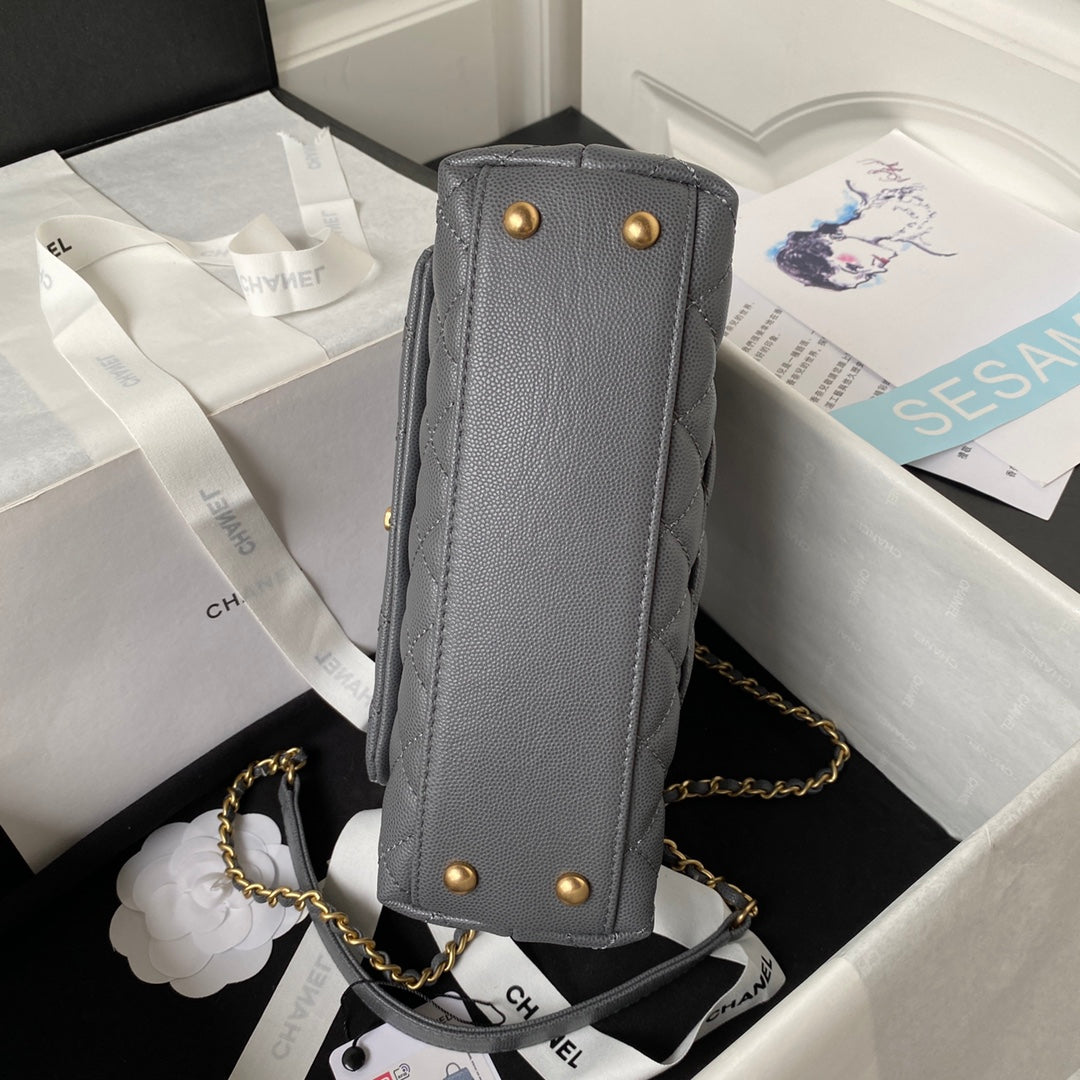 CHANEL 25S COCO HANDLE BAG 23 IN DARK GREY CAVIAR WITH GOLD HARDWARE