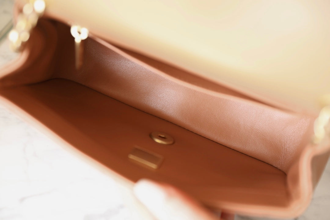 CHANEL 25S FLAP BAG 20 CM IN LIGHT BROWN LAMBSKIN WITH GOLD HARDWARE