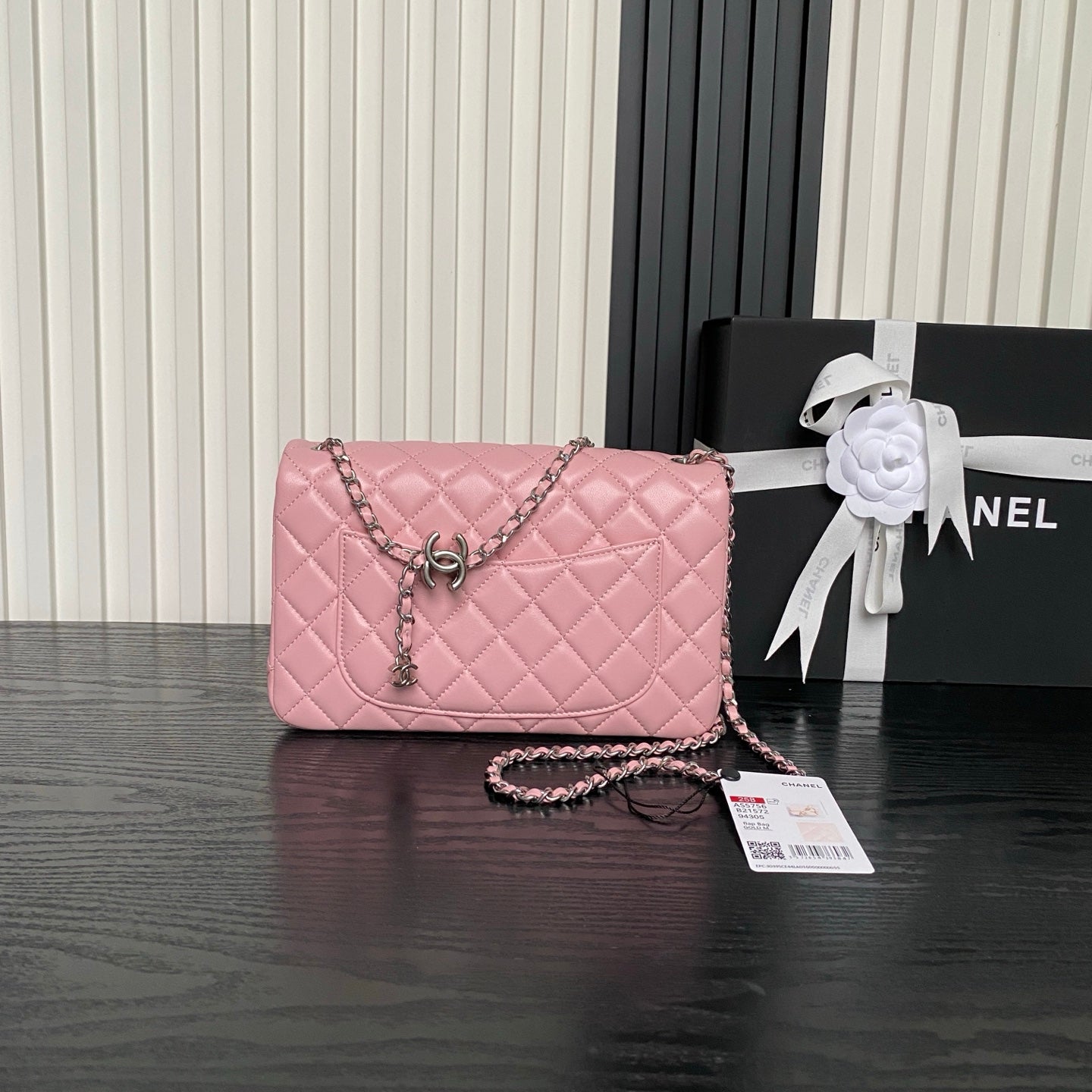 CHANEL 25S FLAP BAG 23 IN LIGHT PINK CALFSKIN SILVER HARDWARE