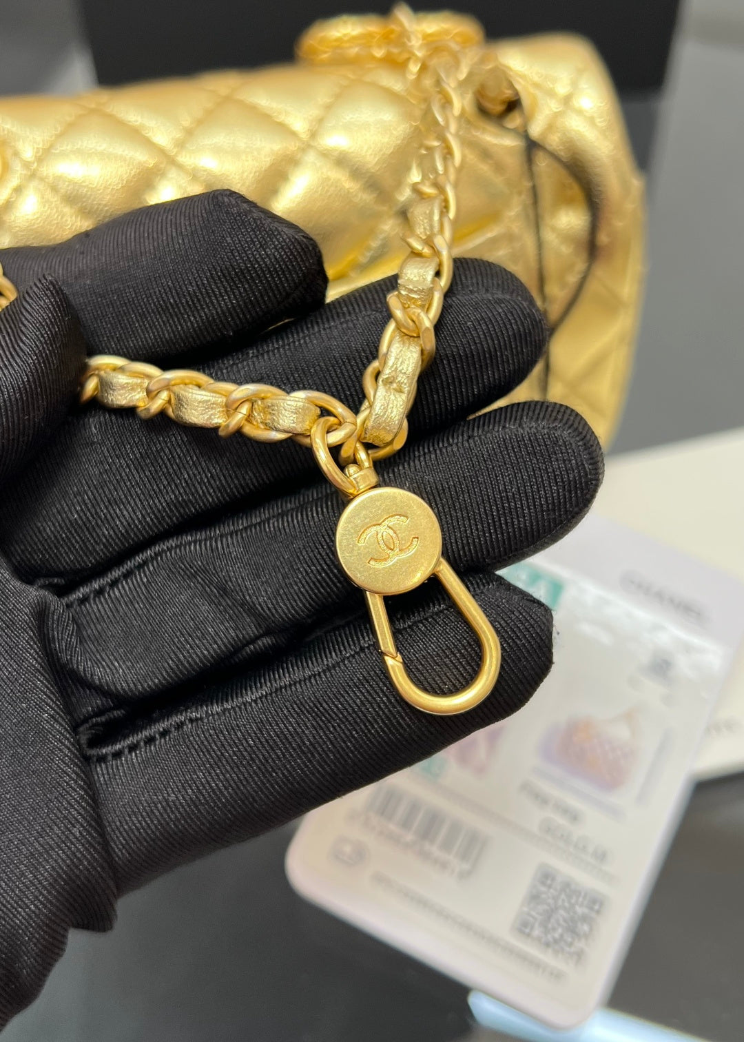 CHANEL 25S FLAP CHARM BAG 13 IN GOLD METALLIC LAMBSKIN
