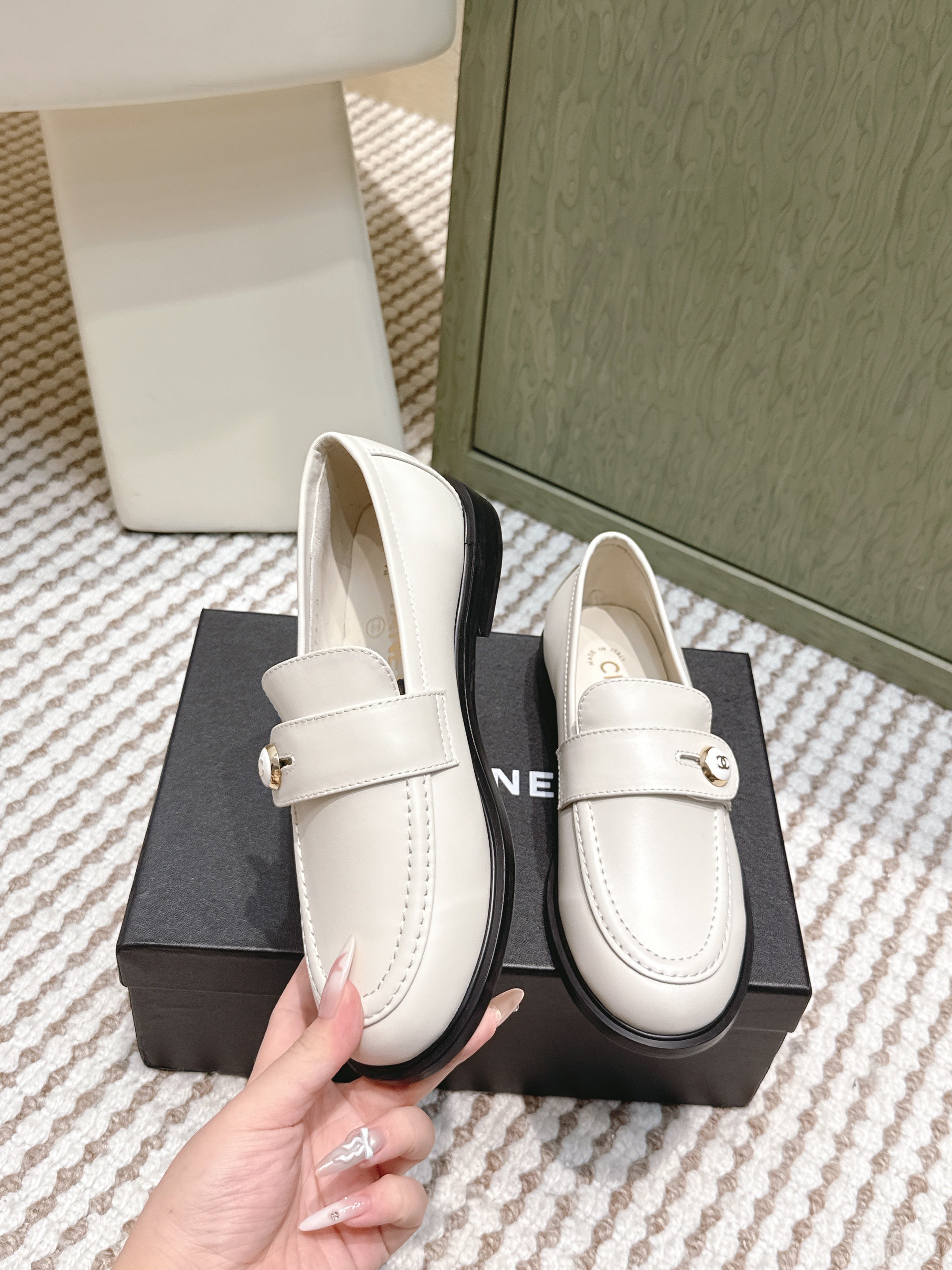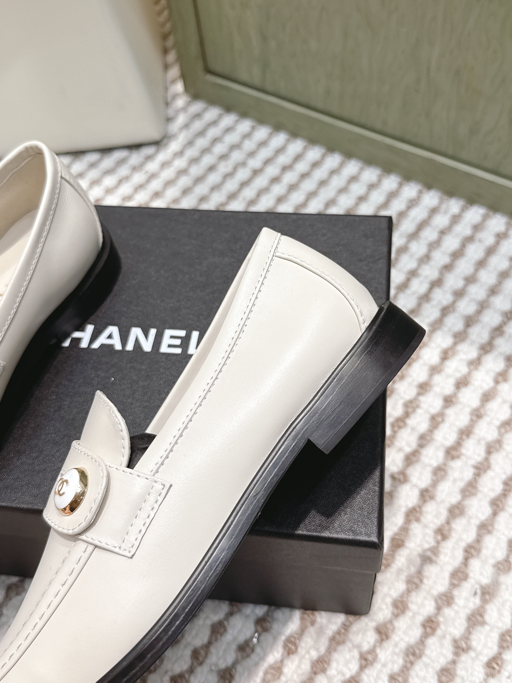 CHANEL 25S GODDESS FLAT LOAFERS IN WHITE CALFSKIN GOLD HARDWARE