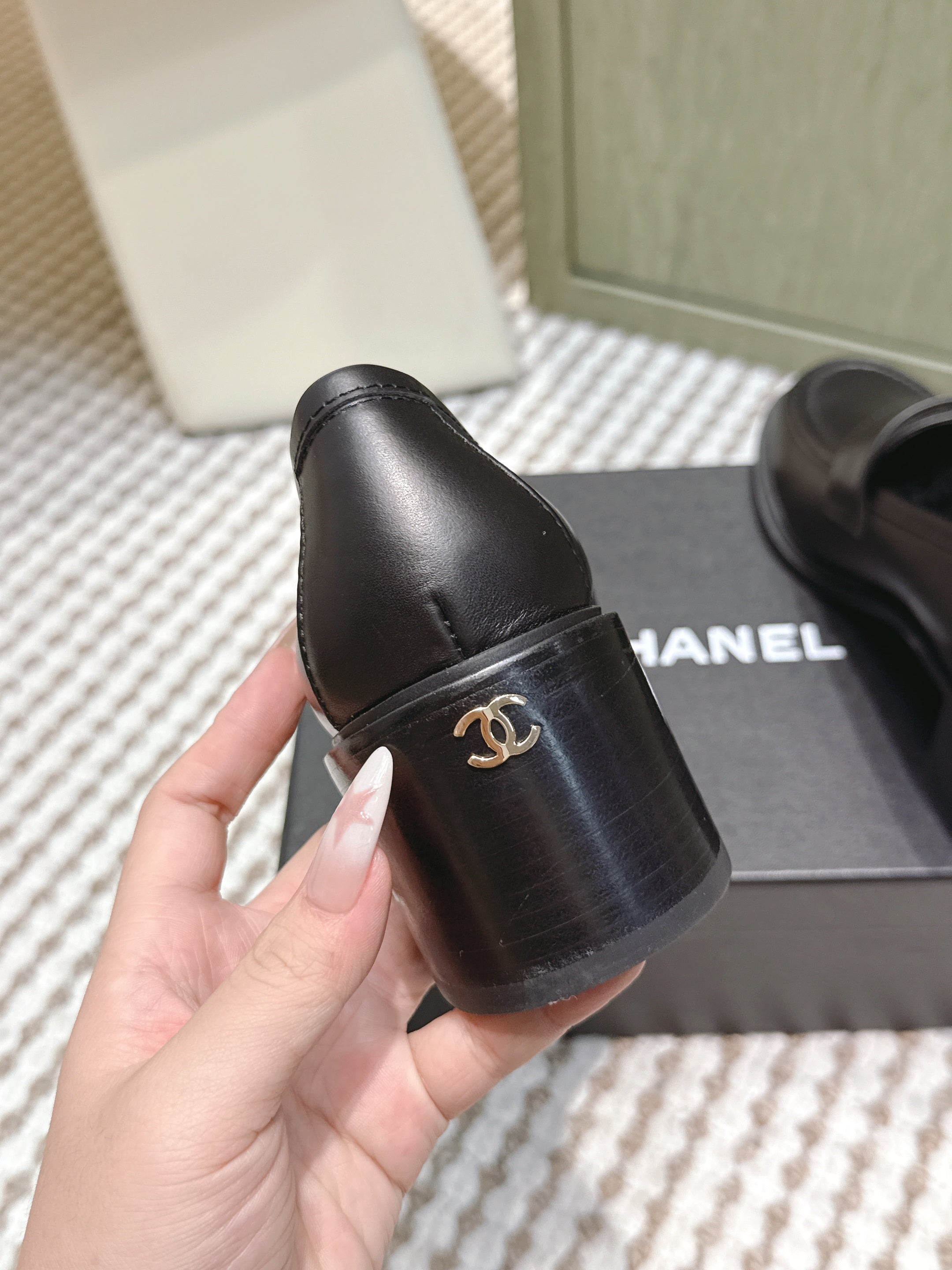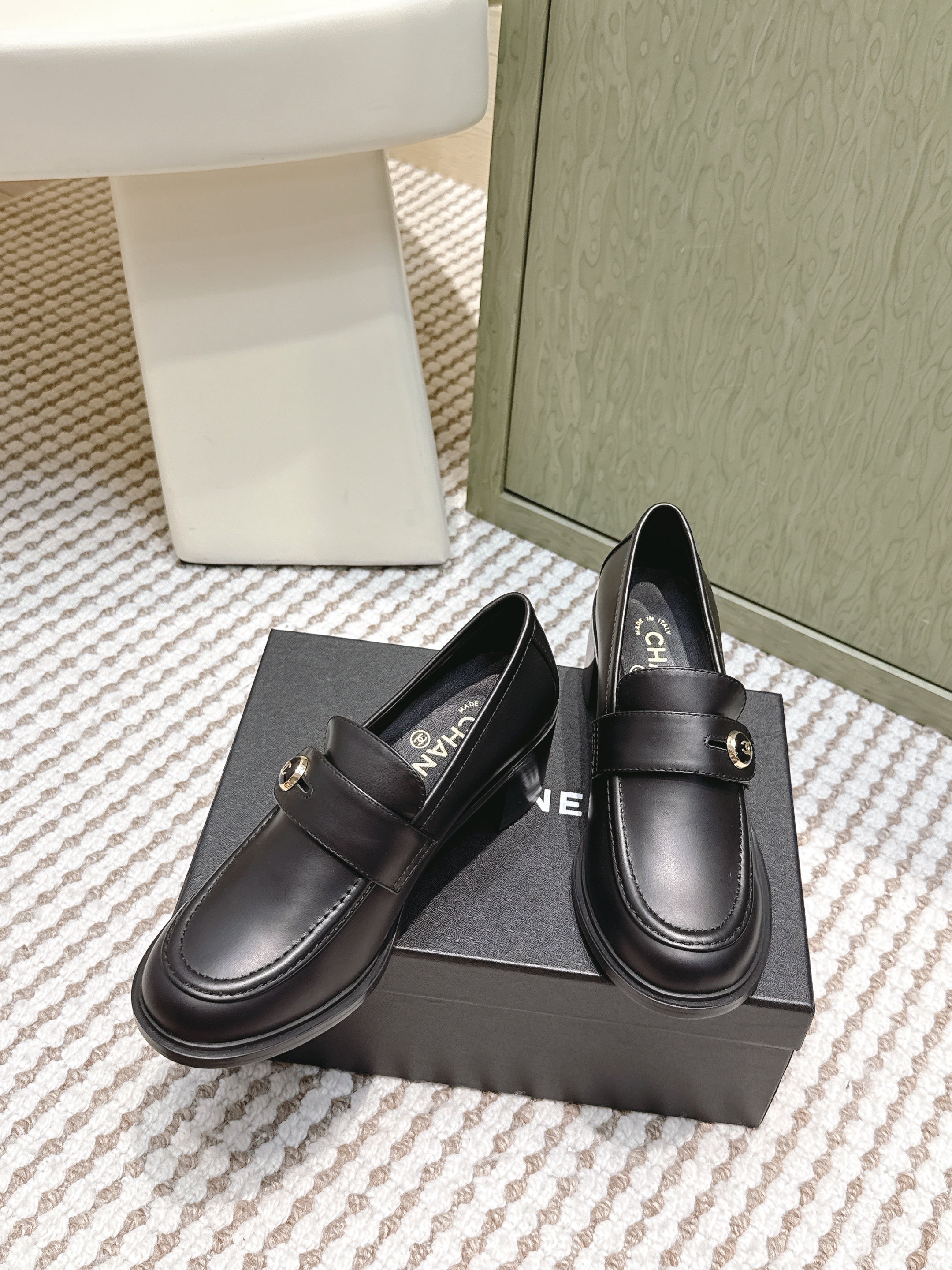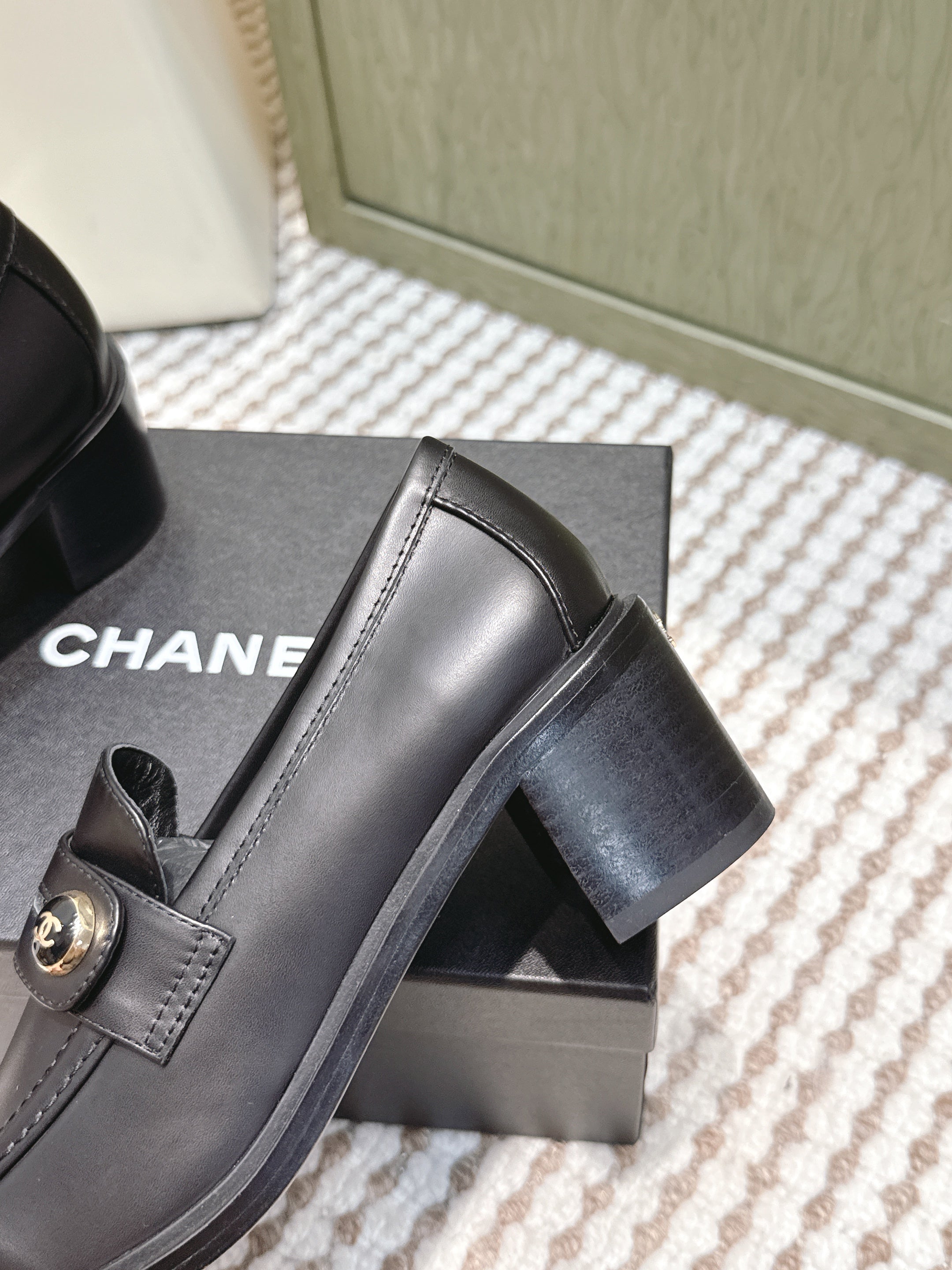 CHANEL 25S GODDESS MOCCASIN LOAFERS 65MM IN BLACK CALFSKIN GOLD HARDWARE