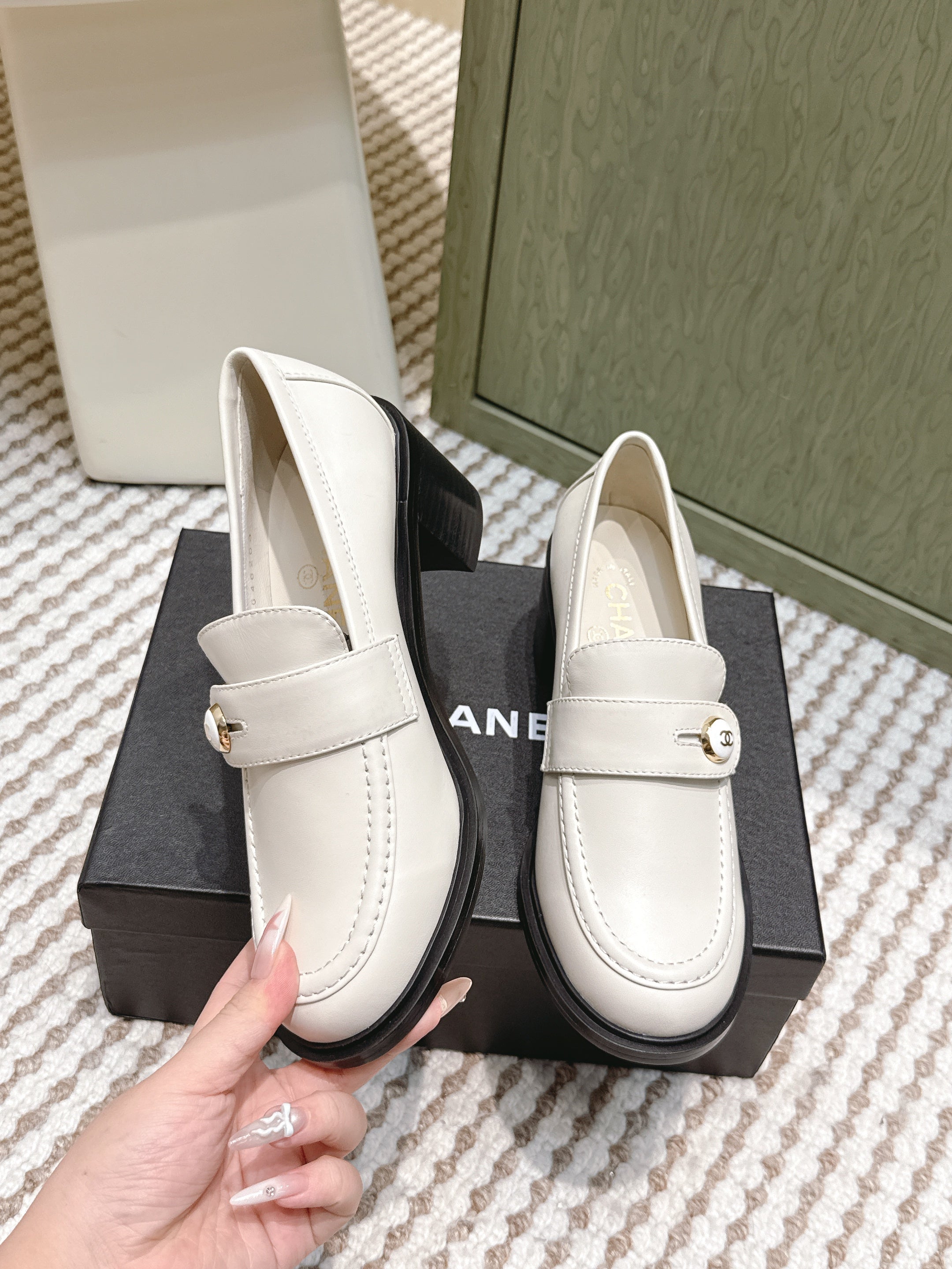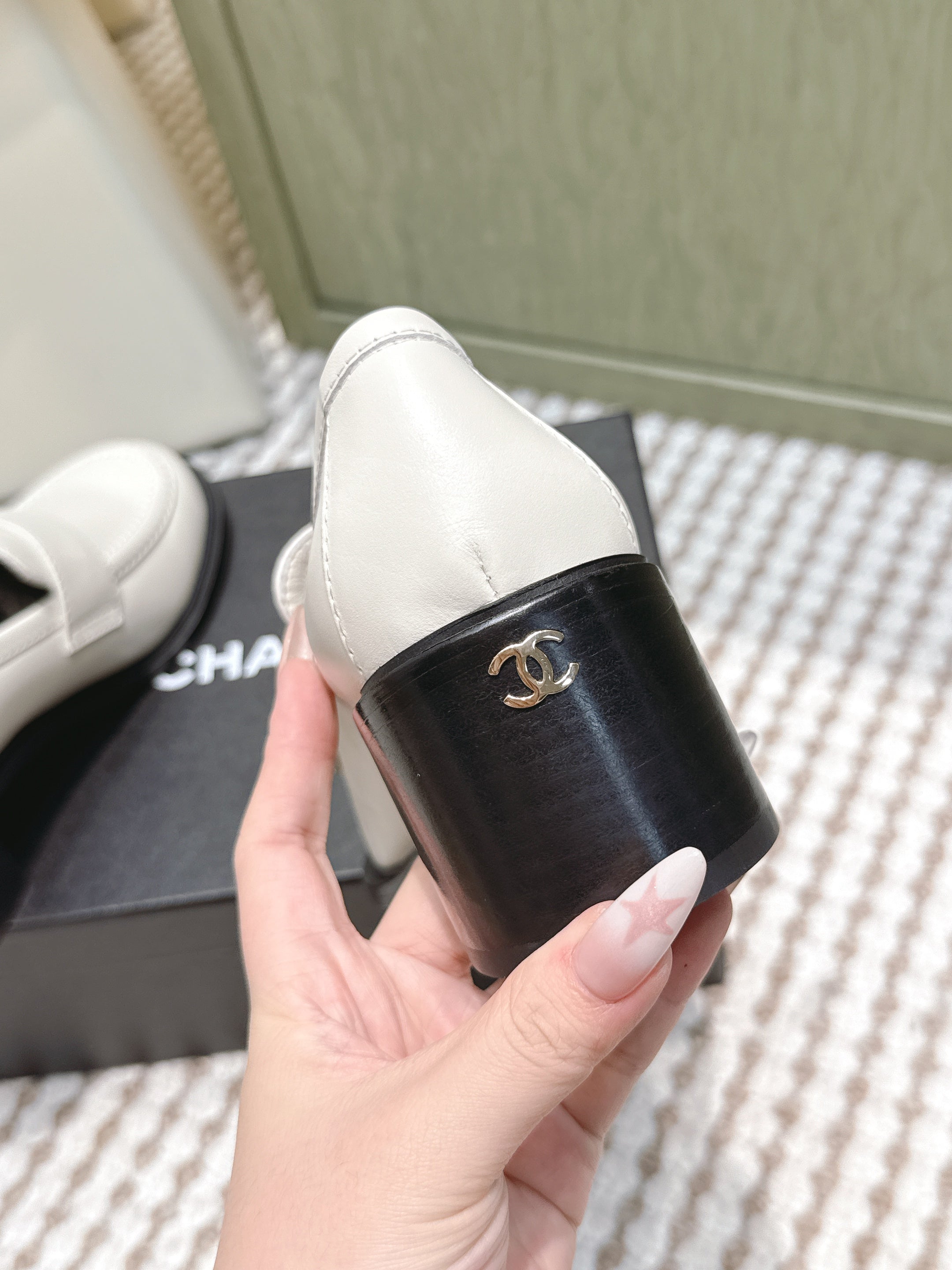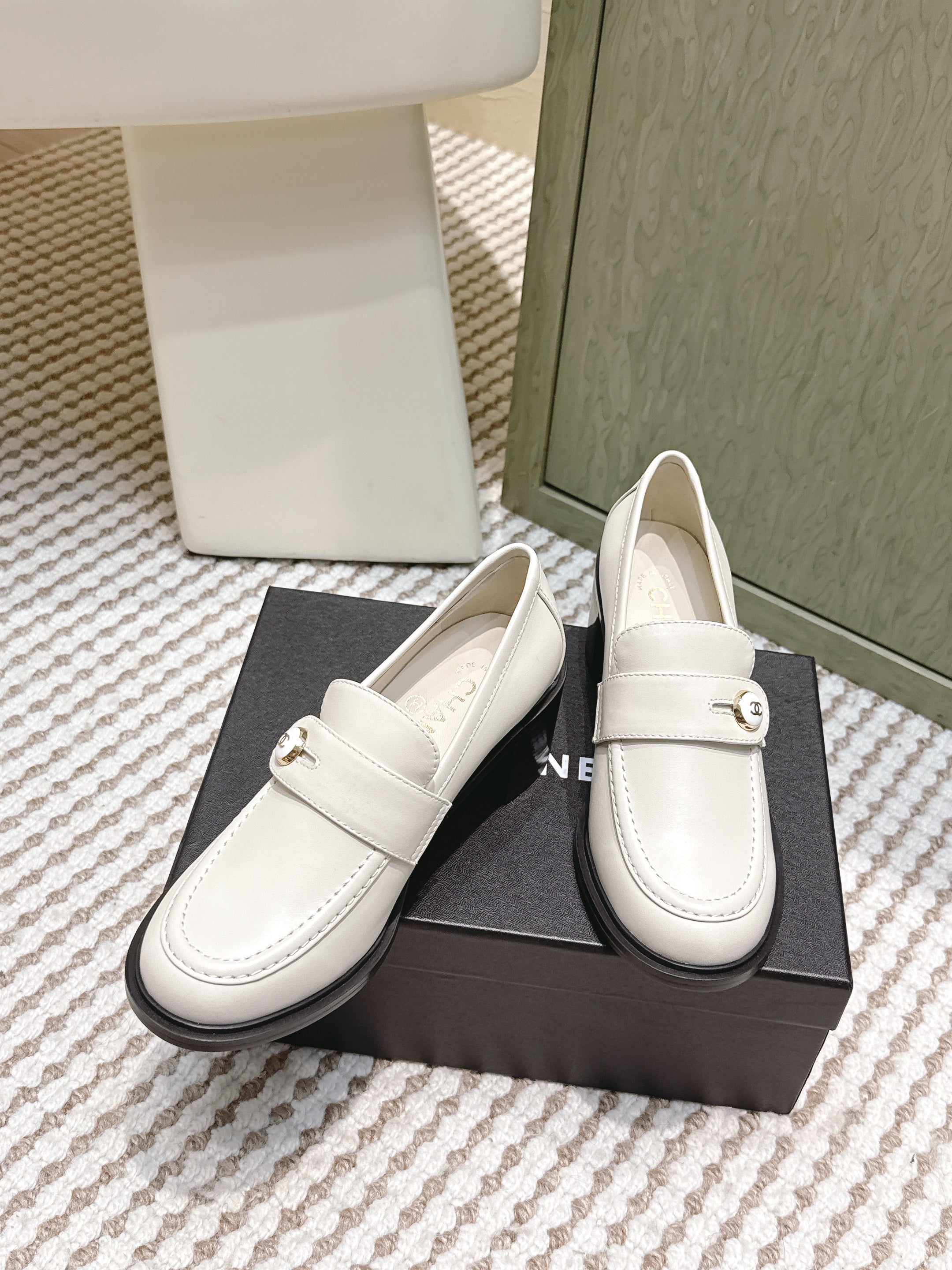 CHANEL 25S GODDESS MOCCASIN LOAFERS 65MM IN WHITE CALFSKIN GOLD HARDWARE