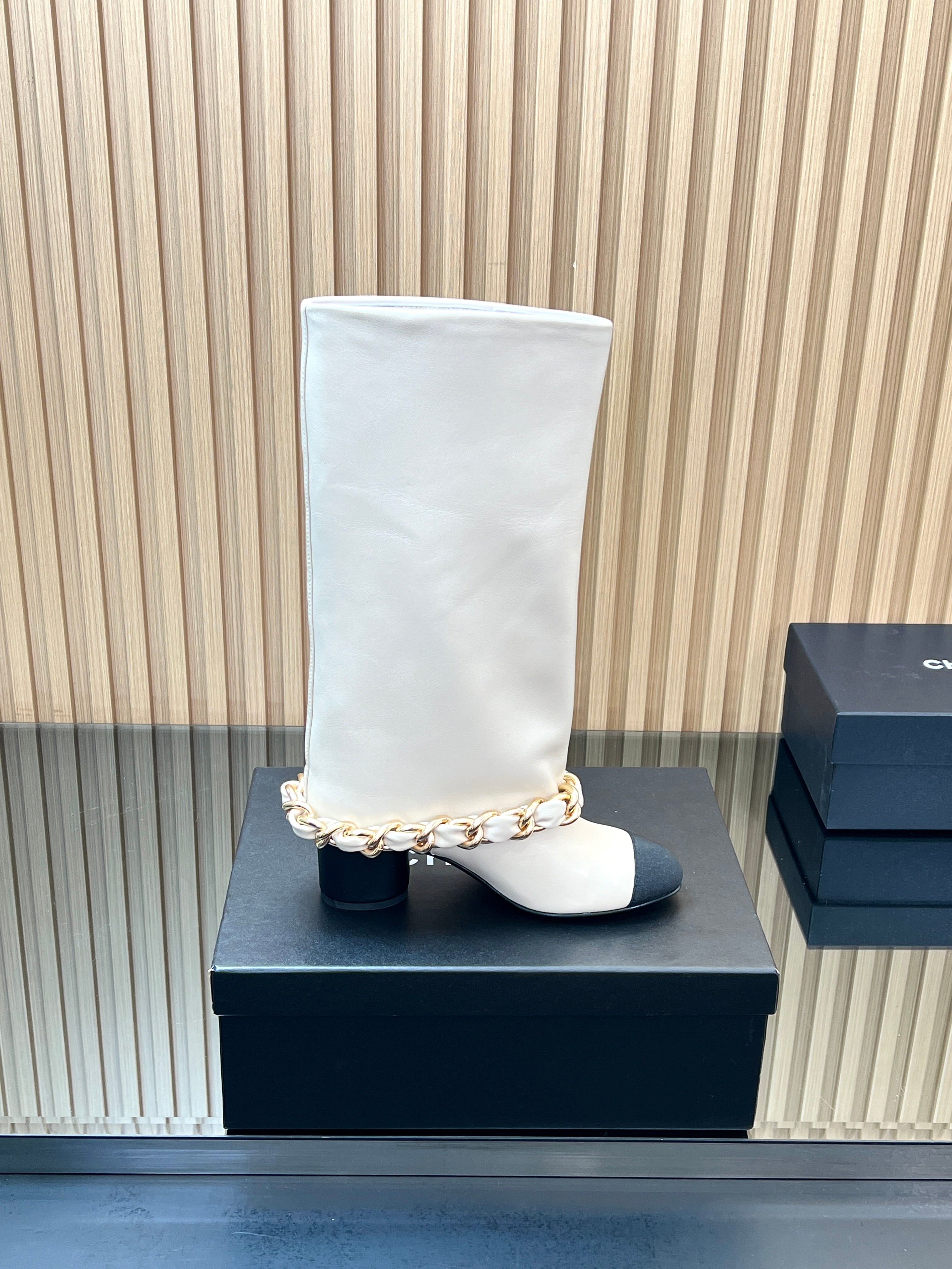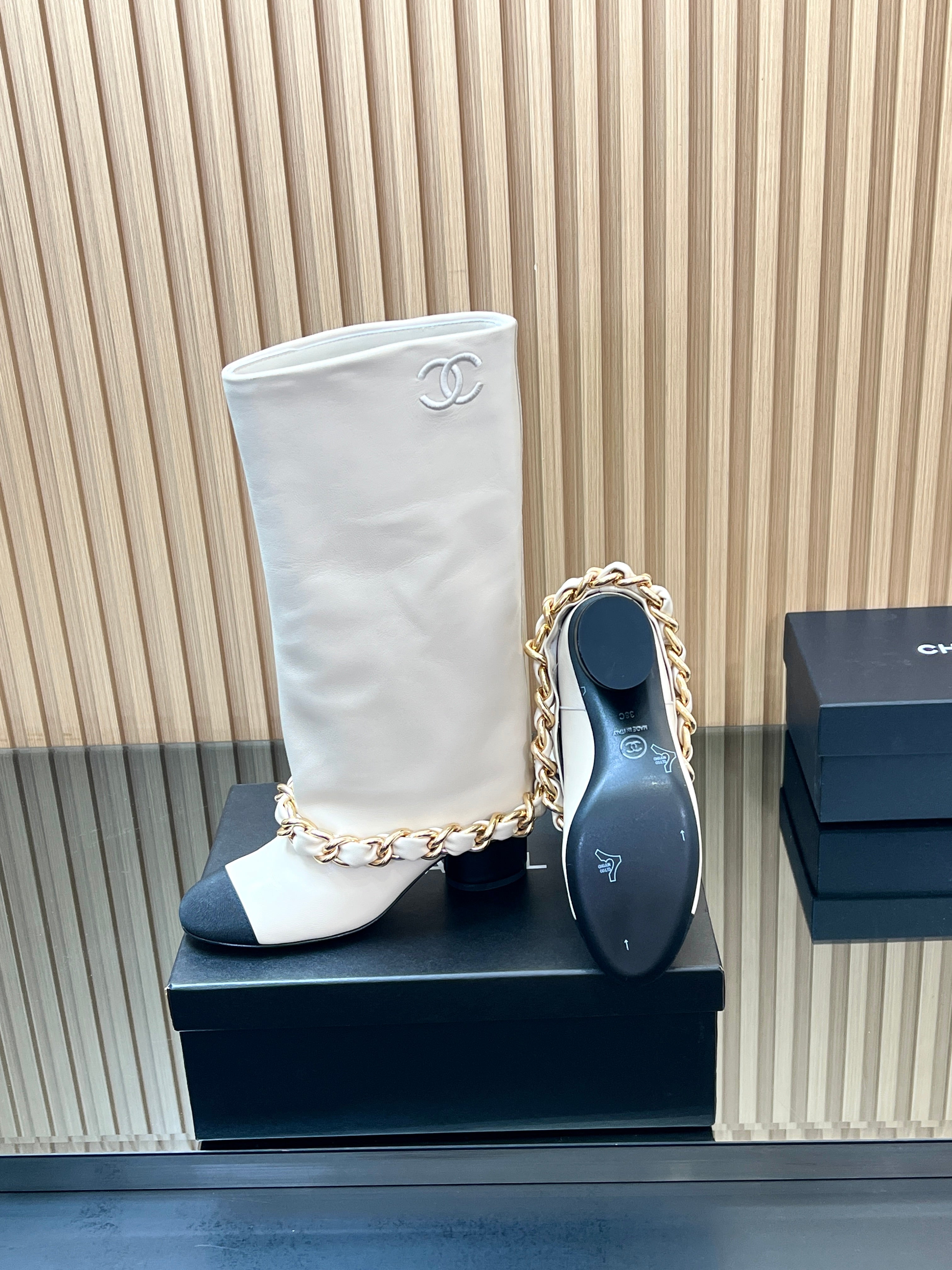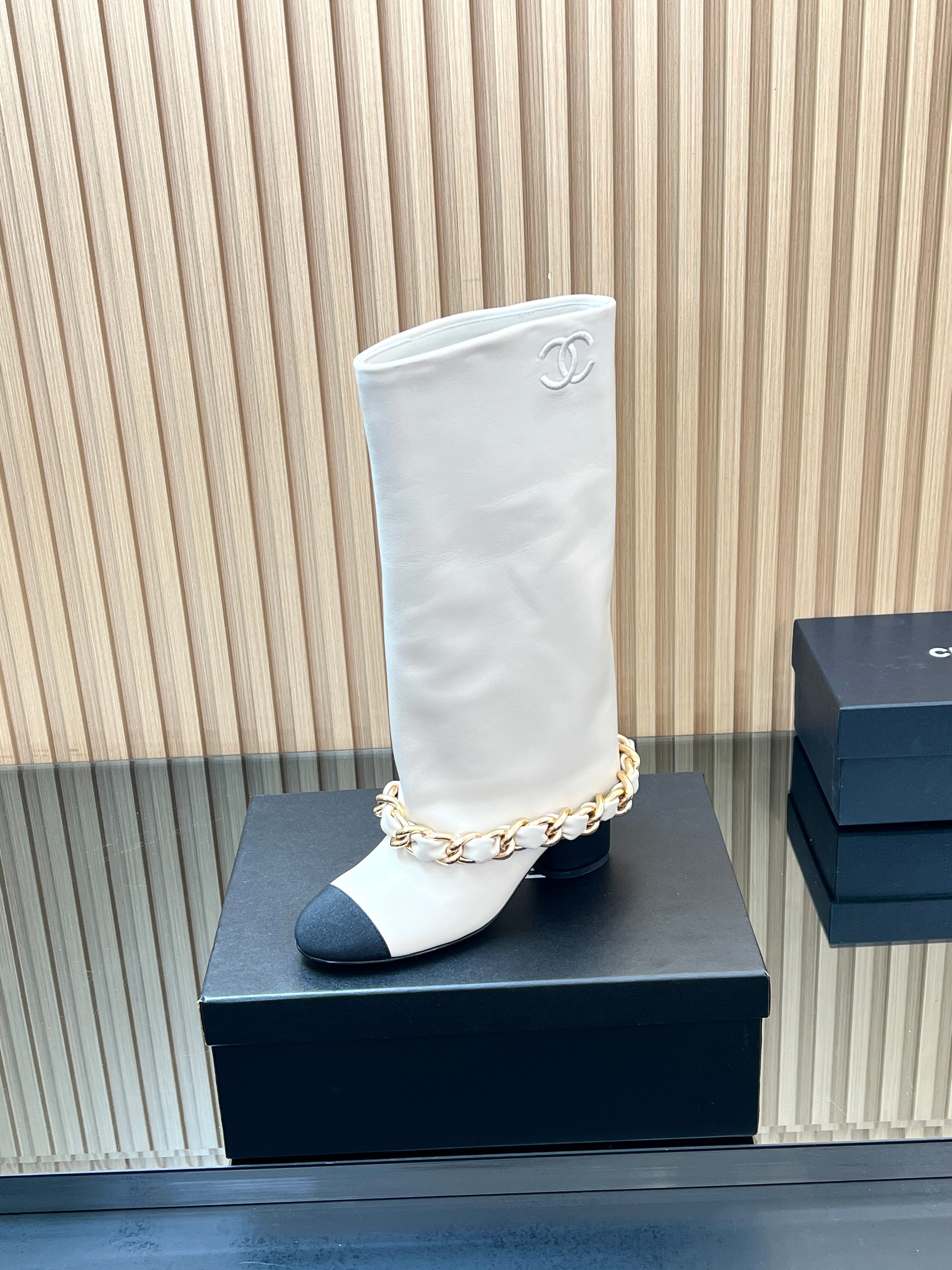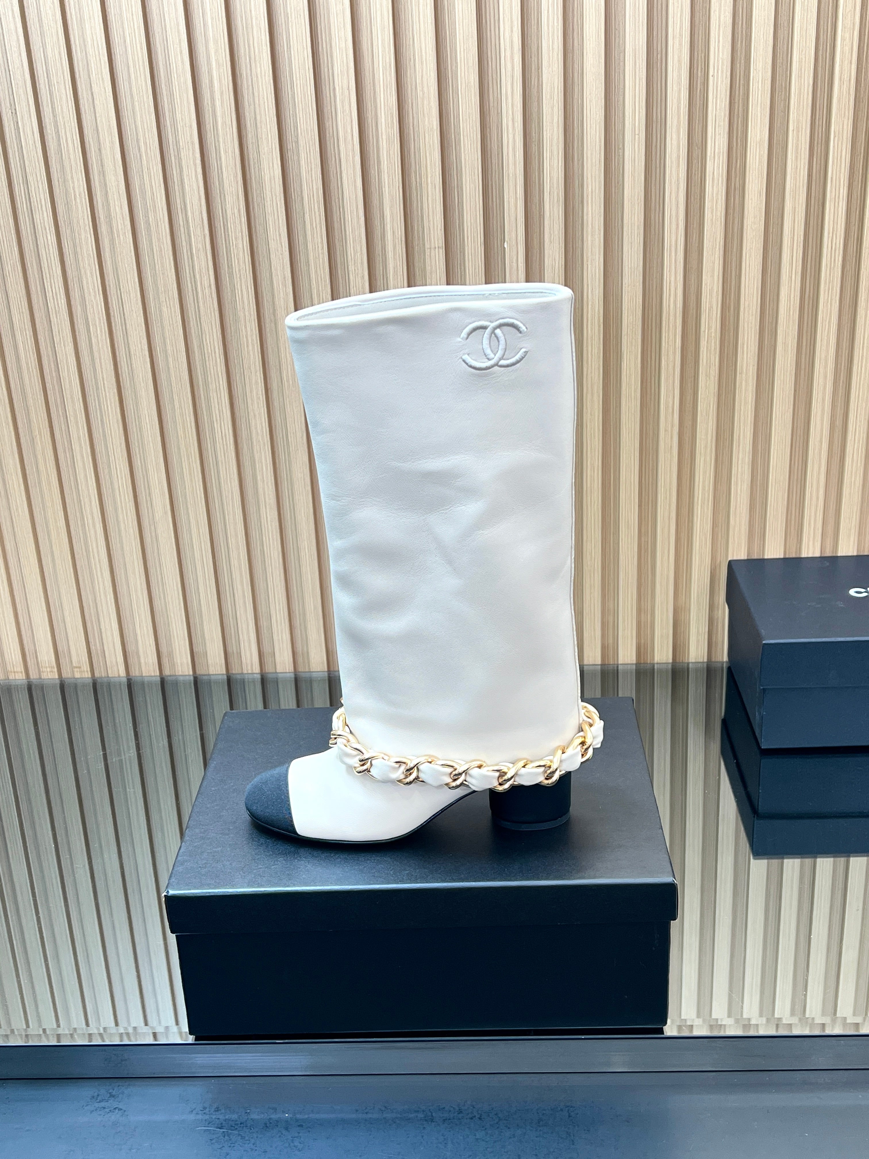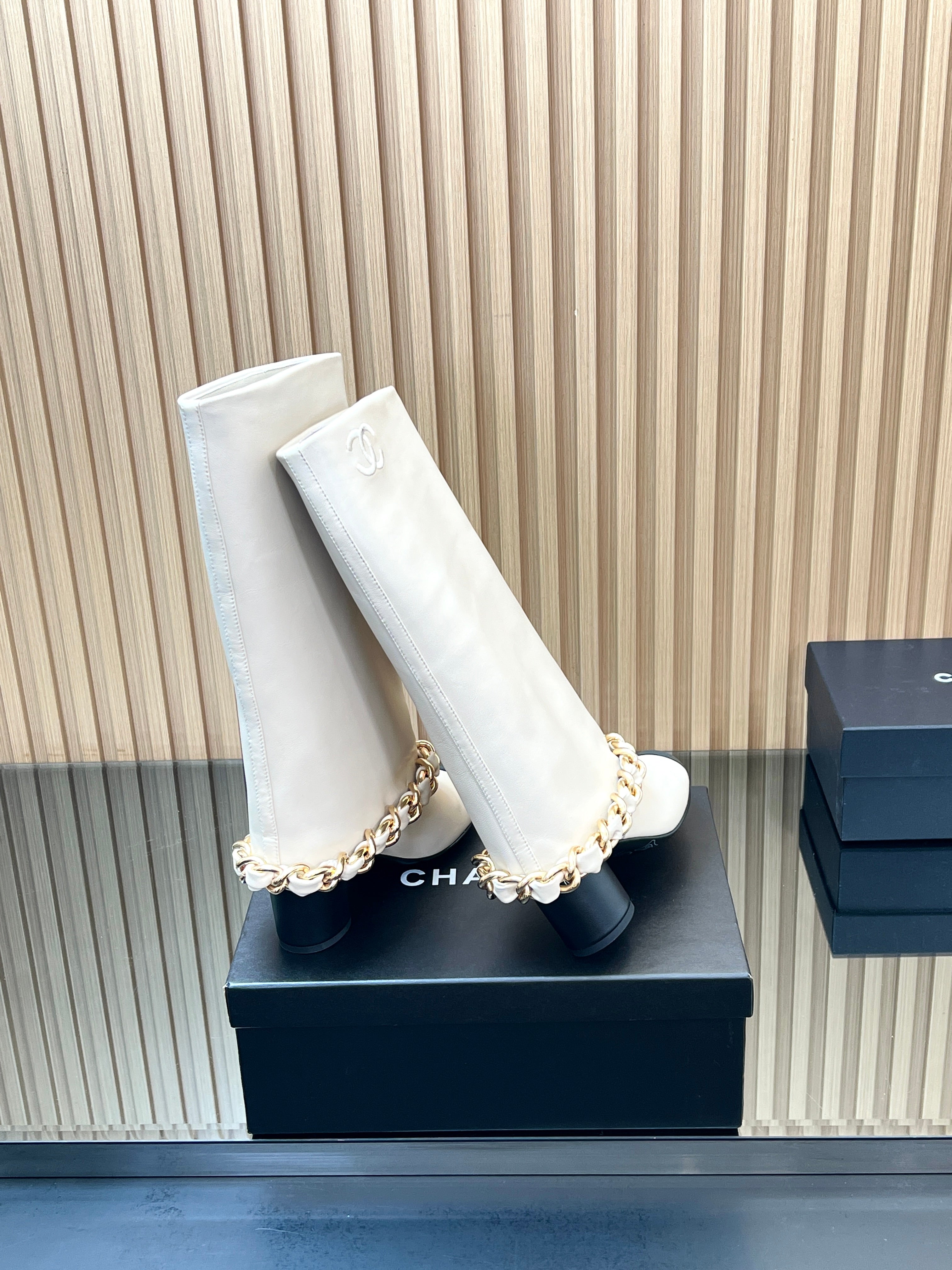 CHANEL 25S HIGH BOOTS 65MM IN WHITE CALFSKIN GOLD HARDWRE