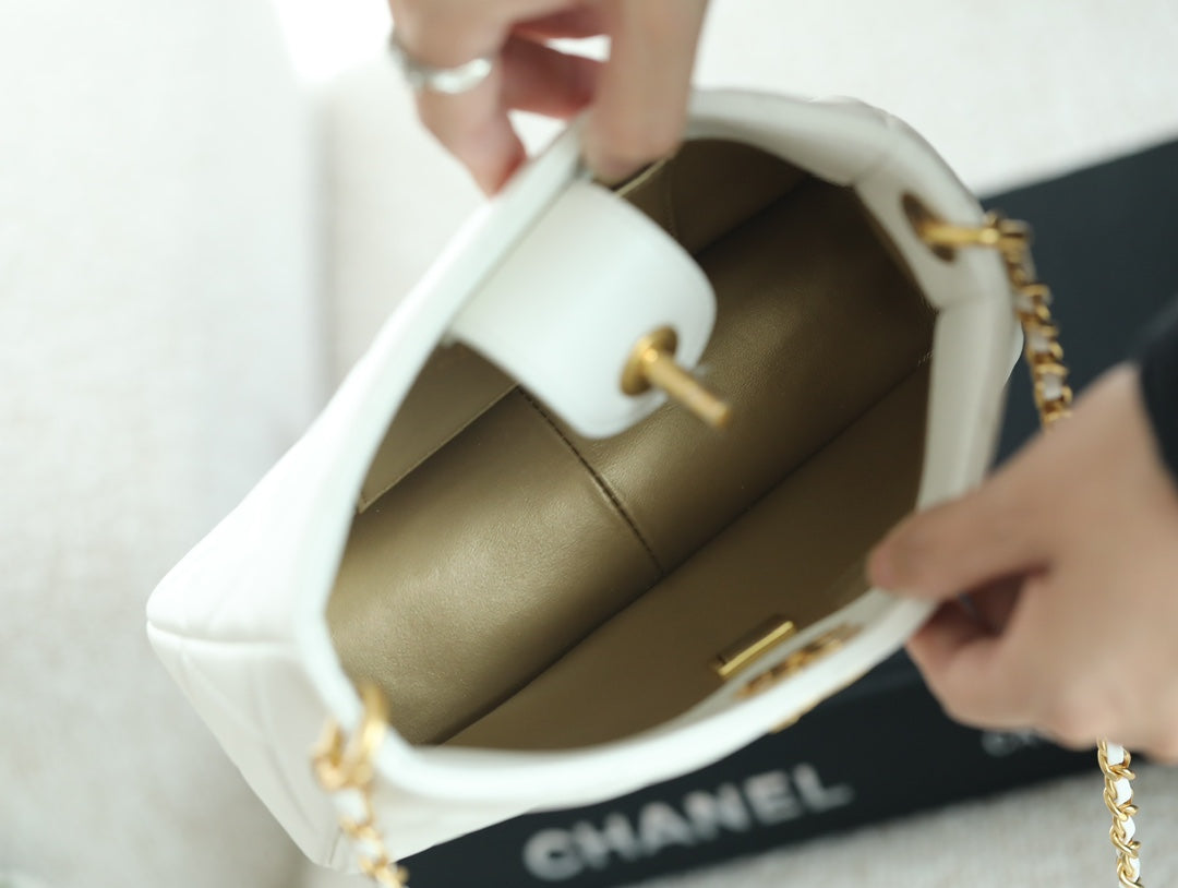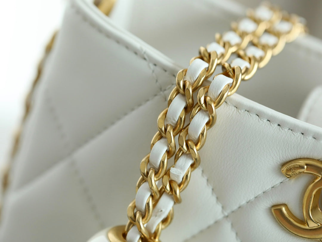 CHANEL 25S HOBO BAG 19.5 CM IN WHITE CALFSKIN WITH GOLD HARDWARE