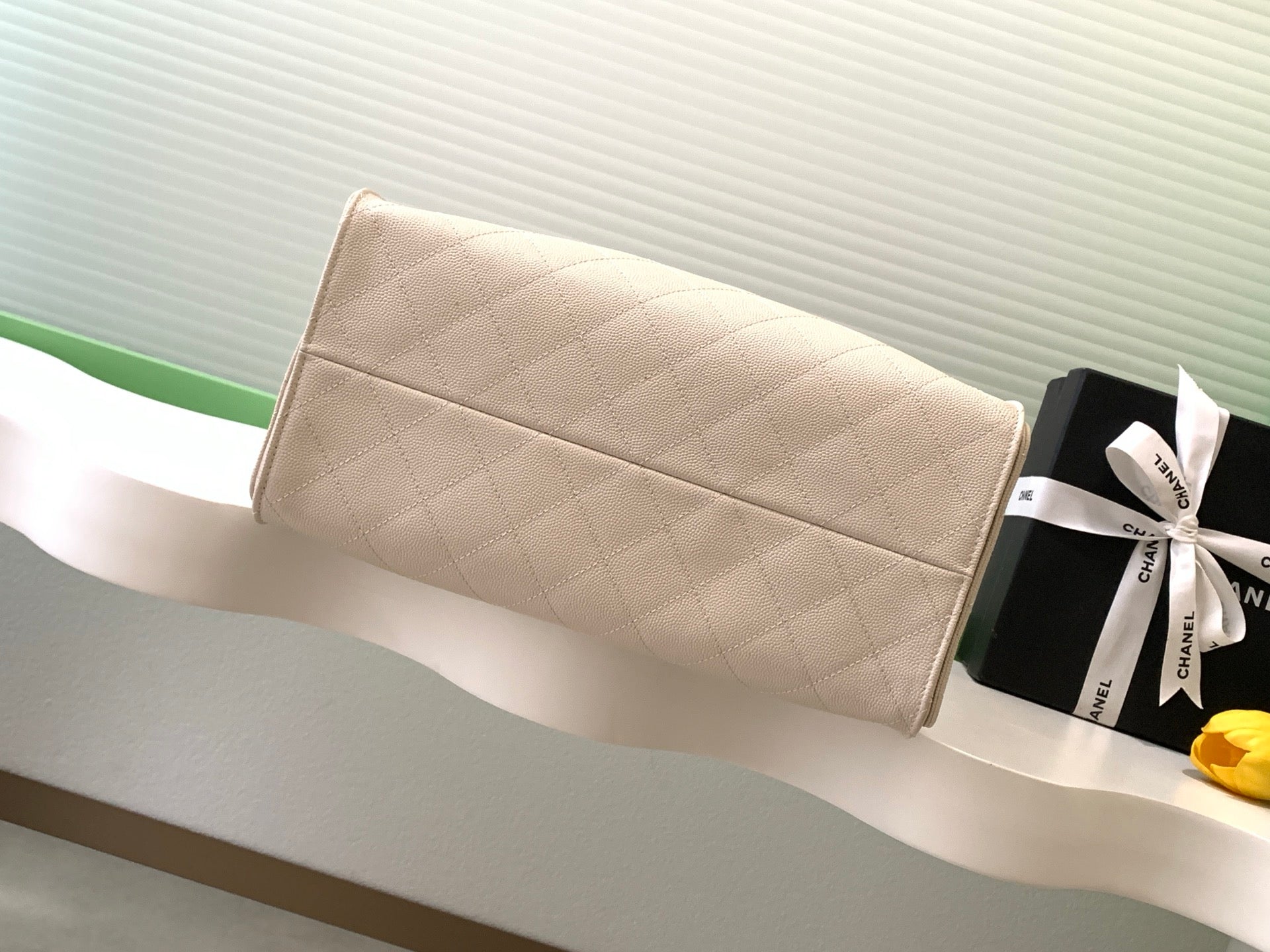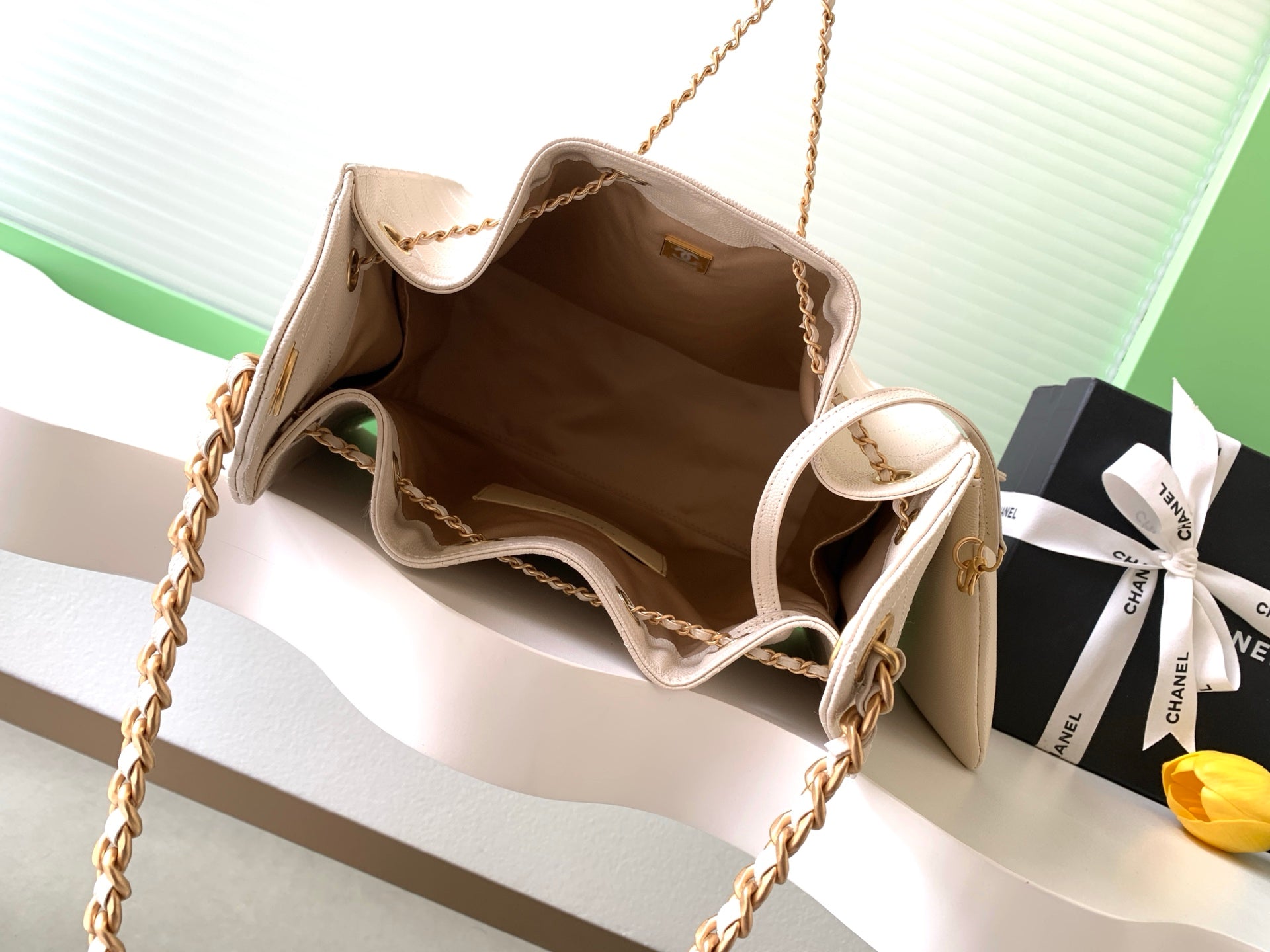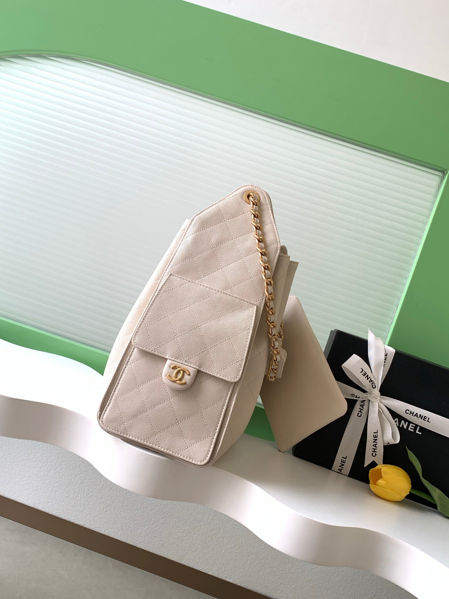 CHANEL 25S HOBO BAG 40 IN LIGHT BEIGE CAVIAR LEATHER WITH GOLD HARDWARE