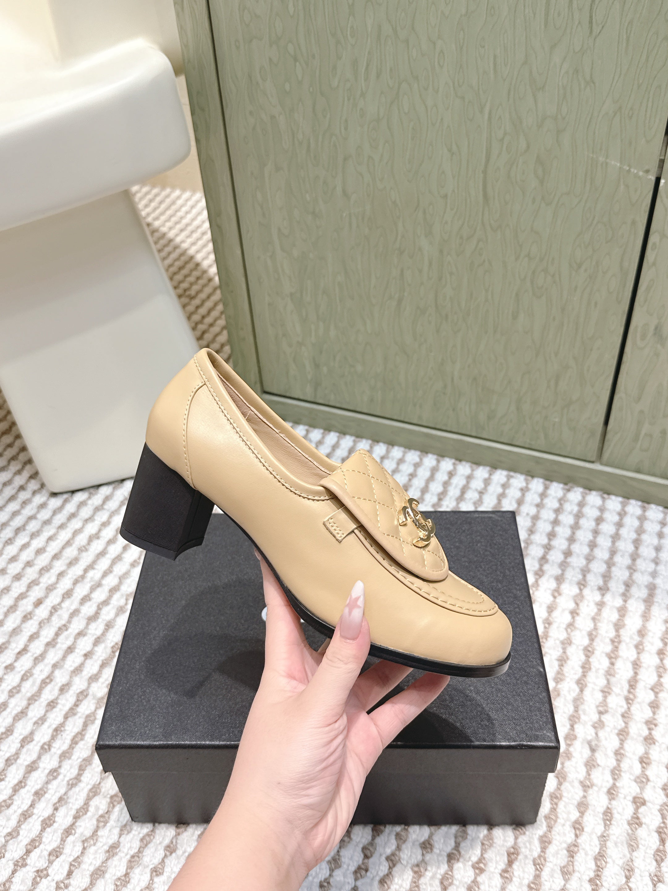 CHANEL 25S LOAFERS MOCCASIN 65MM IN WARM BEIGE CALFSKIN GOLD HARDWARE
