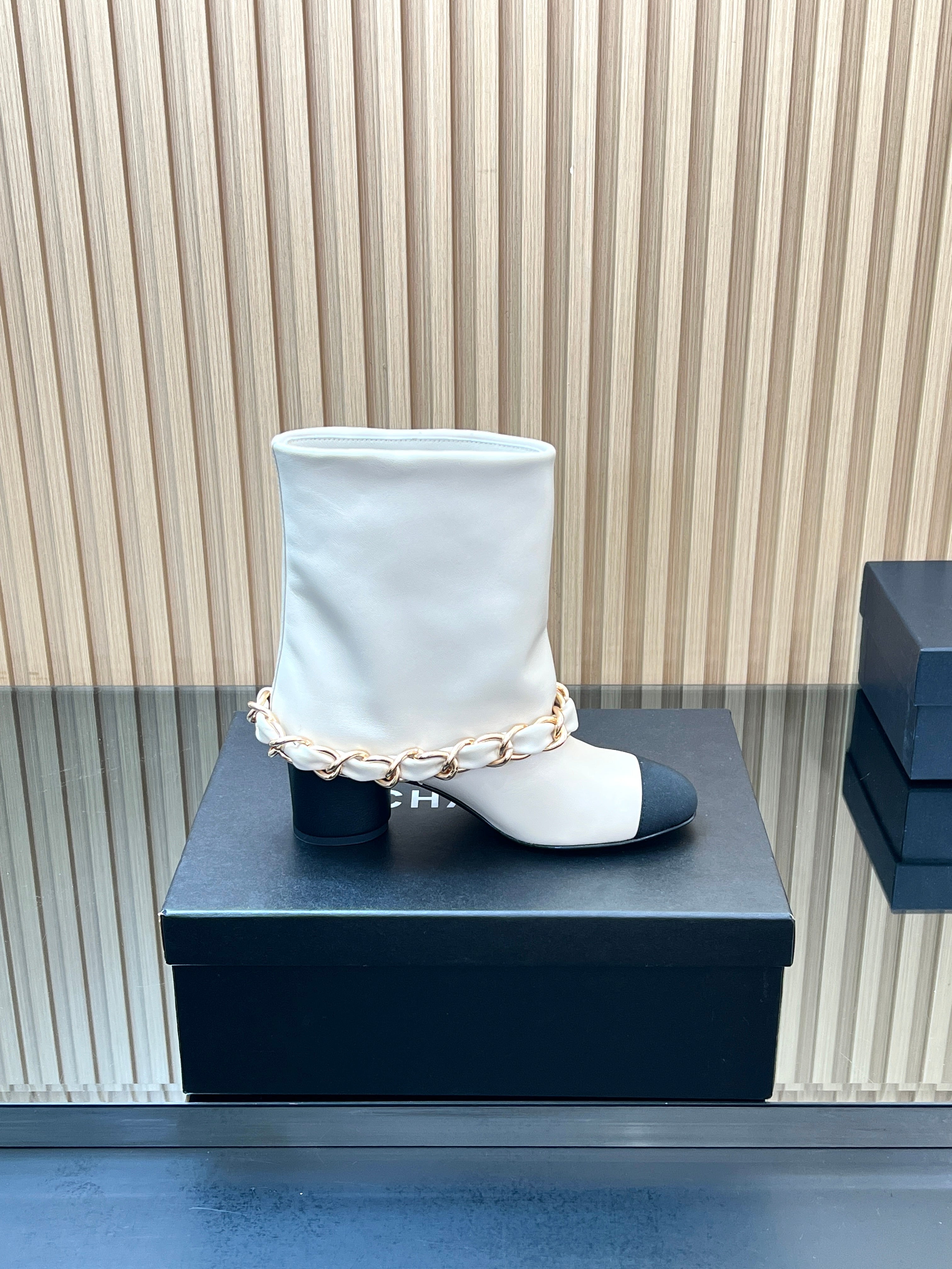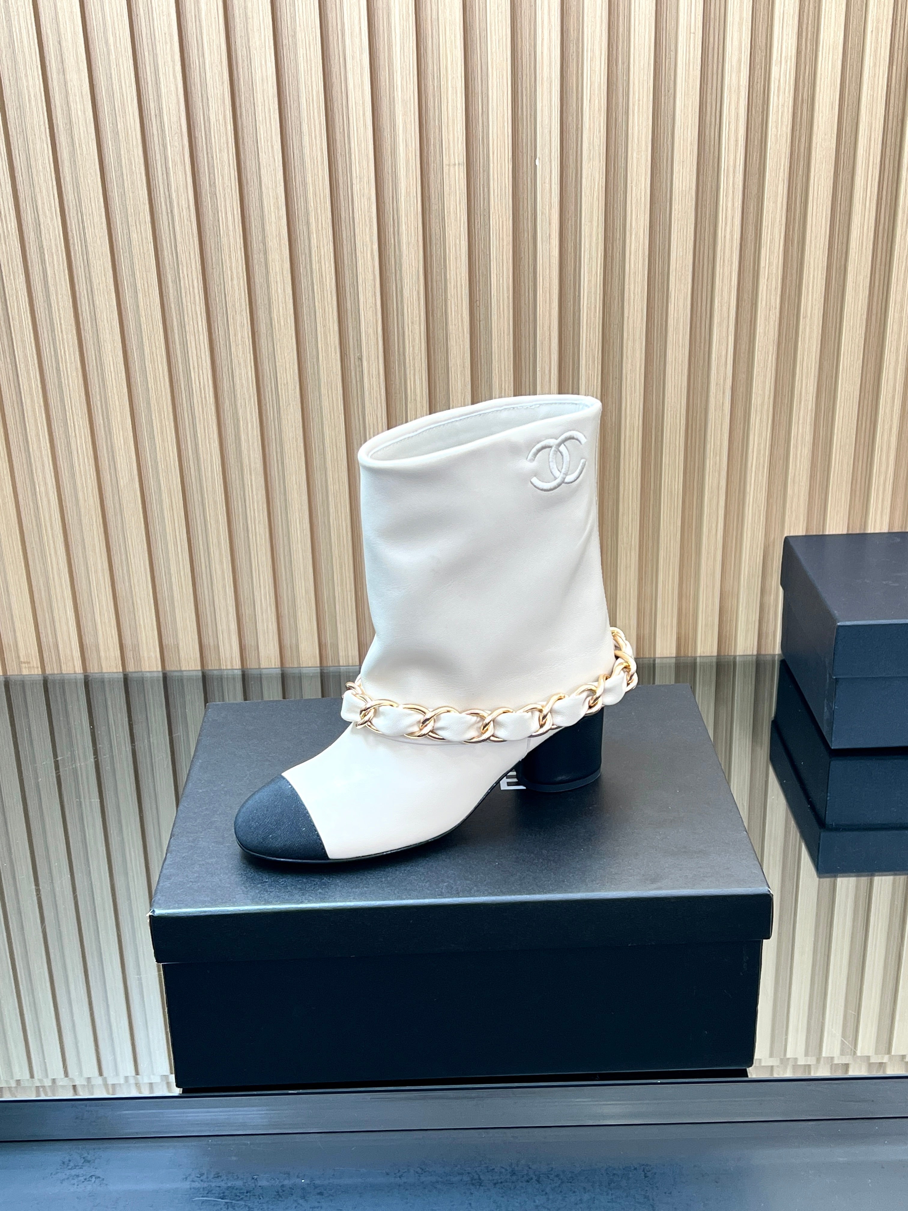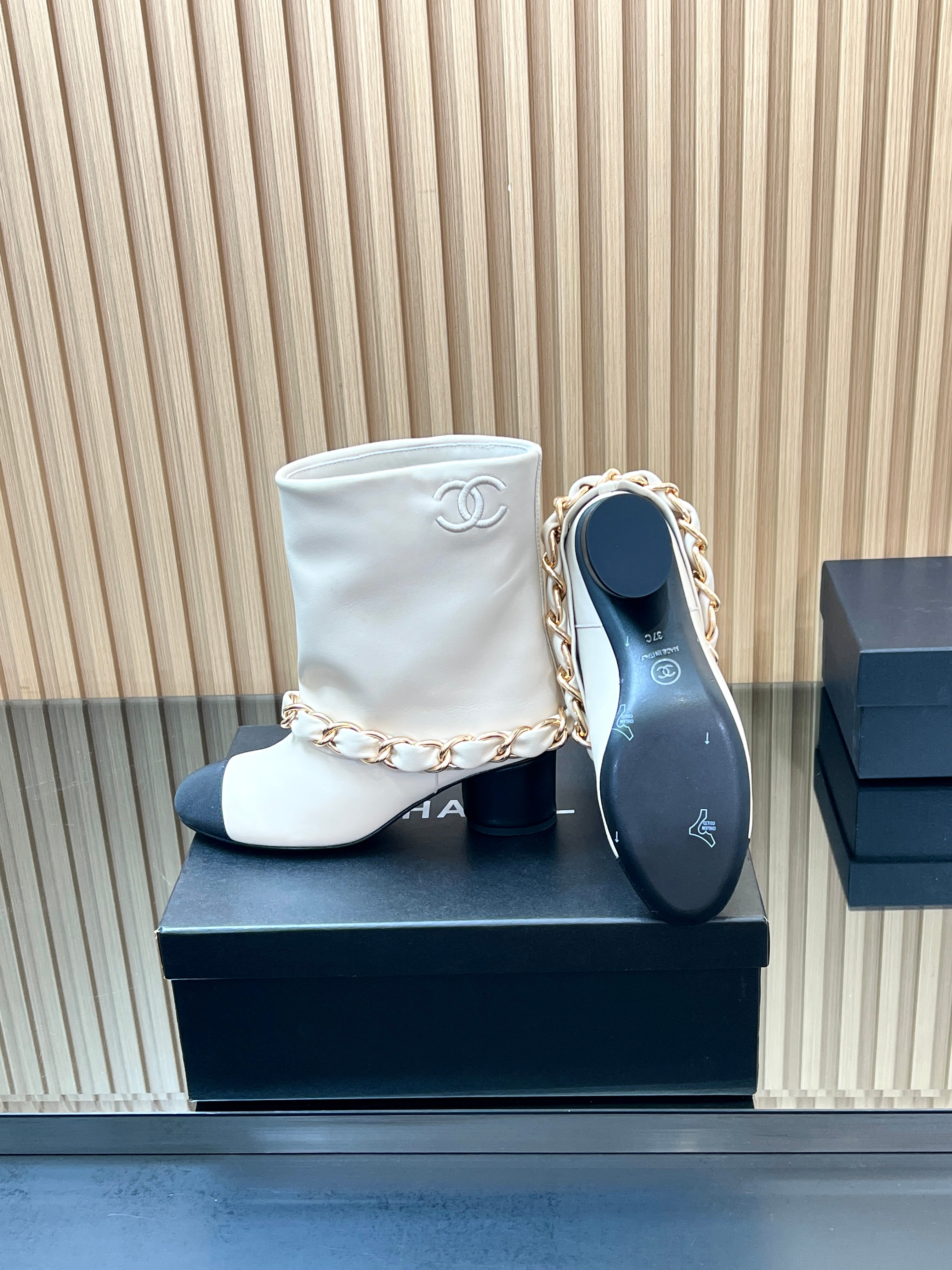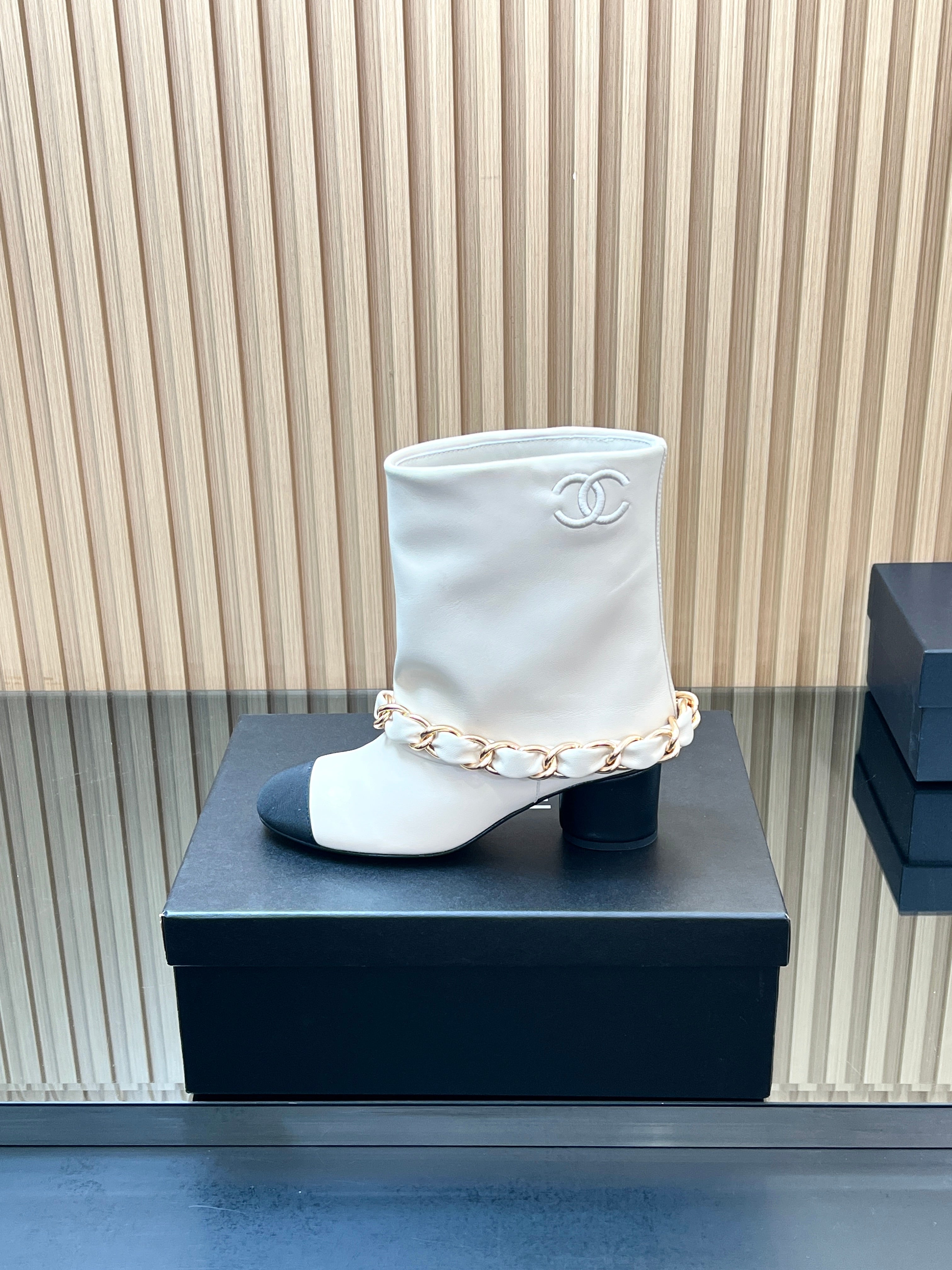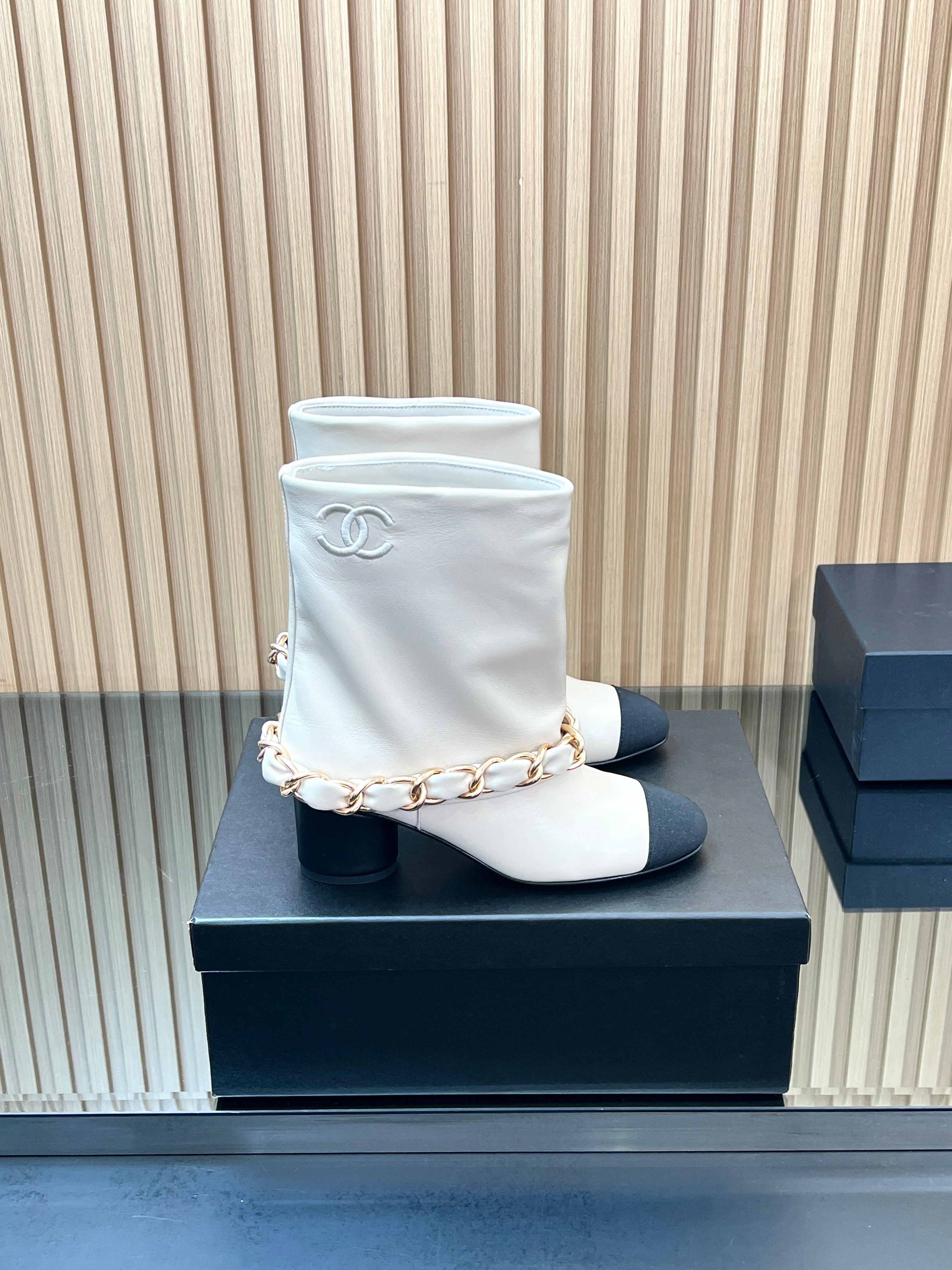 CHANEL 25S LOW BOOTS 65MM IN WHITE CALFSKIN GOLD HARDWRE