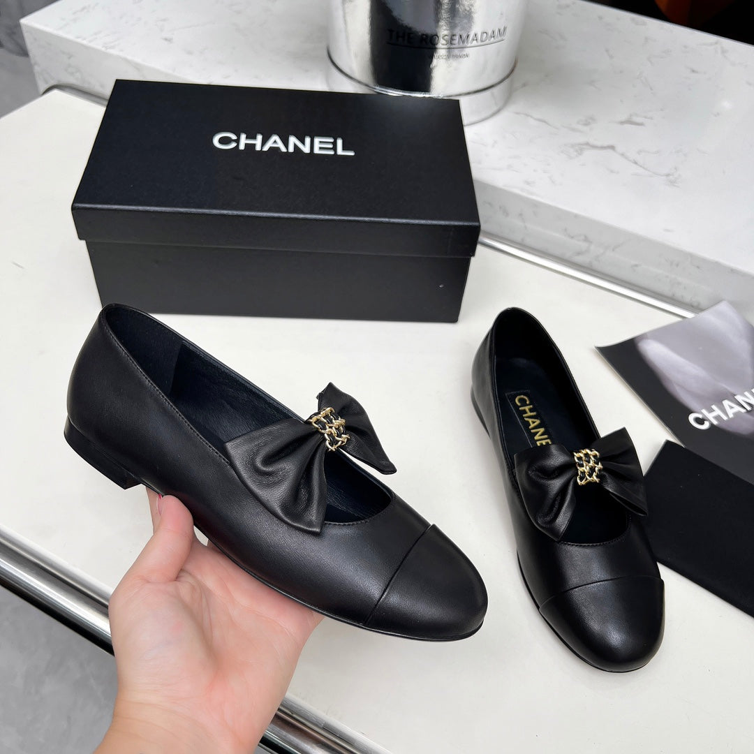 CHANEL 25S MARY JANES IN BLACK CALFSKIN WITH BOW GOLD HARDWRE