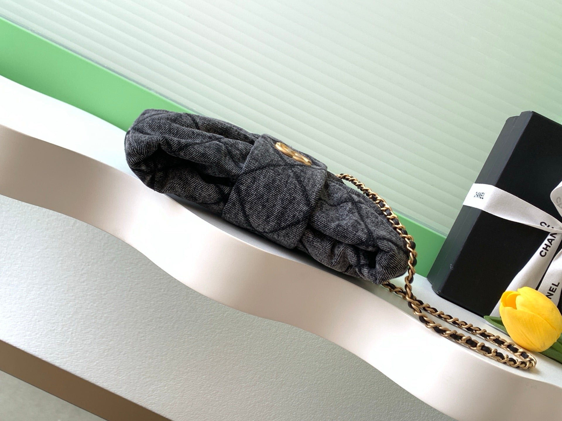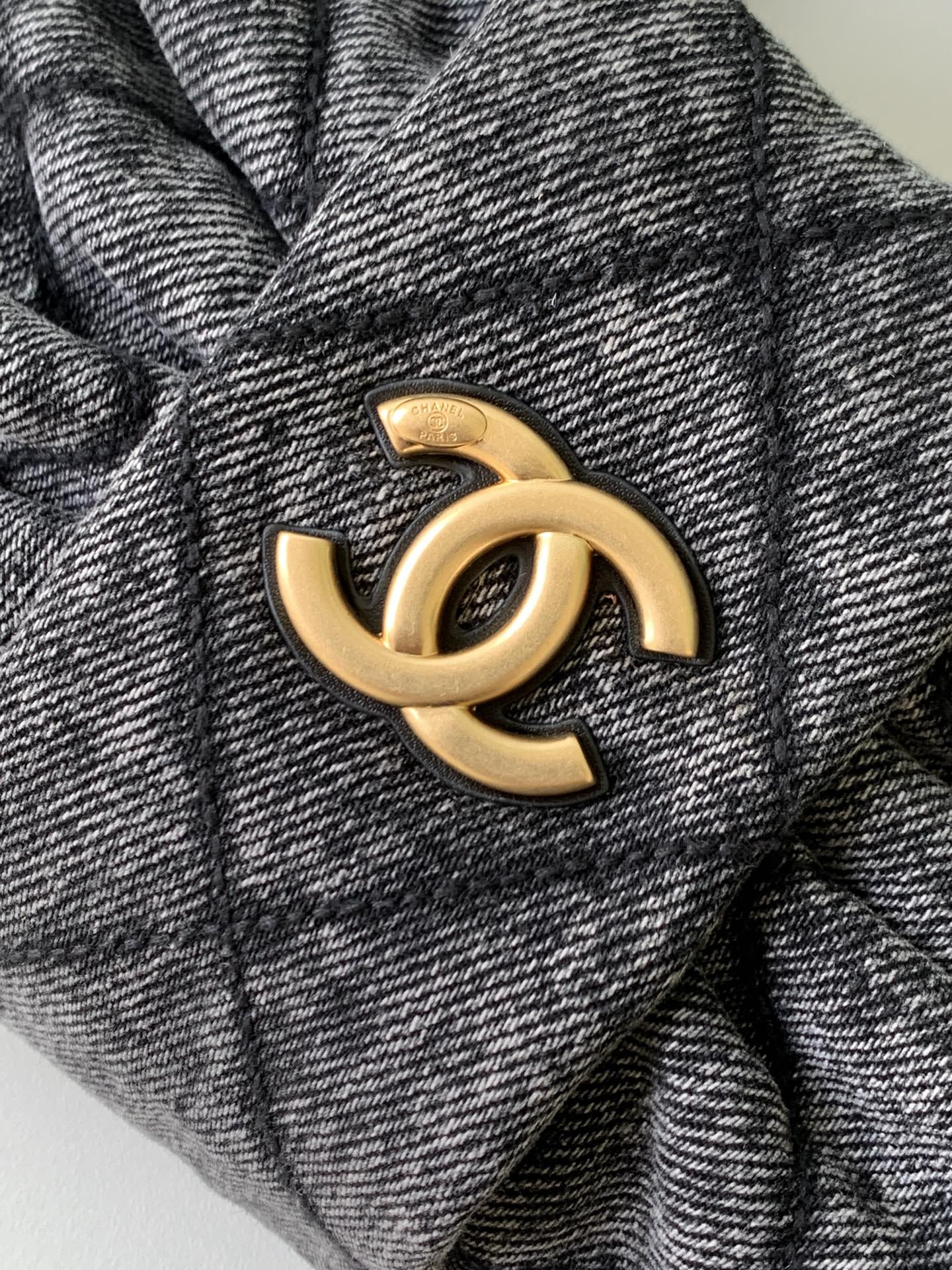 CHANEL 25S MAXI BOW BAG 26 IN DARK GREY DENIM WITH GOLD HARDWARE