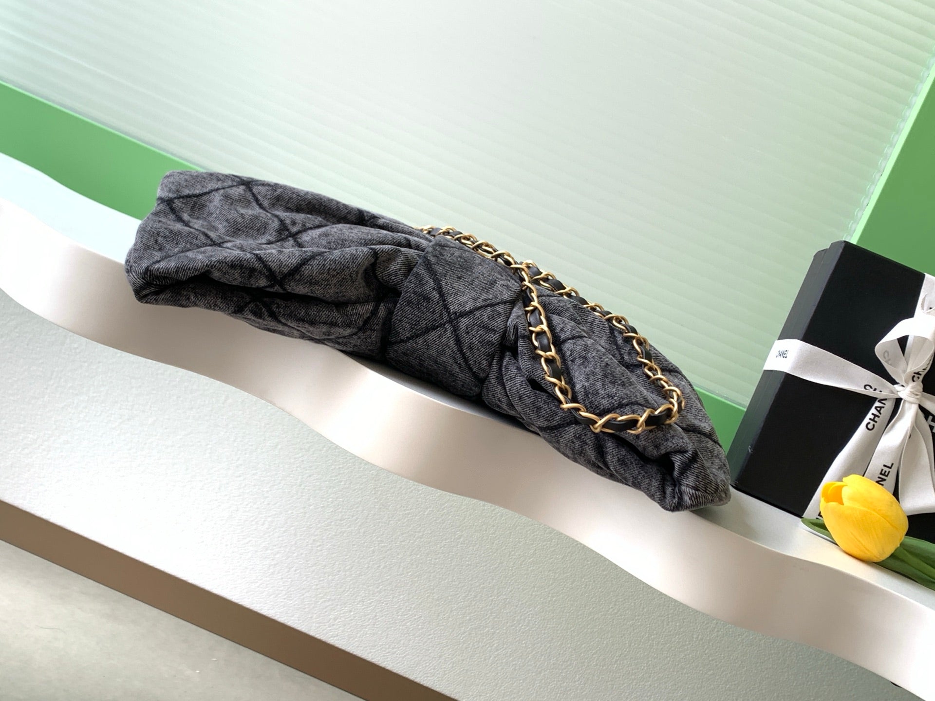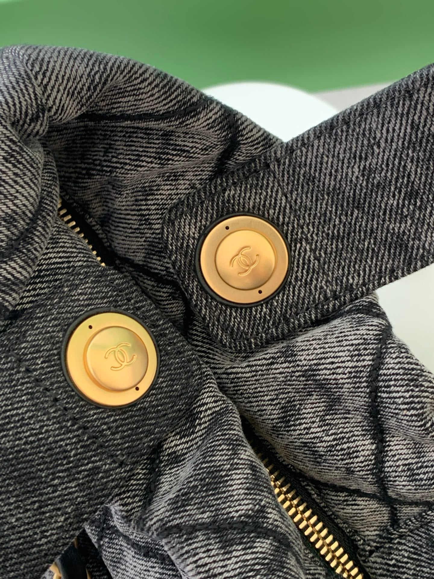 CHANEL 25S MAXI BOW BAG 38 IN DARK GREY DENIM WITH GOLD HARDWARE