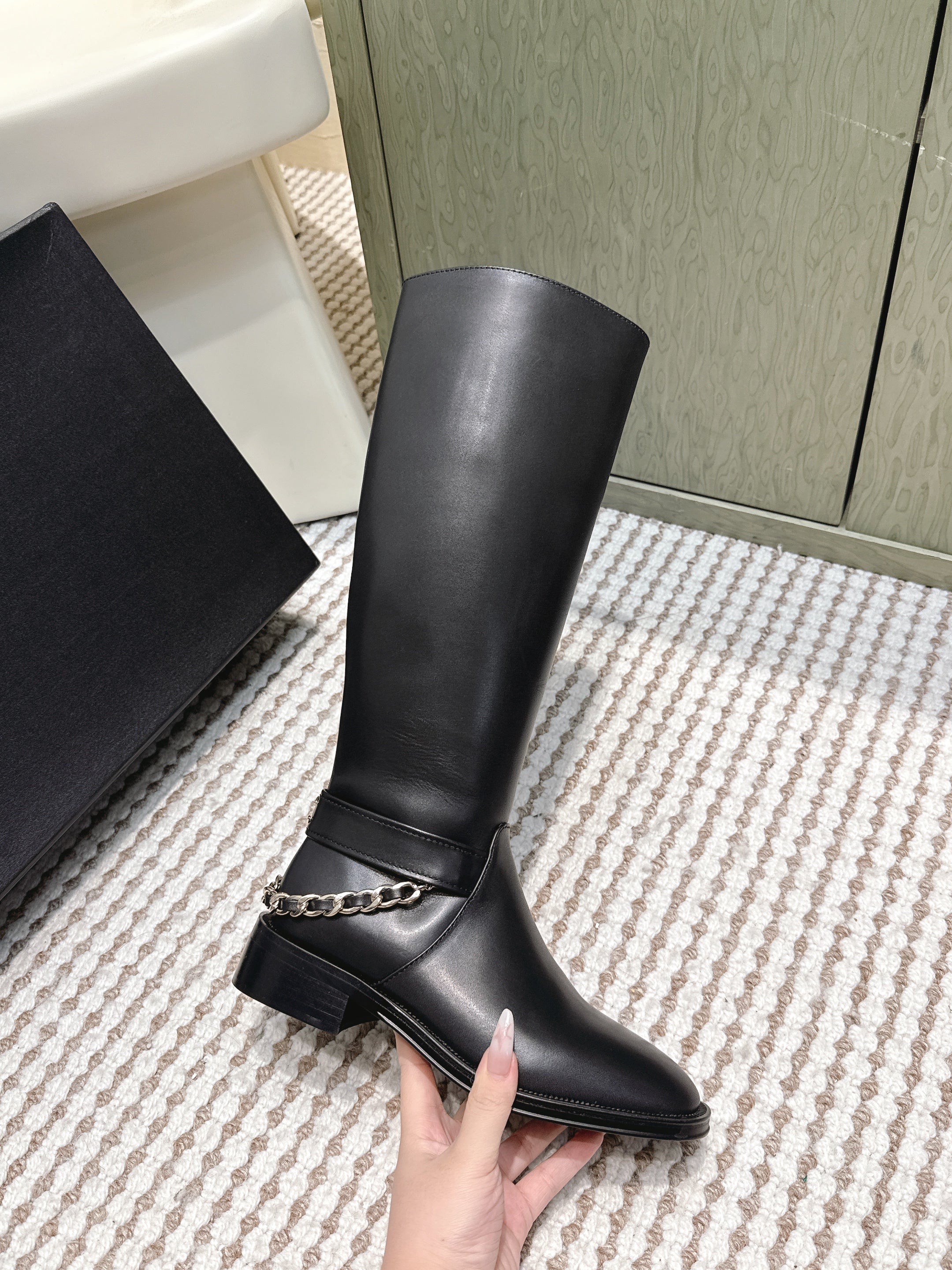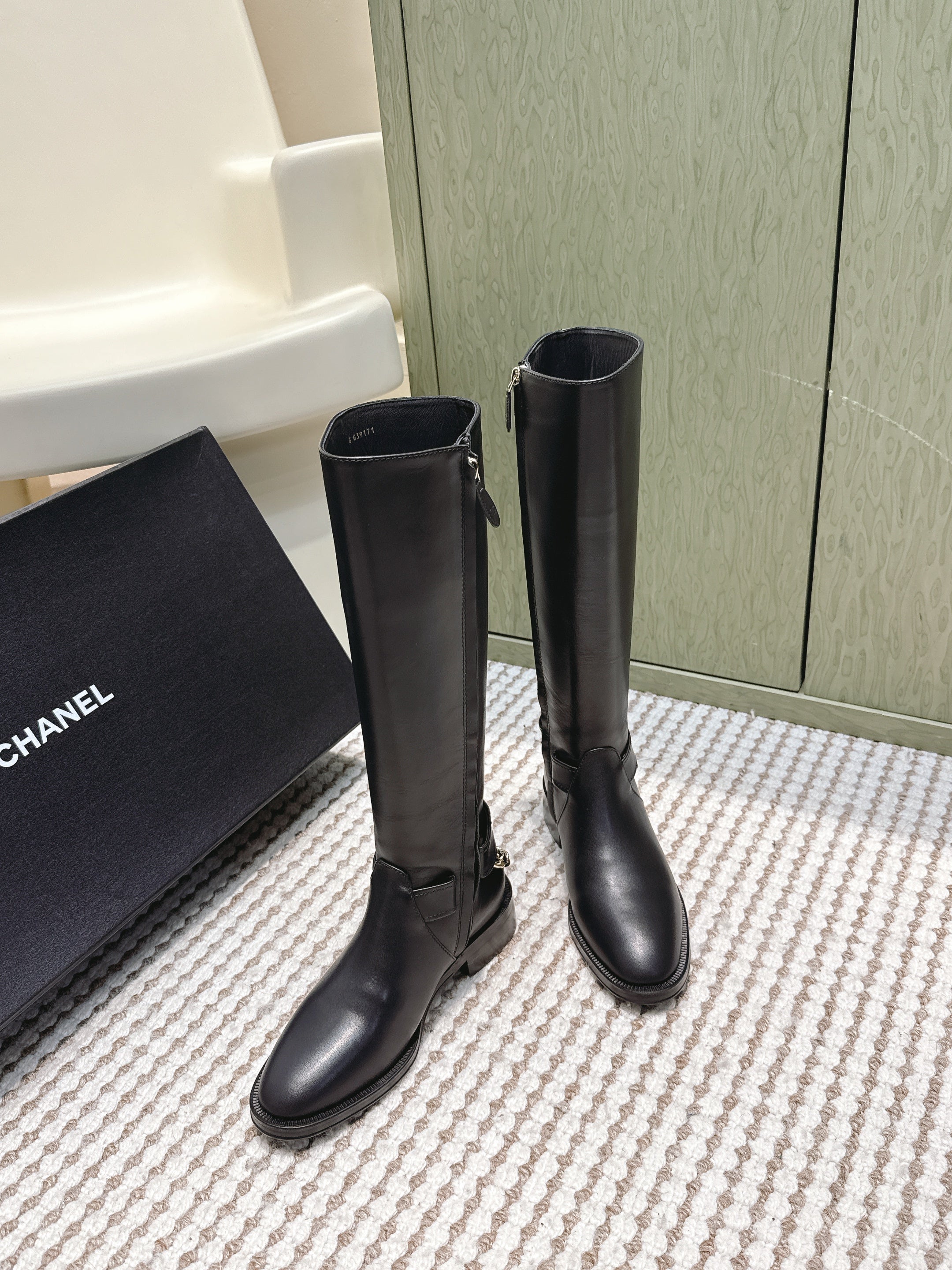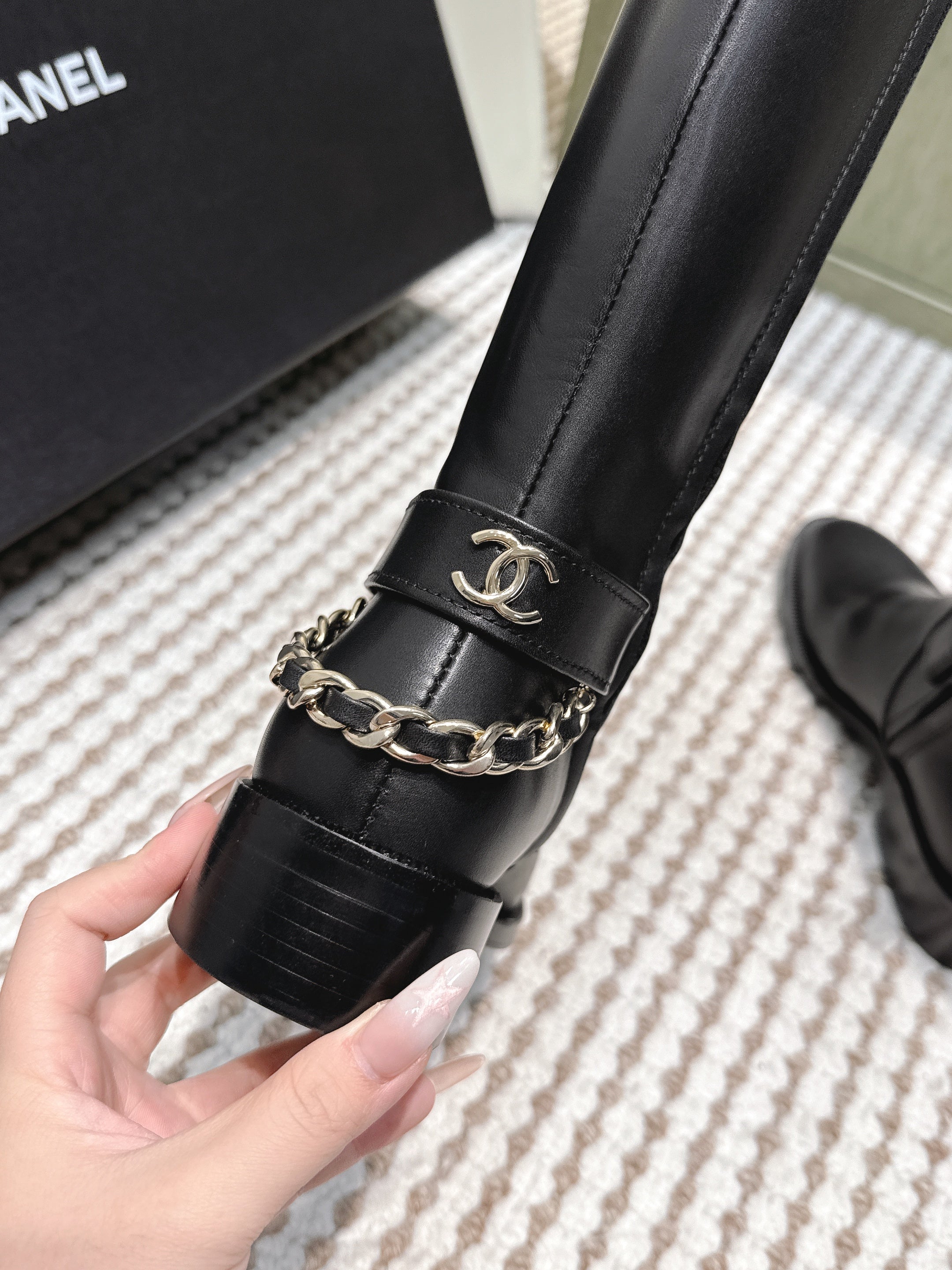 CHANEL 25S MID-CALF BOOTS IN BLACK CALFSKIN WITH ROUND TOE AND ZIPPER