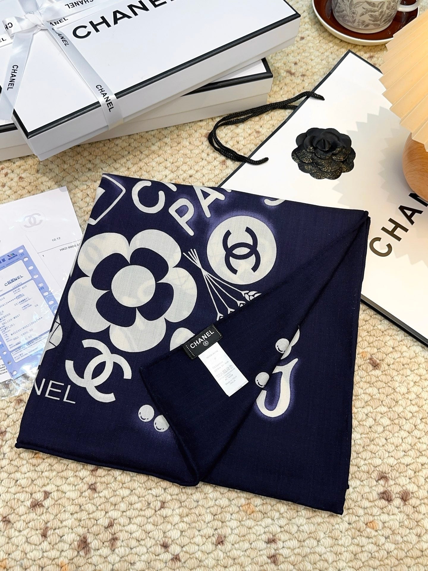 CHANEL 25S SCARF 140 IN SILK AND CASHMERE 881853