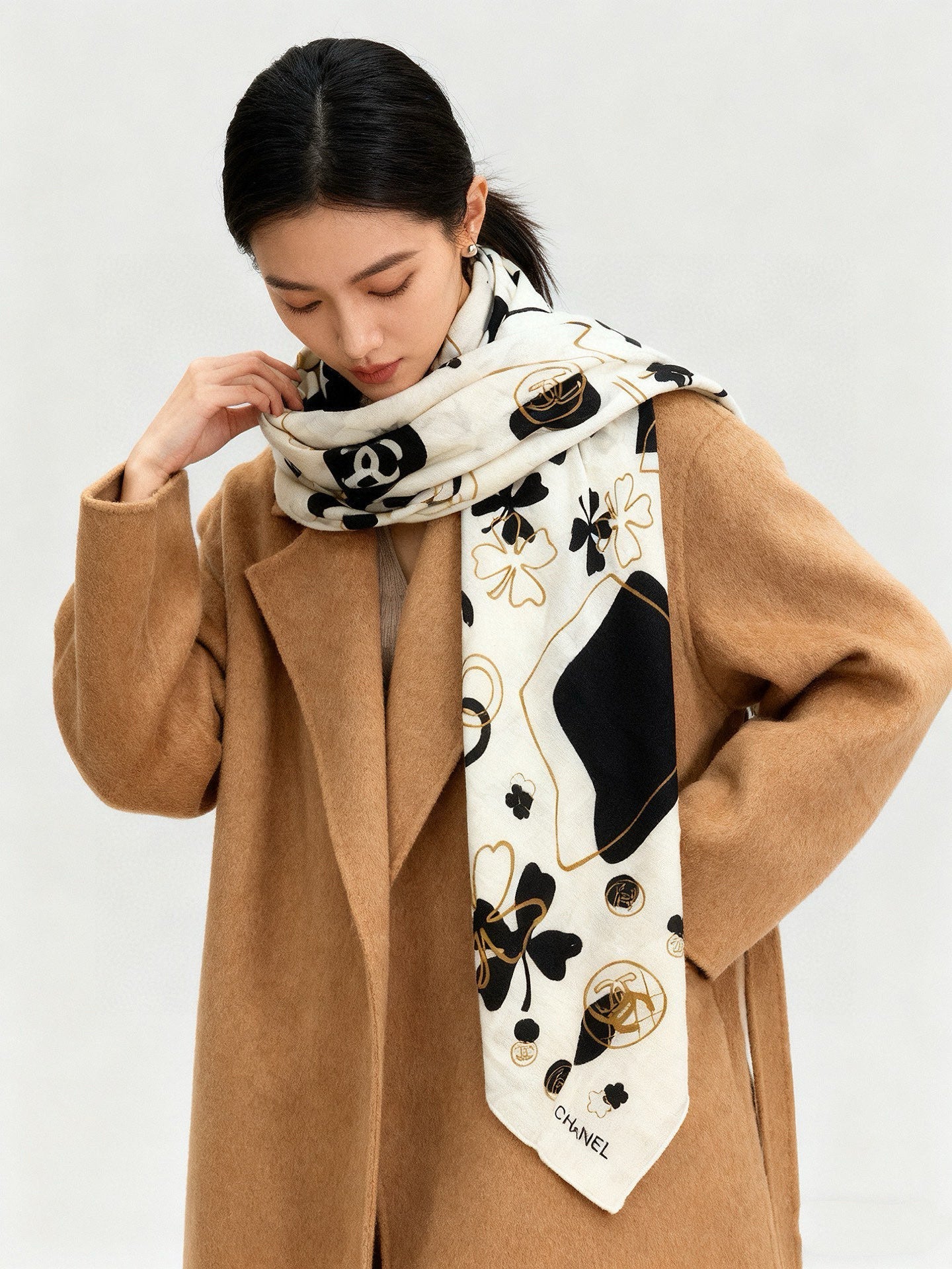 CHANEL 25S SCARF 140 IN SILK AND CASHMERE 932006