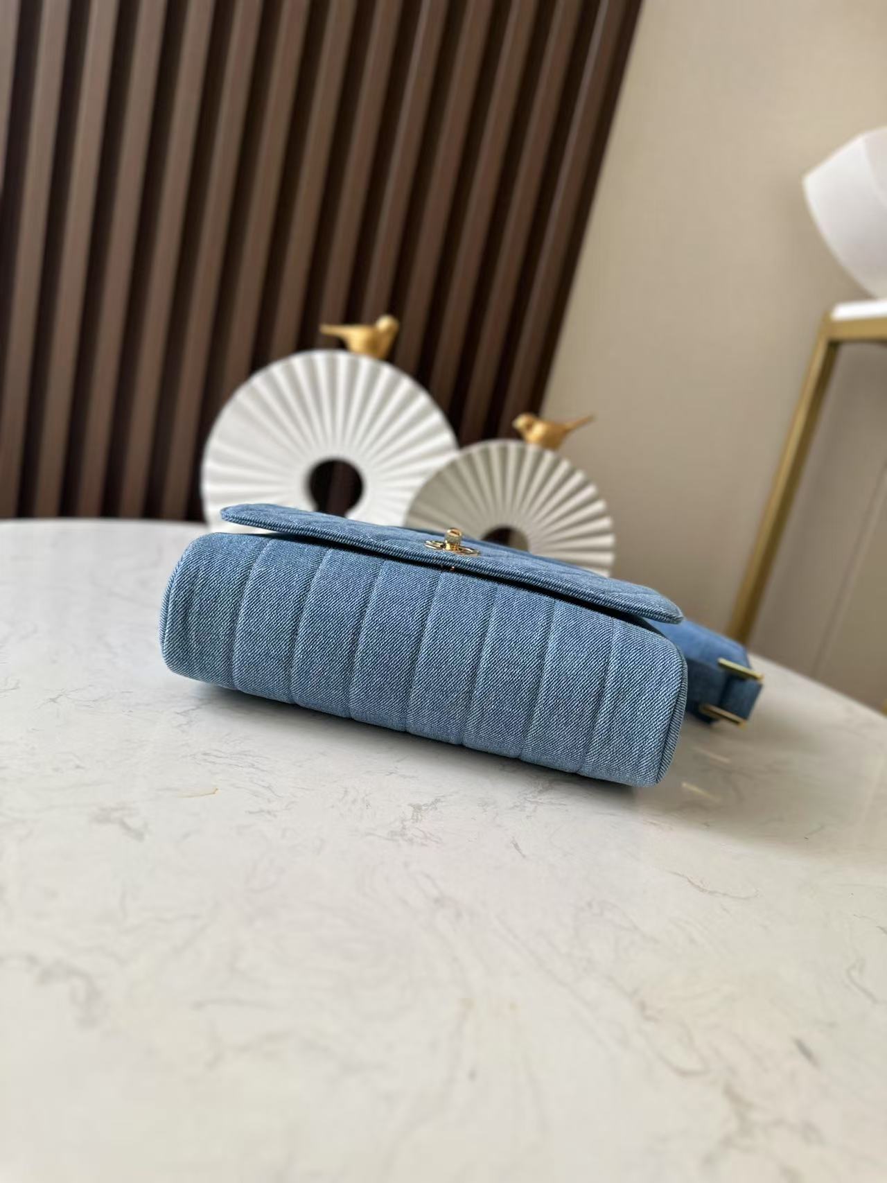 CHANEL 25S SHOULDER BAG 26 IN BLUE DENIM WITH GOLD HARDWARE