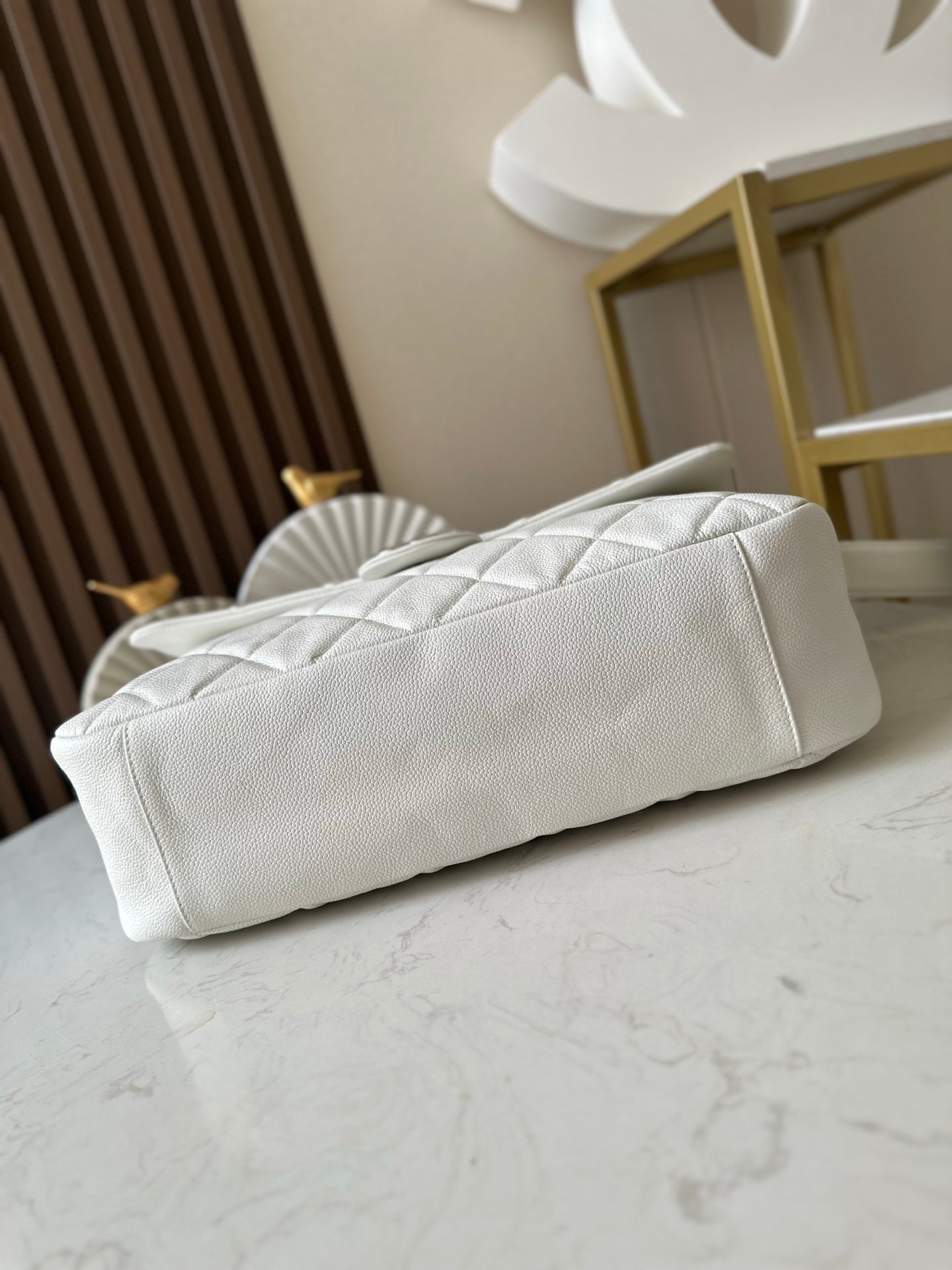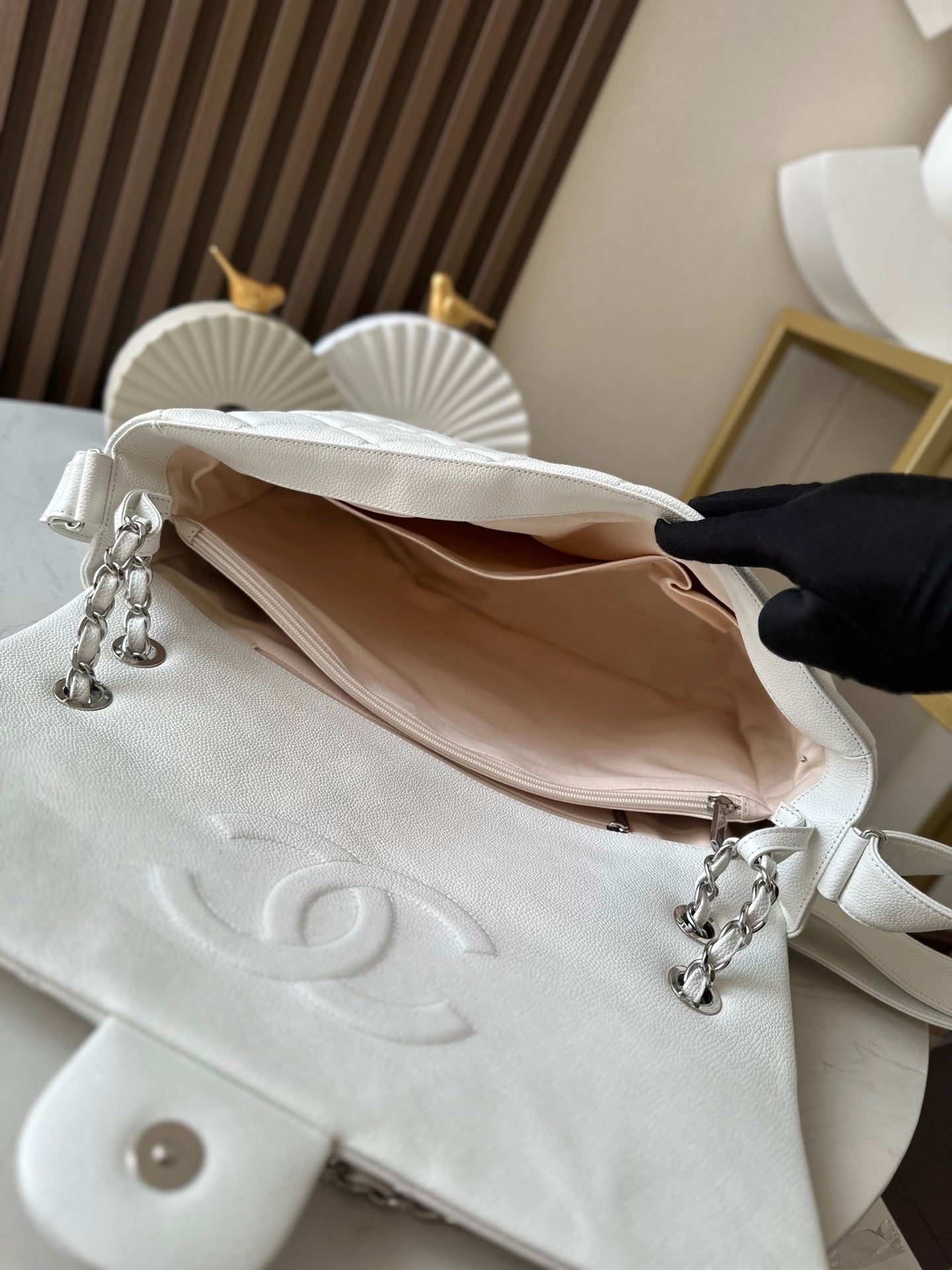 CHANEL 25S SHOULDER BAG 34 IN WHITE CAVIAR WITH SILVER HARDWARE