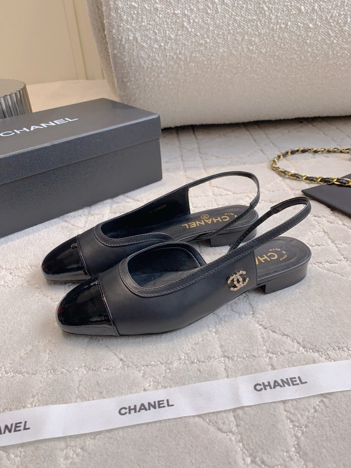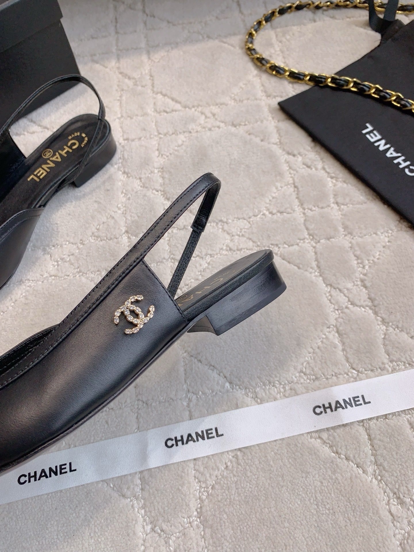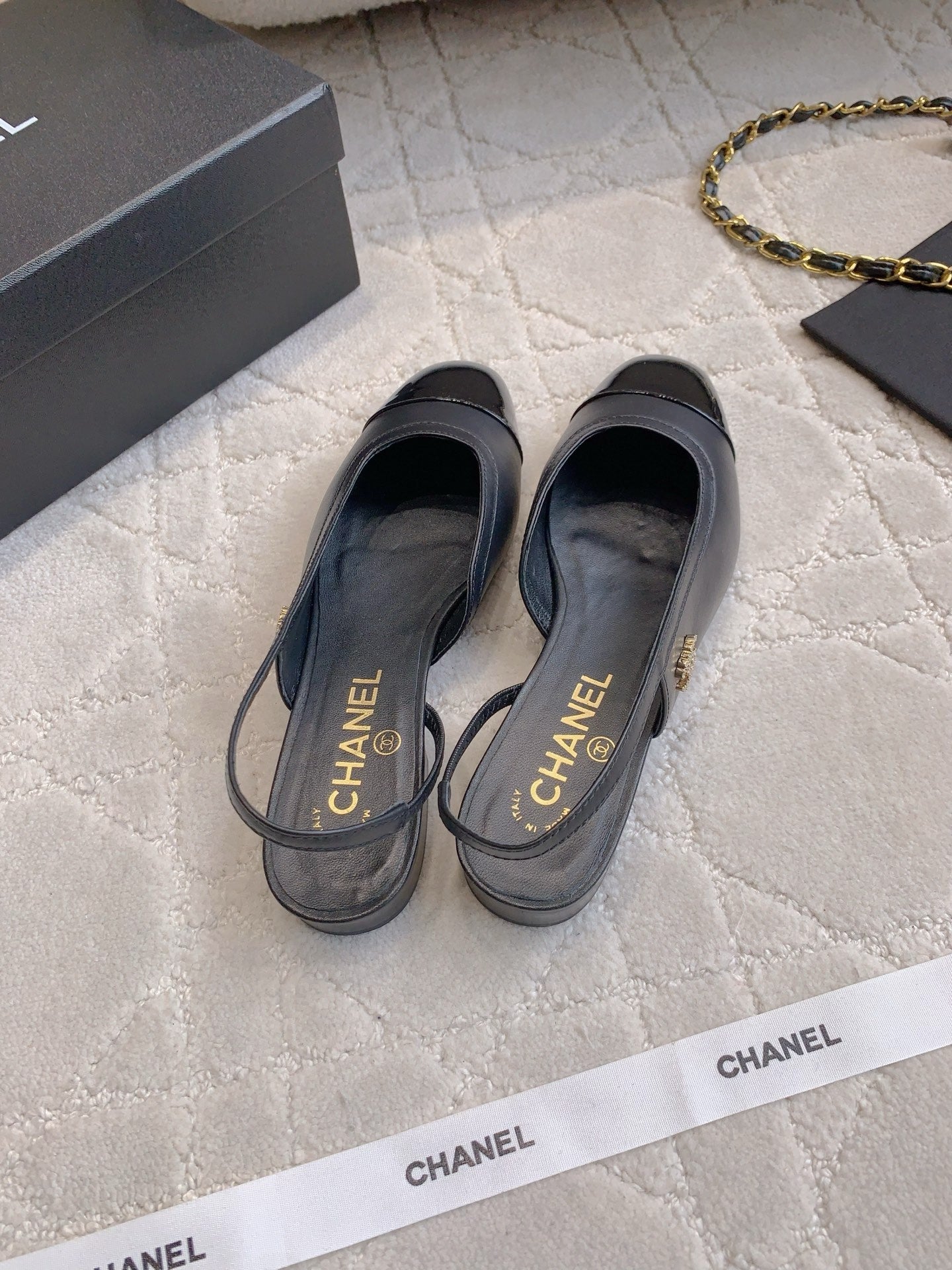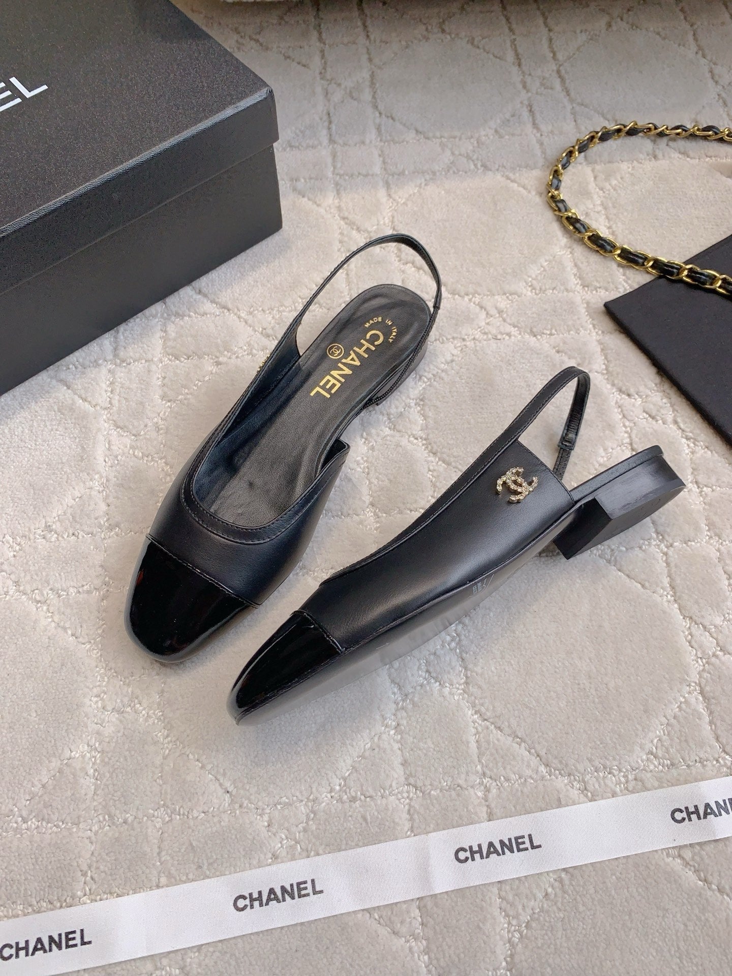 CHANEL 25S SLINGBACK IN BLACK FULL CALFSKIN GOLD HARDWARE