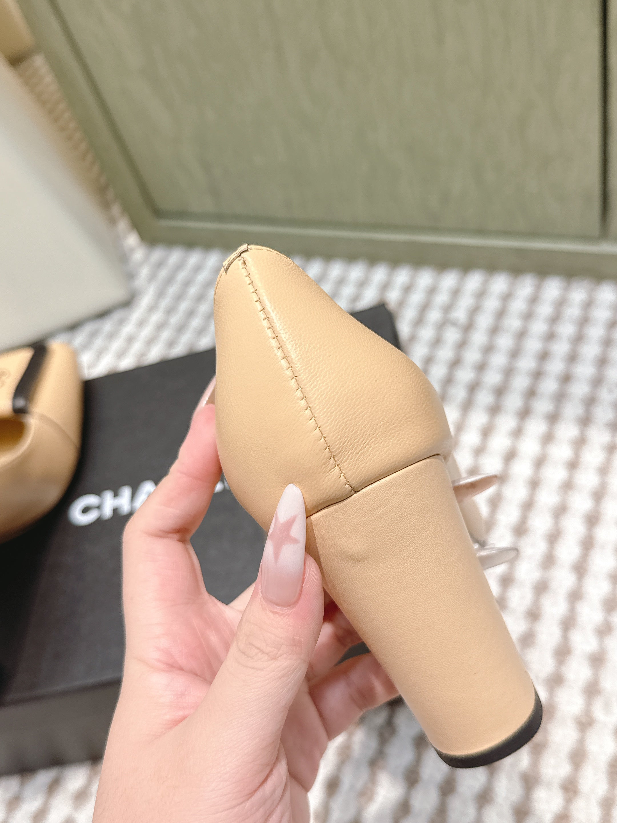 CHANEL 25S SLINGBACK SHOES 90MM IN BEIGE CALFSKIN SQUARE TOE GOLD HARDWARE