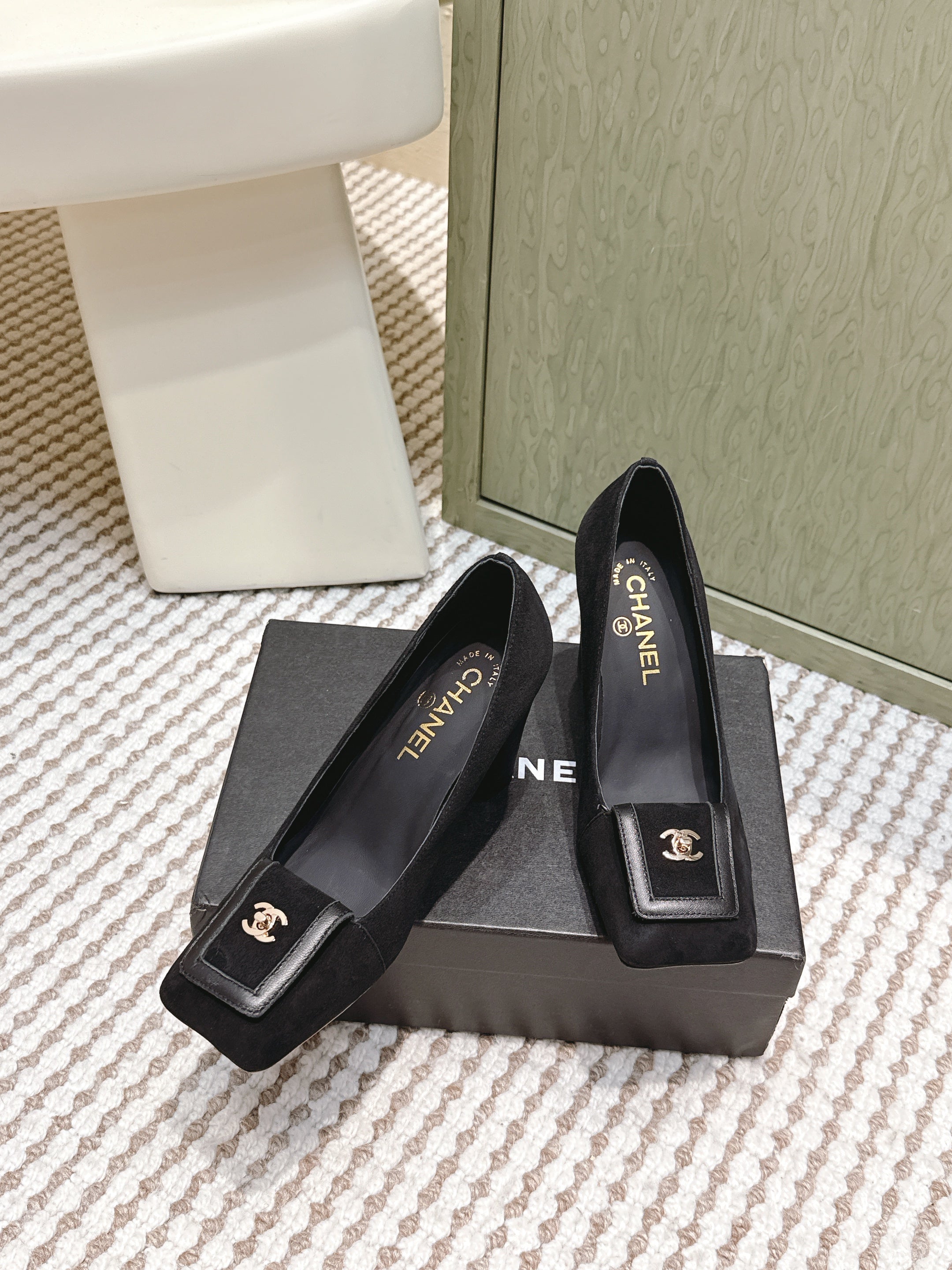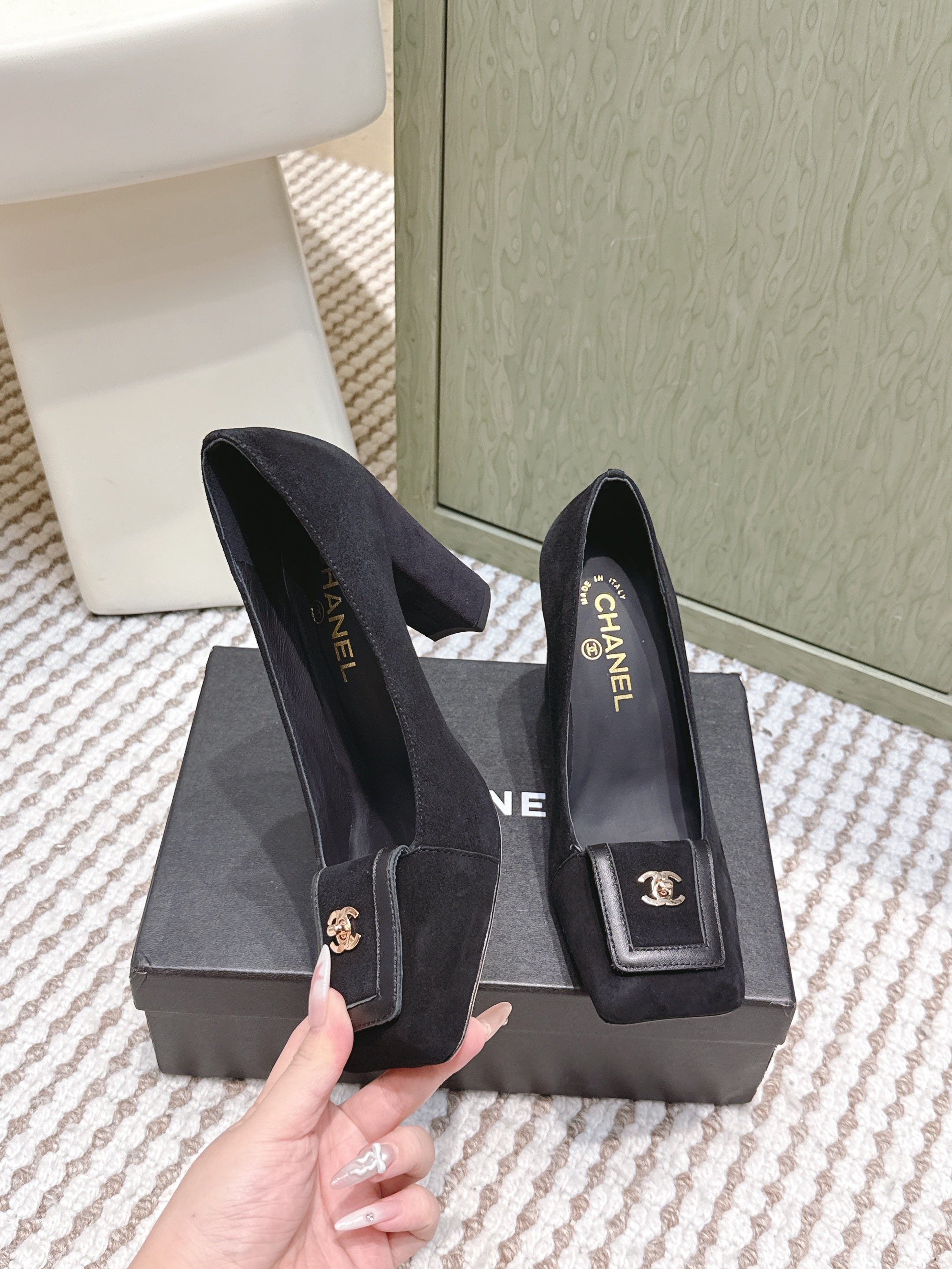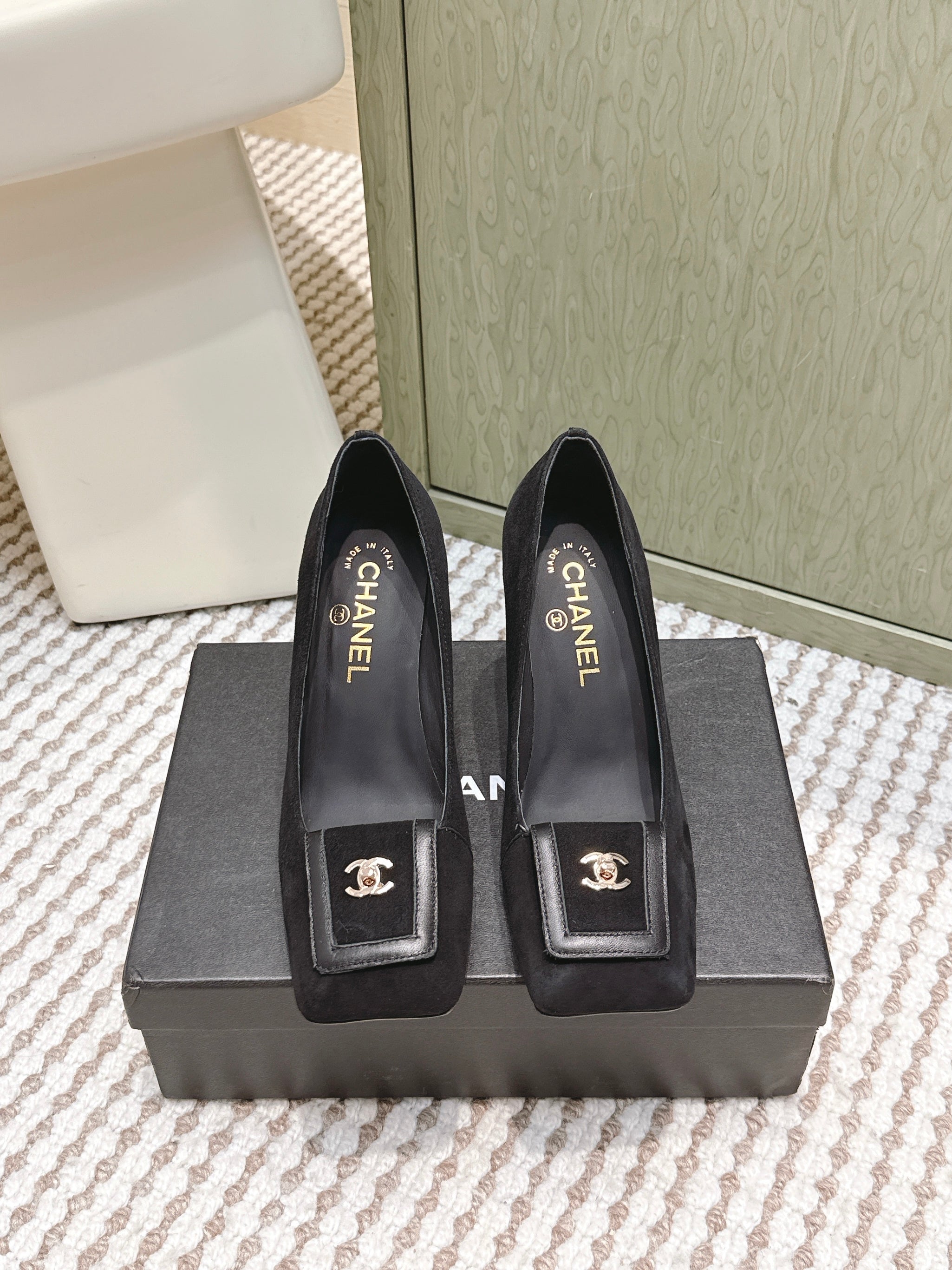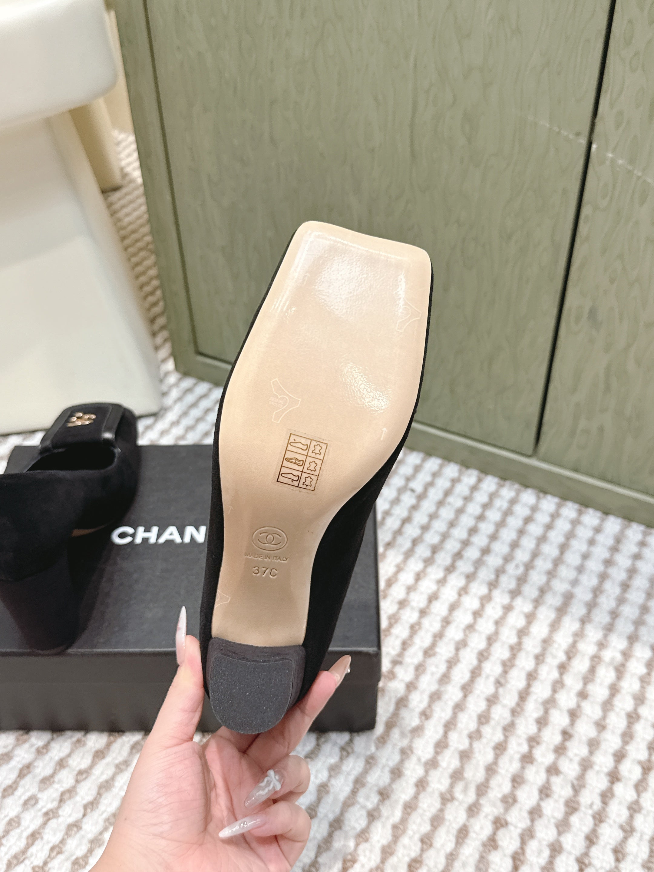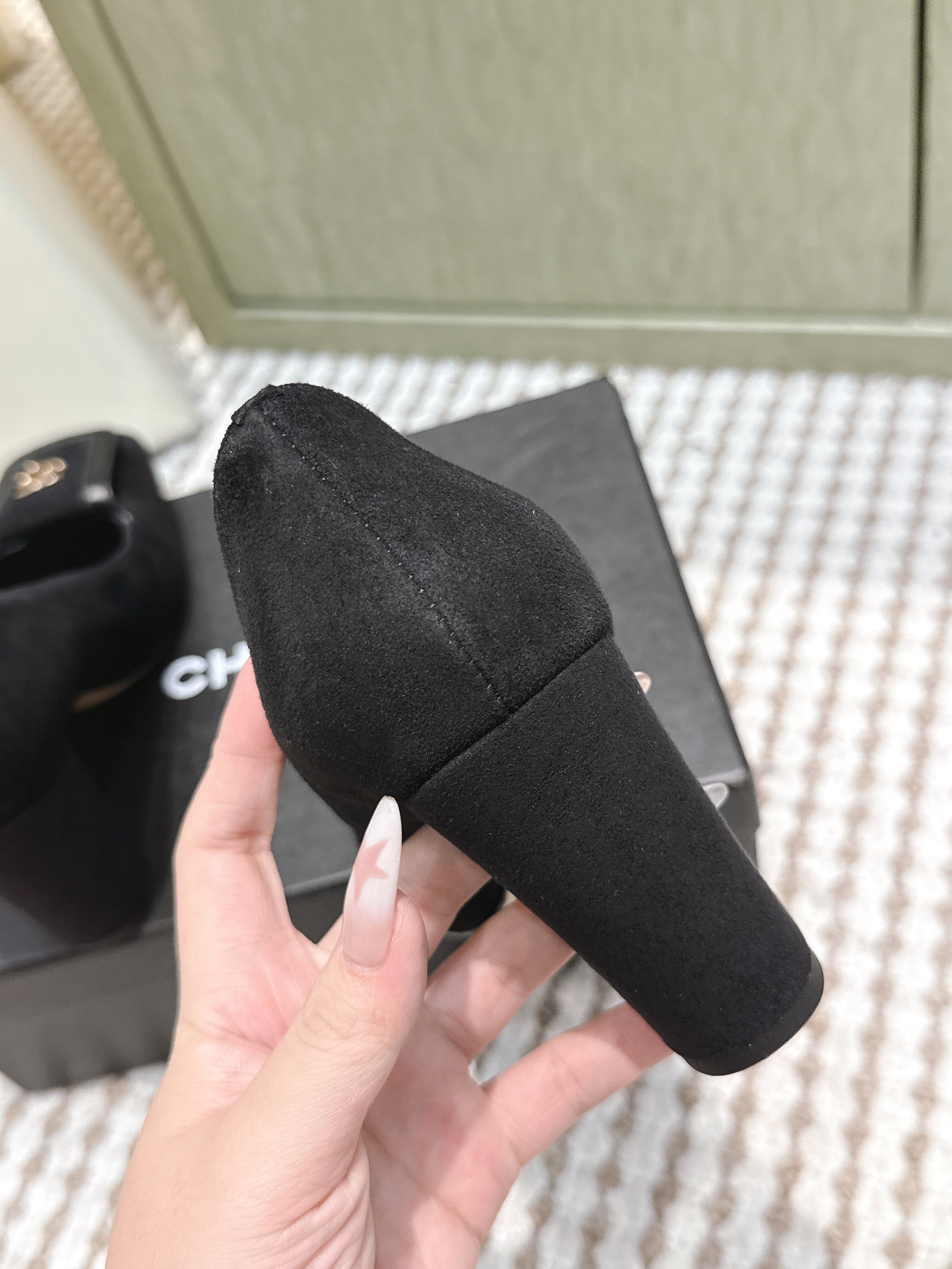 CHANEL 25S SLINGBACK SHOES 90MM IN BLACK SUEDE SQUARE TOE GOLD HARDWARE