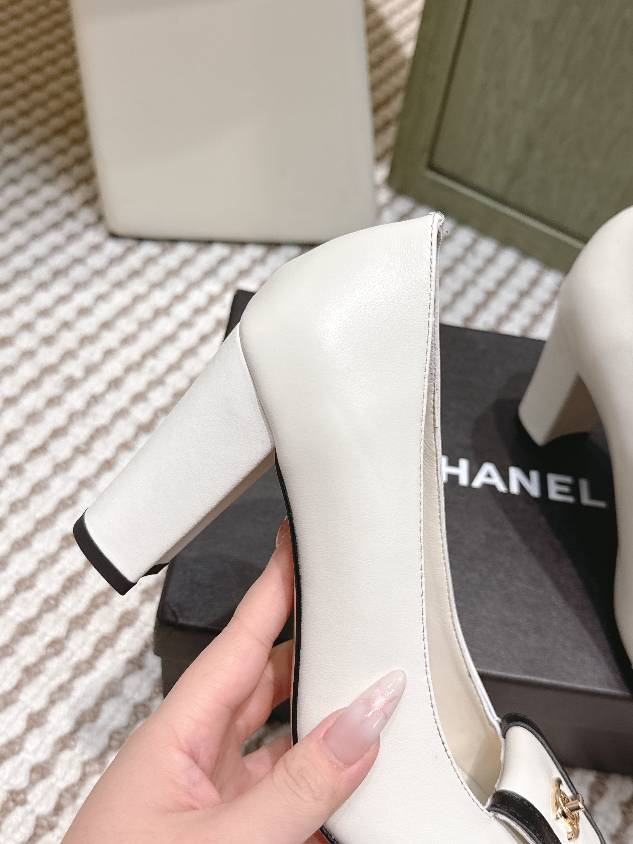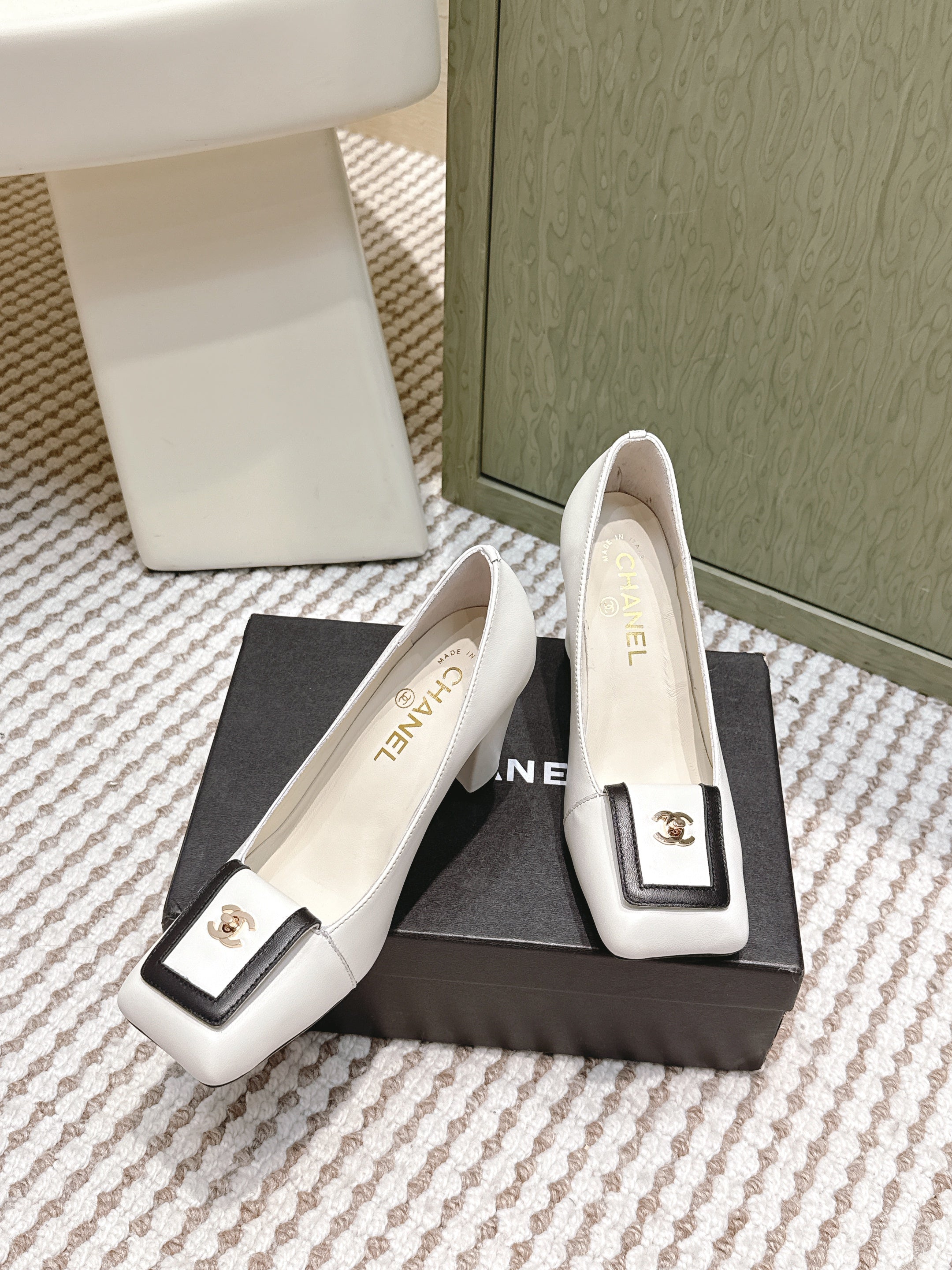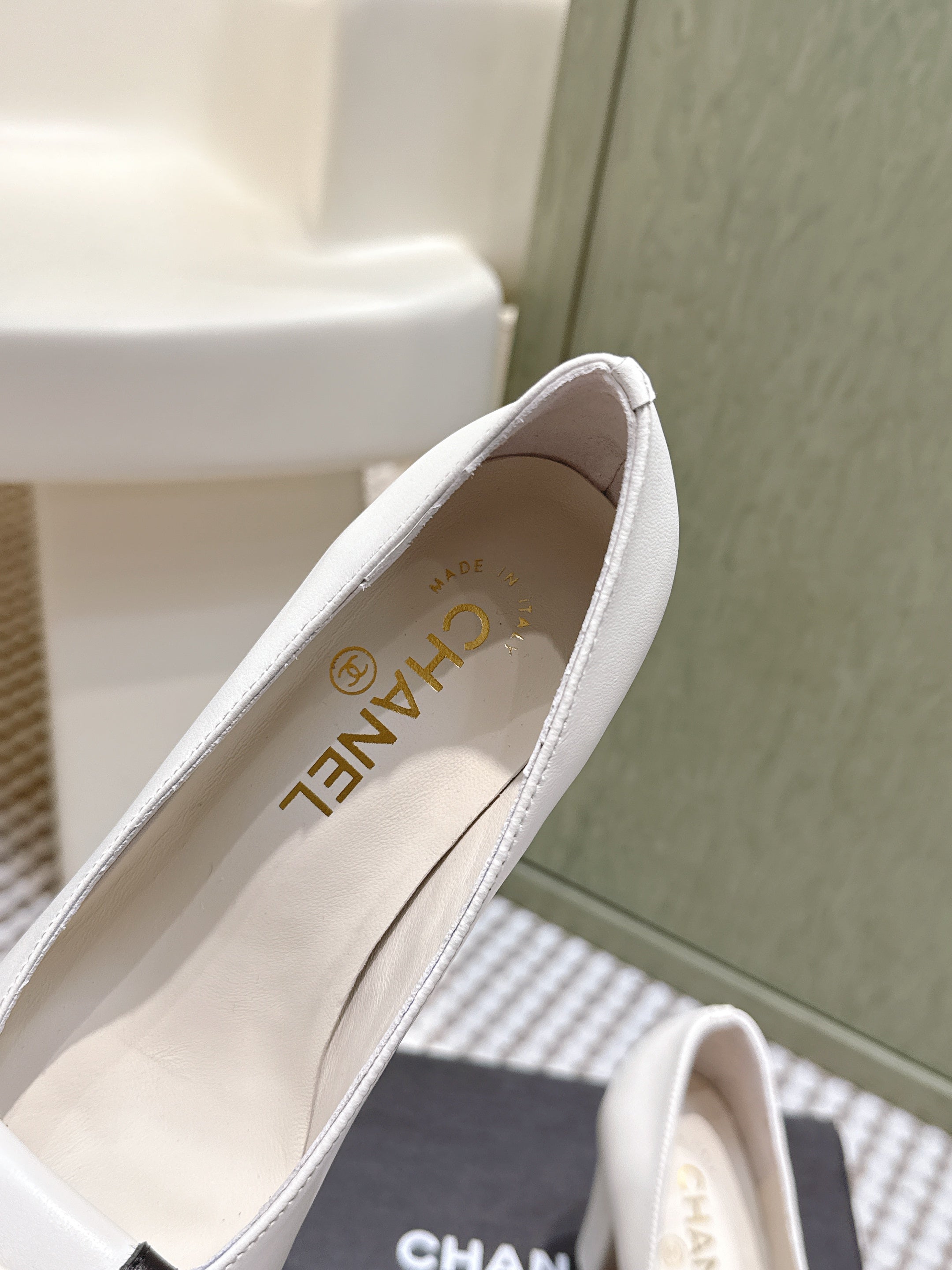CHANEL 25S SLINGBACK SHOES 90MM IN WHITE CALFSKIN SQUARE TOE GOLD HARDWARE